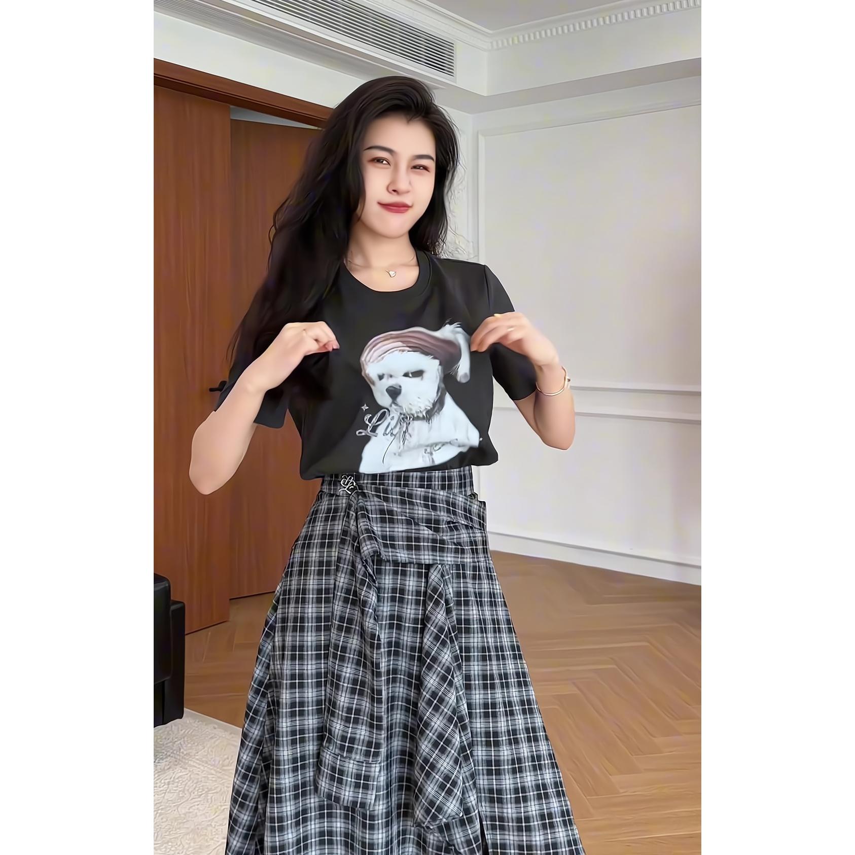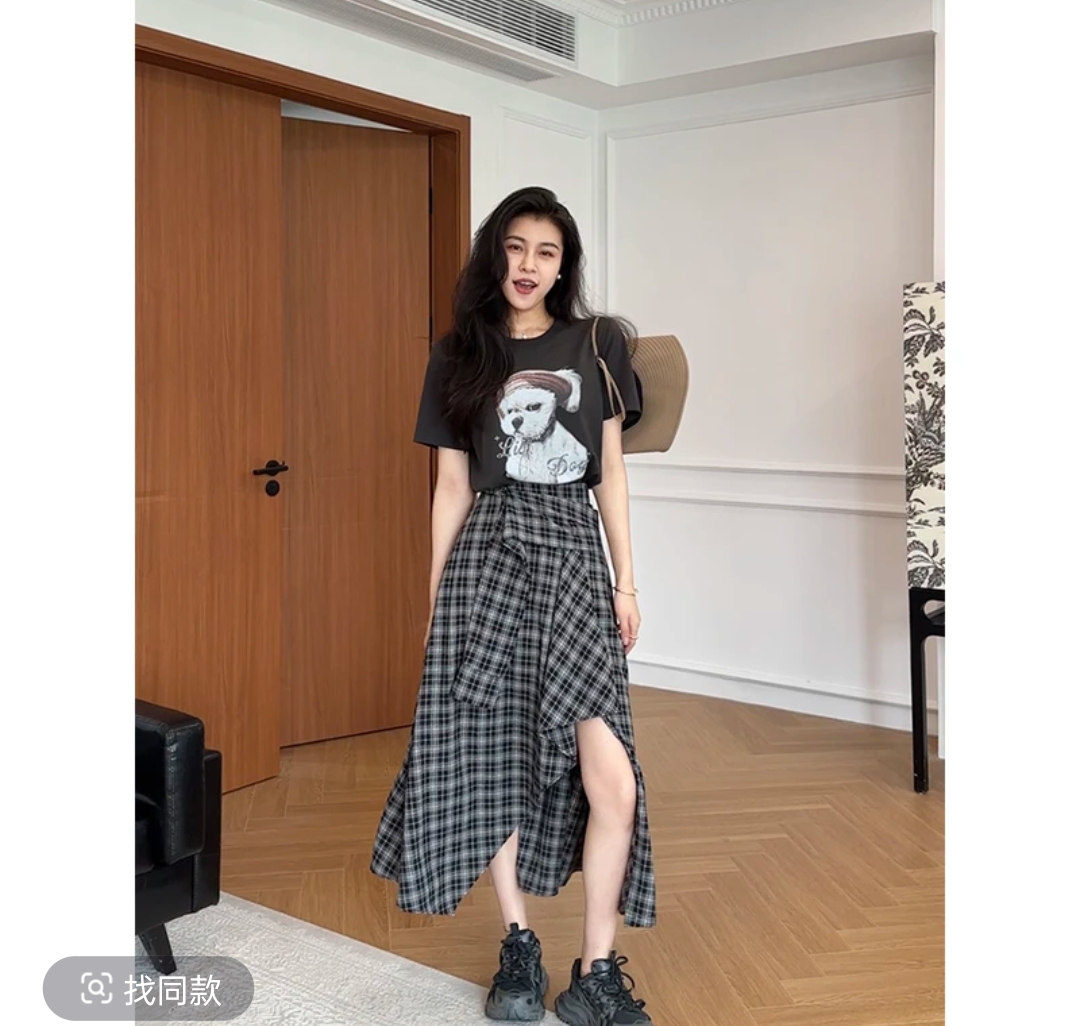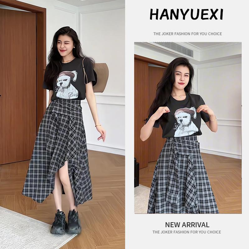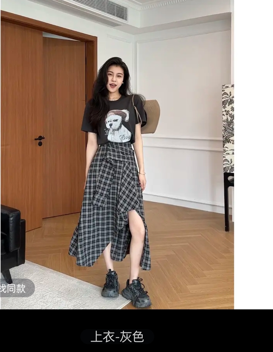 장 A 스타 와일드 세트 아메리칸 높음 거리 워싱 반팔 t+ 불규칙 체크무늬 반 스커트
