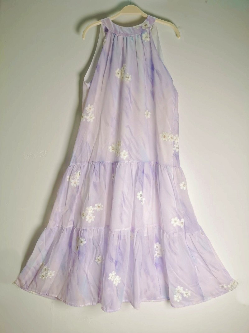 박하 드레스 부드러운 자수 홀치기 염색 프린트 행침 목 미니 스커트 슈퍼 요정 휴가 사진 찍기