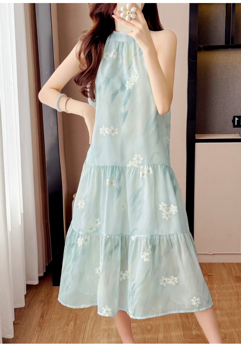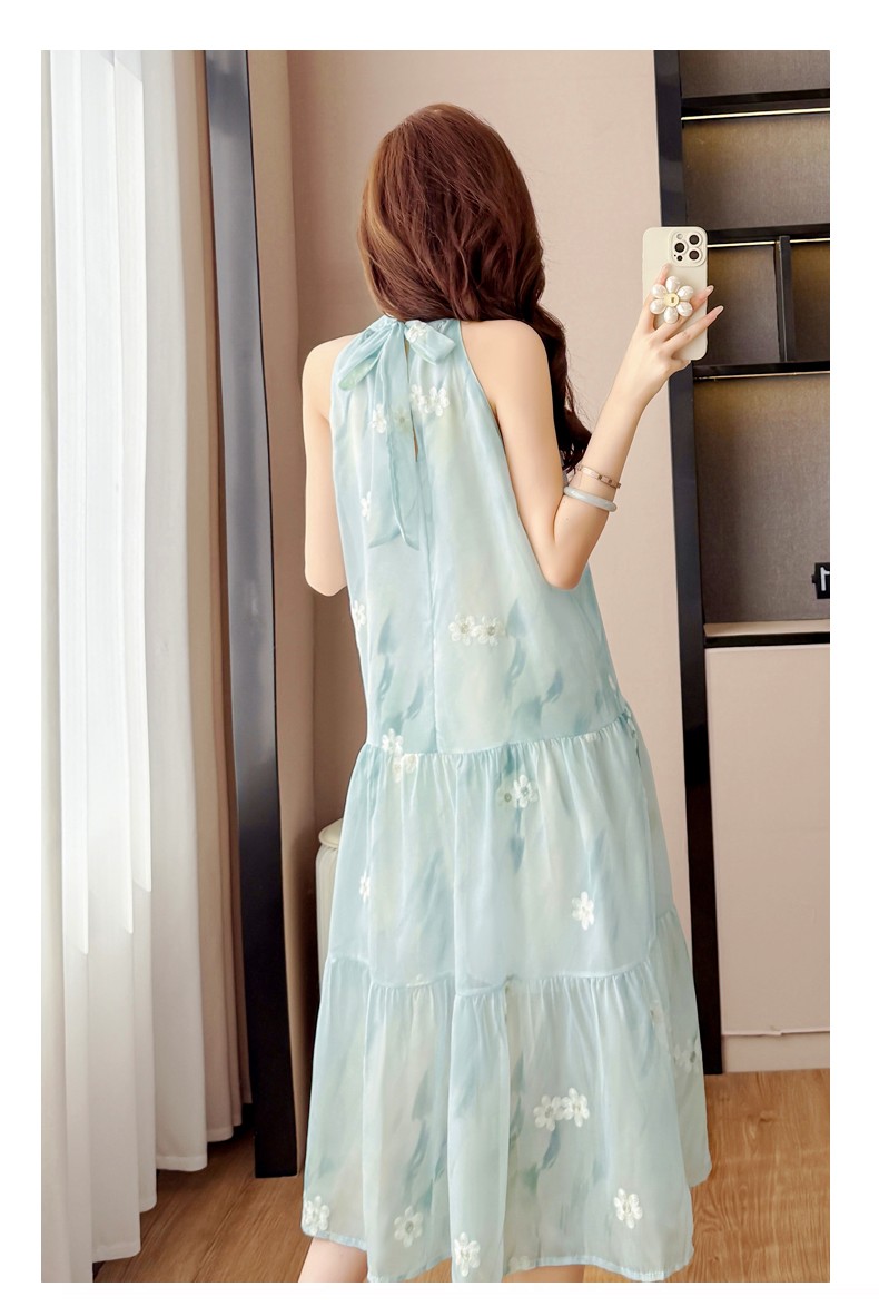 프랑스식 아름다운 고유 한 민소매 행침 목 여성 드레스 여름 아름다운 휴가 바람이 아닙니다. 규칙 길다 치마