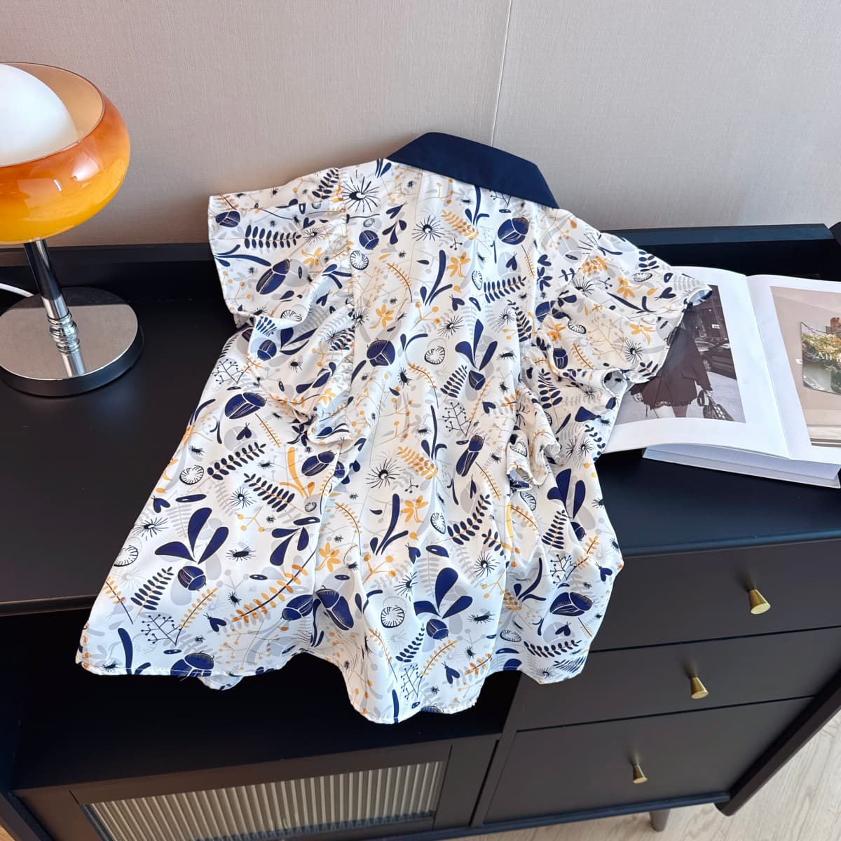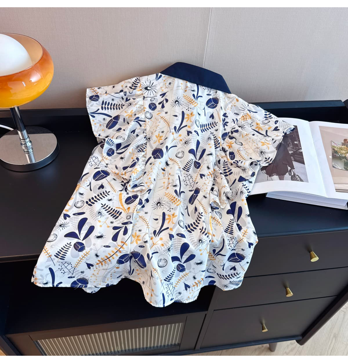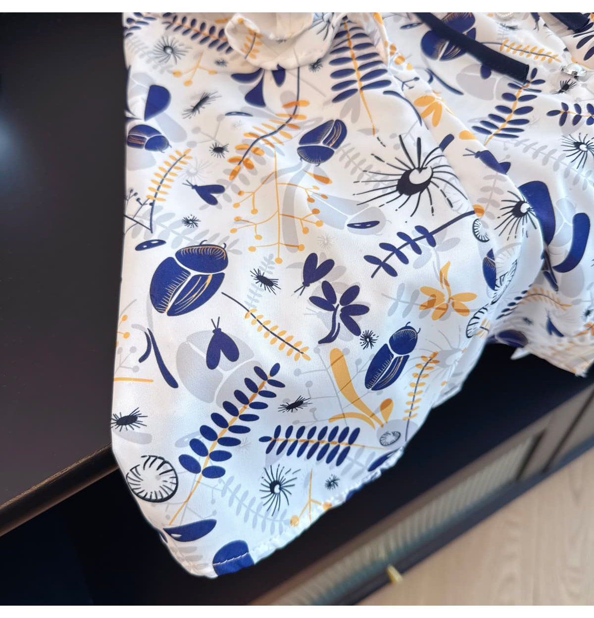 실사 슬림해 보이는 반팔 프린트 셔츠 품질 패션 Feifei 소매 쉬폰 블라우스 나비 넥타이 셔츠