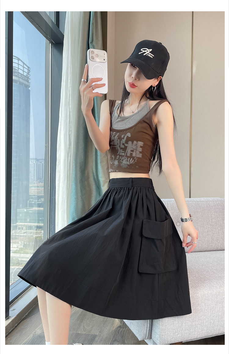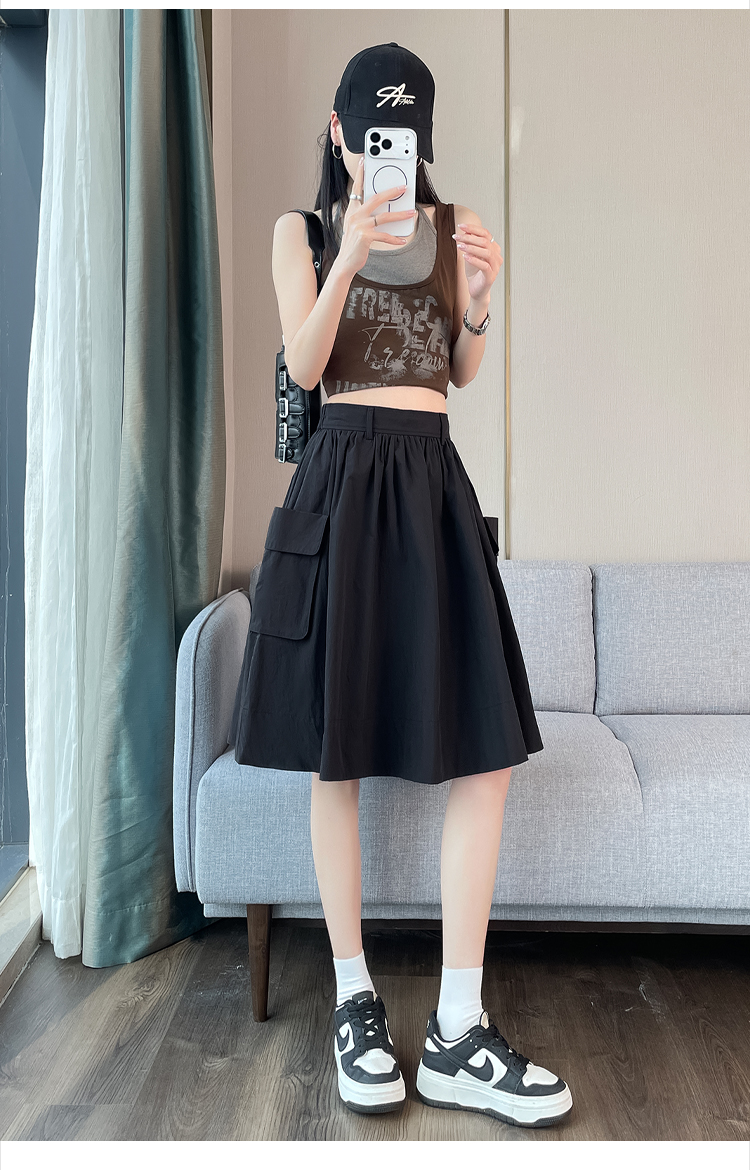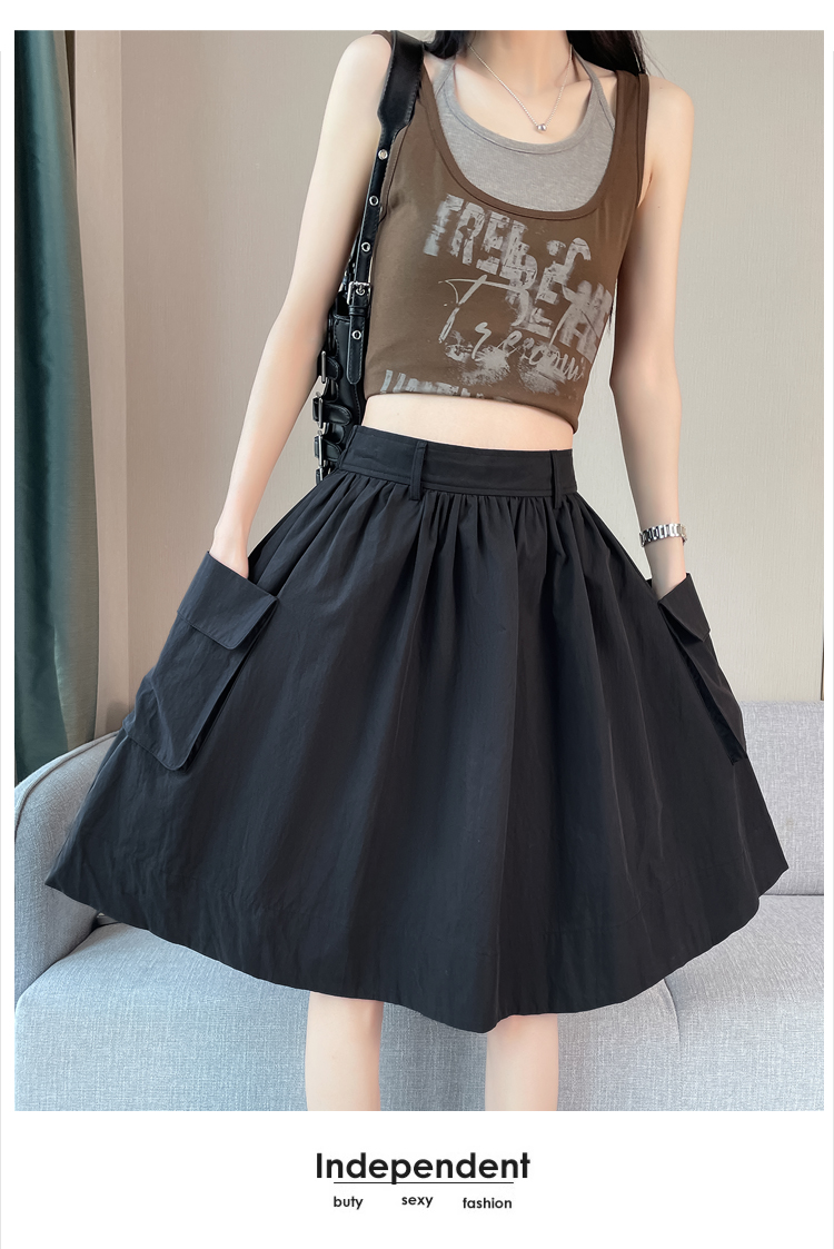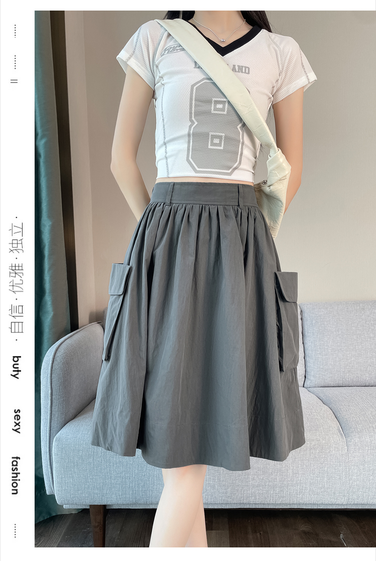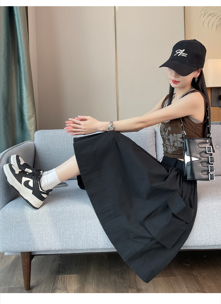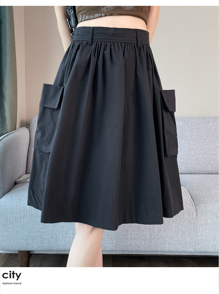 실제 촬영 정가 높은 허리 슬림 플리츠 정장 롱 스커트 와일드 빅 스윙 스커트 하프 바디 A 라인 치마
