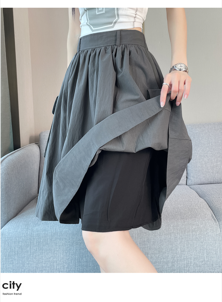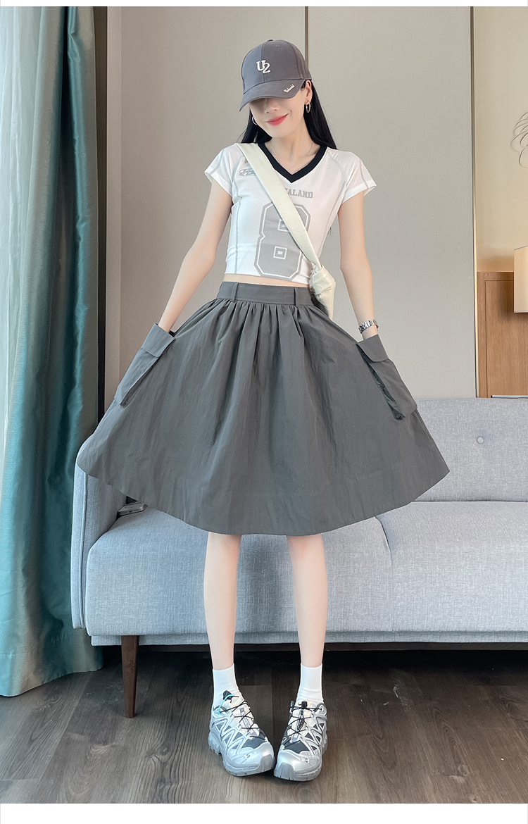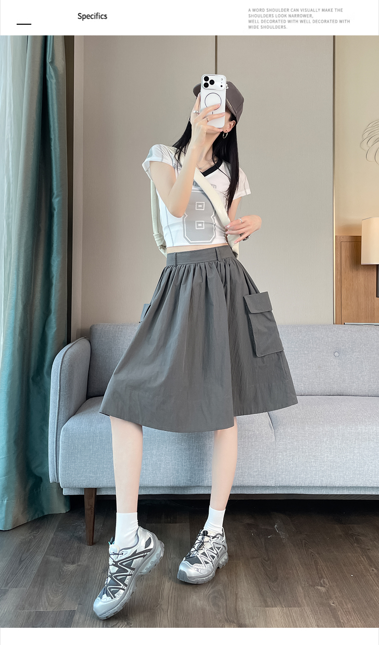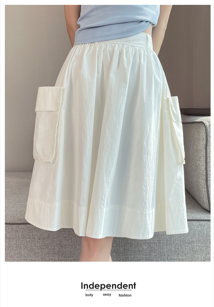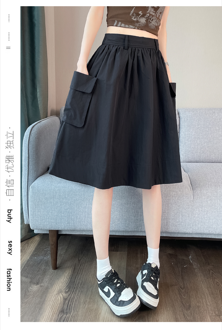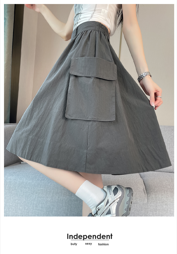 실제 촬영 정가 높은 허리 슬림 플리츠 정장 롱 스커트 와일드 빅 스윙 스커트 하프 바디 A 라인 치마