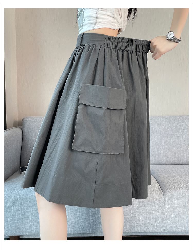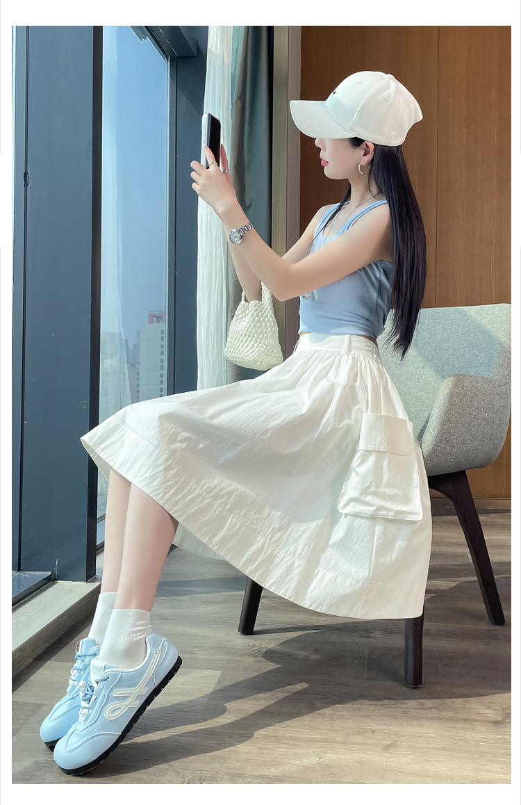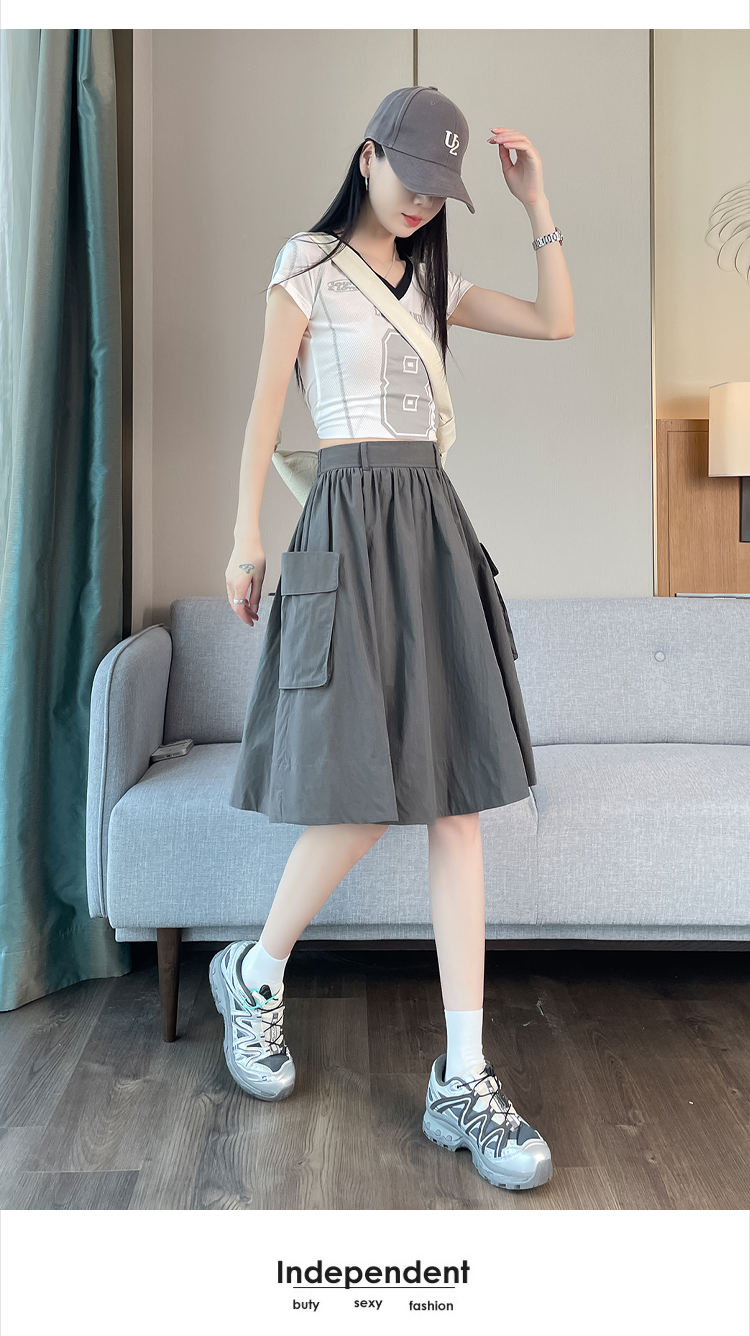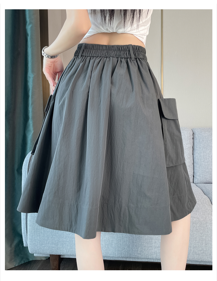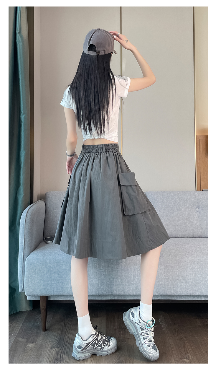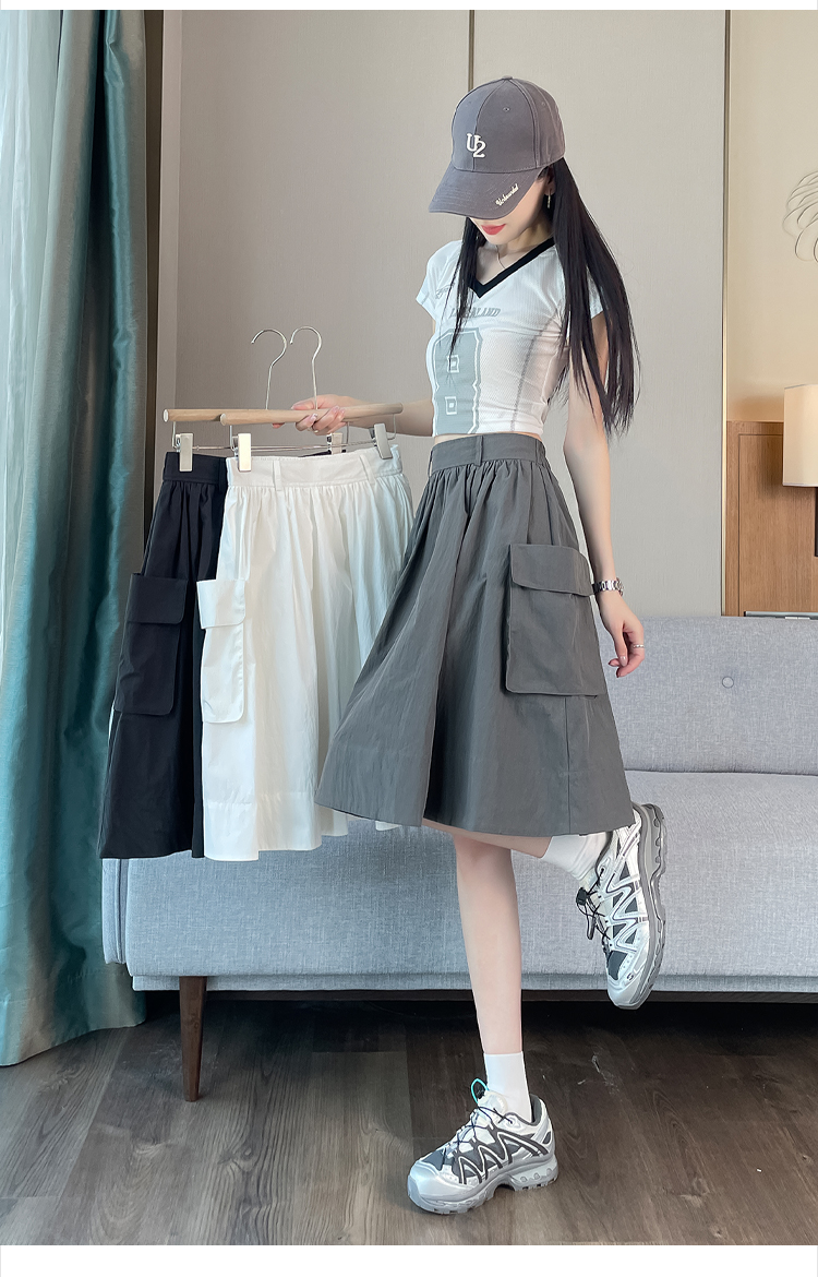 실제 촬영 정가 높은 허리 슬림 플리츠 정장 롱 스커트 와일드 빅 스윙 스커트 하프 바디 A 라인 치마