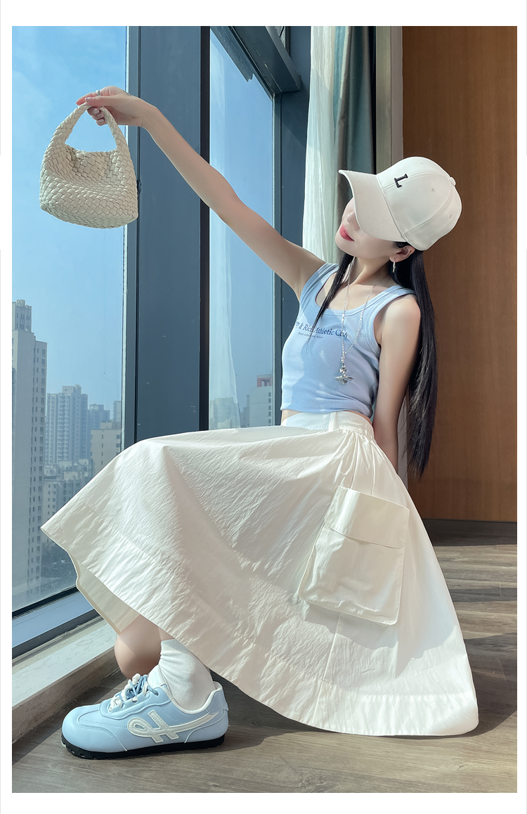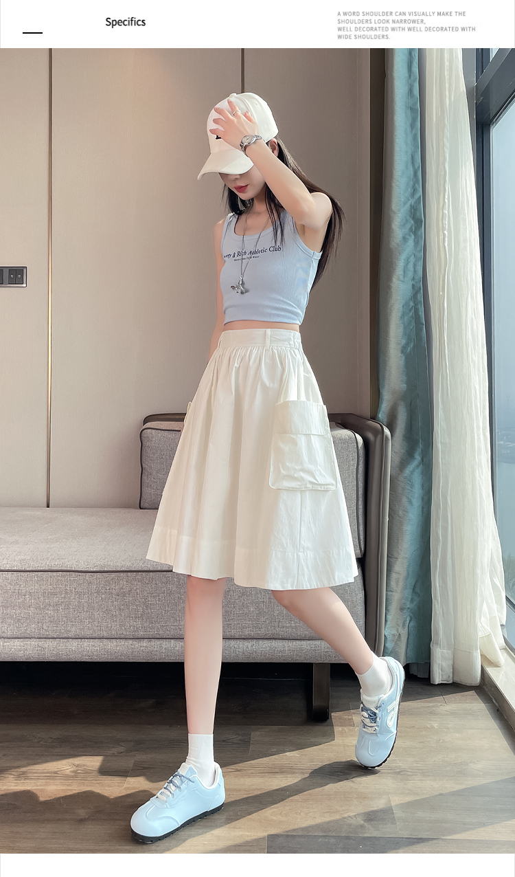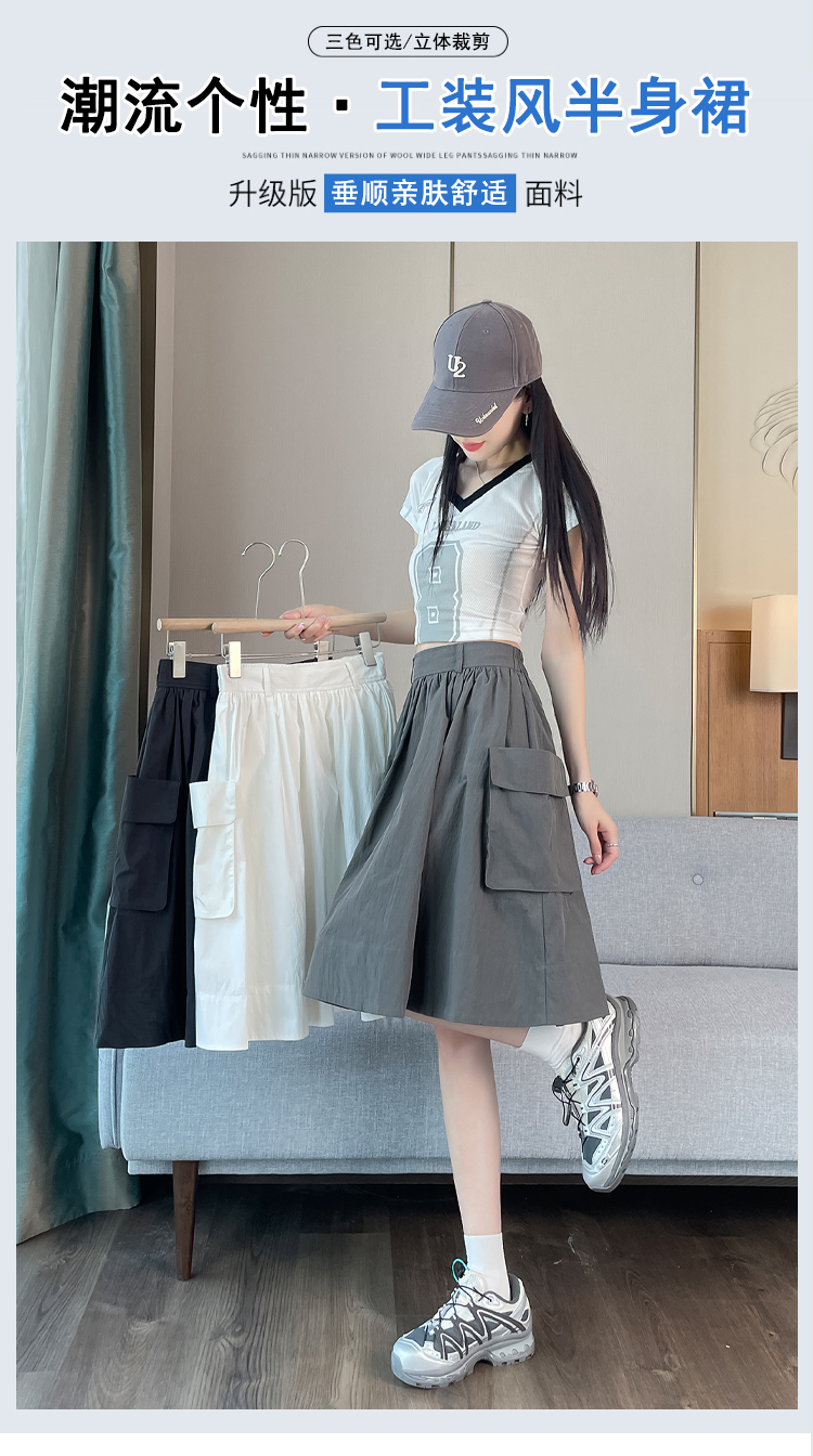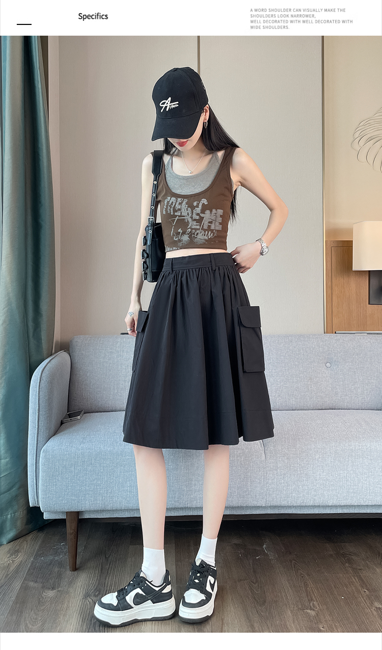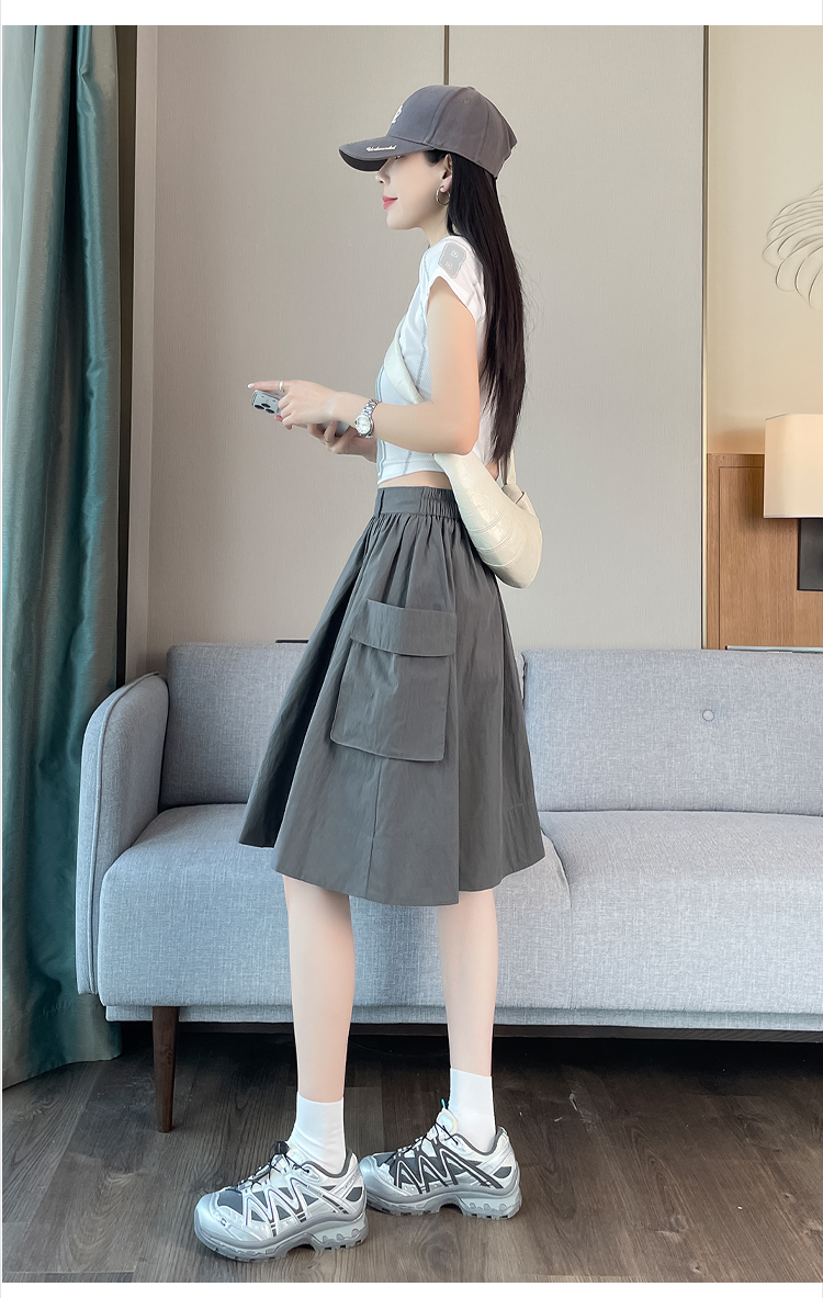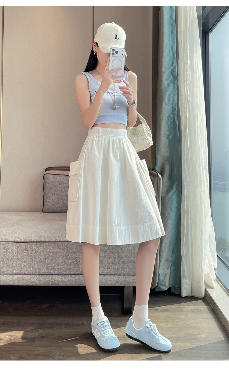 실제 촬영 정가 높은 허리 슬림 플리츠 정장 롱 스커트 와일드 빅 스윙 스커트 하프 바디 A 라인 치마
