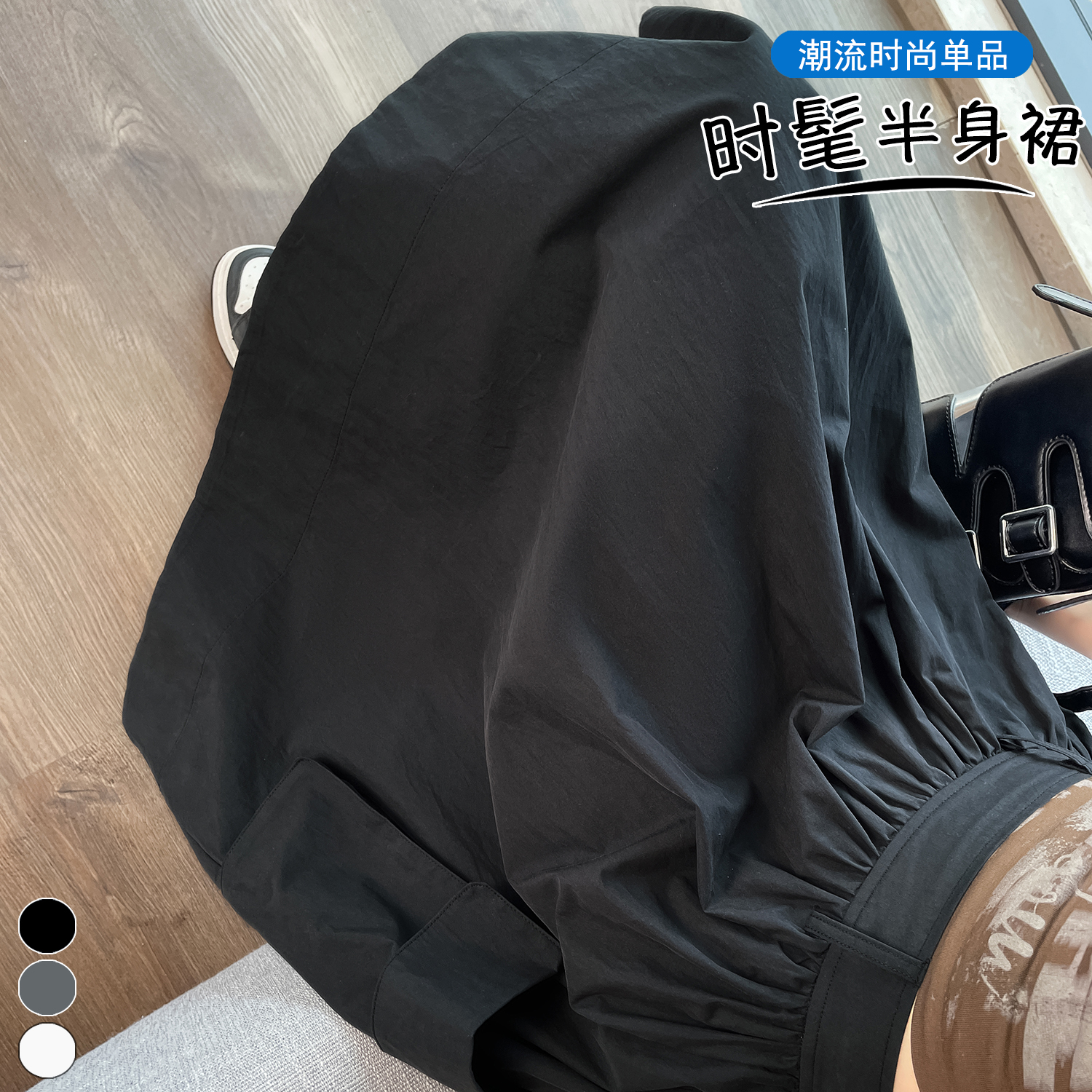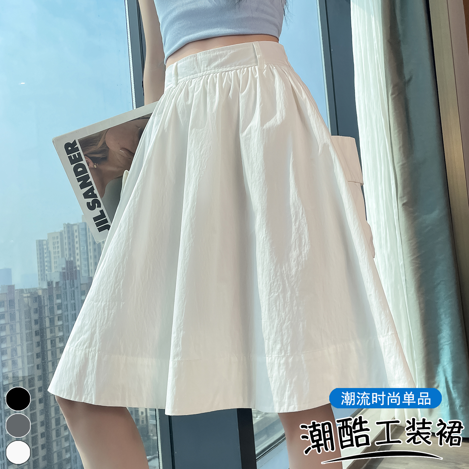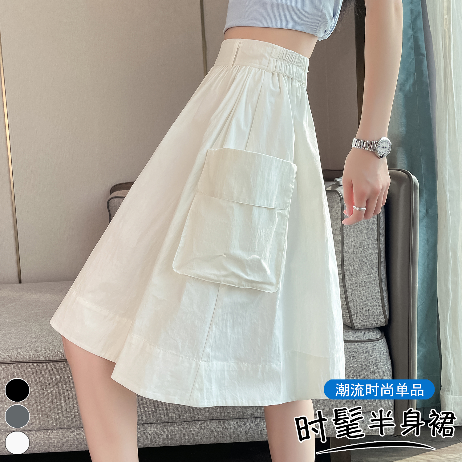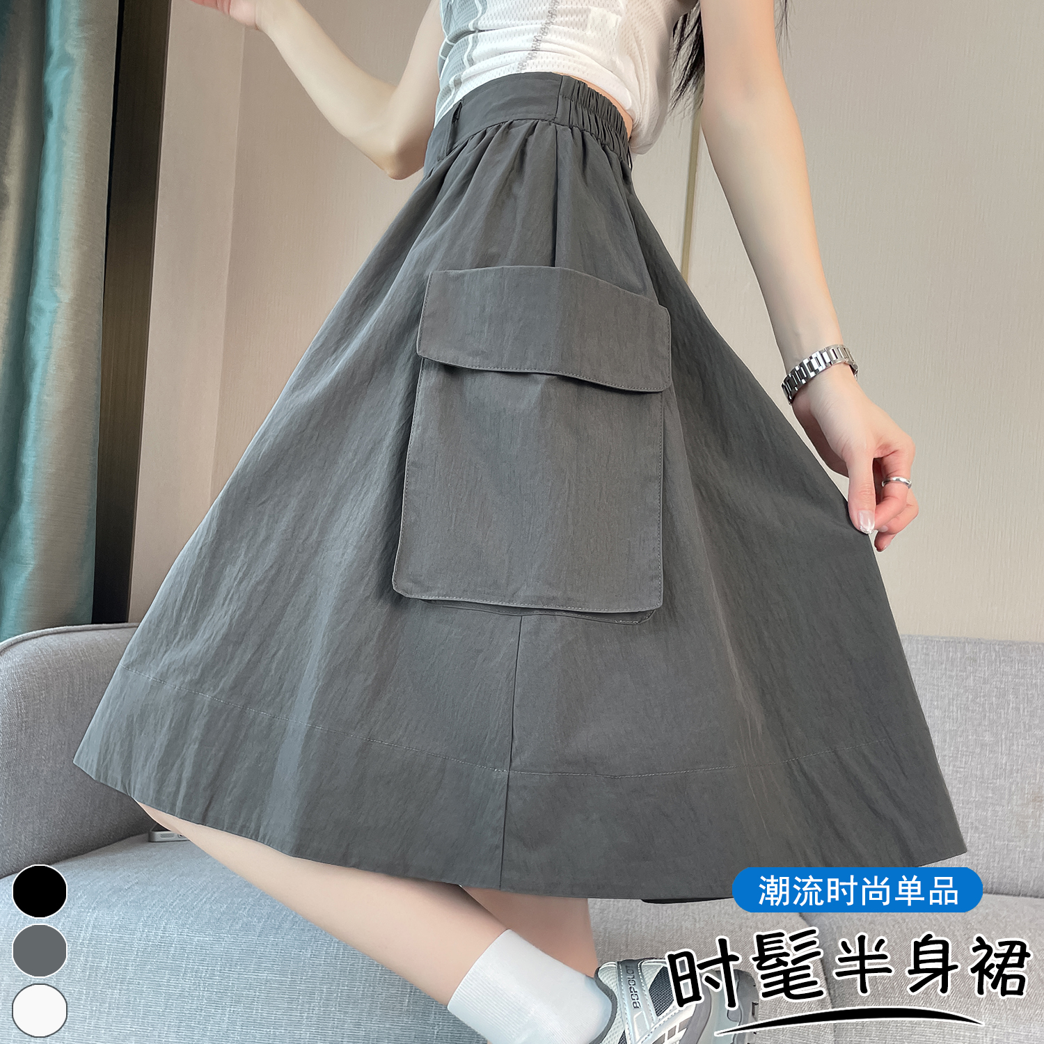 실제 촬영 정가 높은 허리 슬림 플리츠 정장 롱 스커트 와일드 빅 스윙 스커트 하프 바디 A 라인 치마