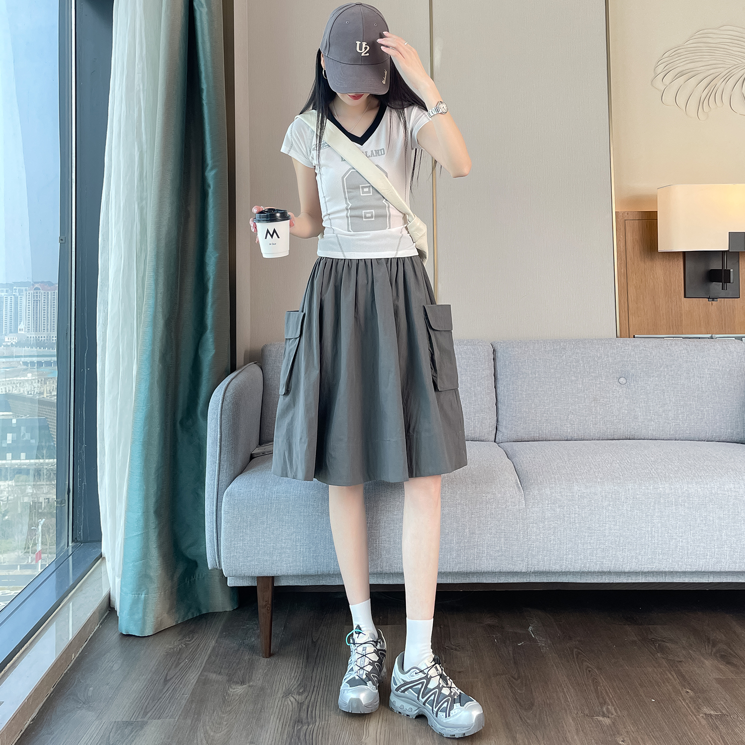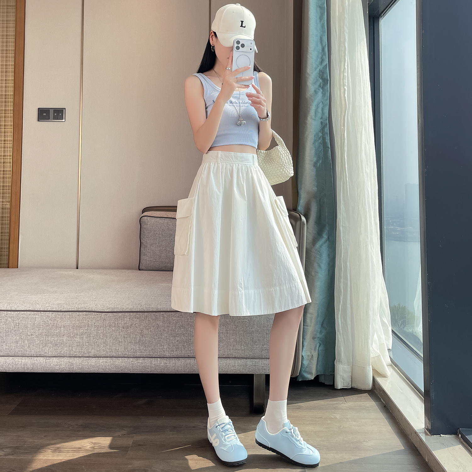 실사 불규칙 주간 실크 면 린넨 반신 스커트 여성 여름 트임 디자인 센스 하이웨이스트 길다 치마