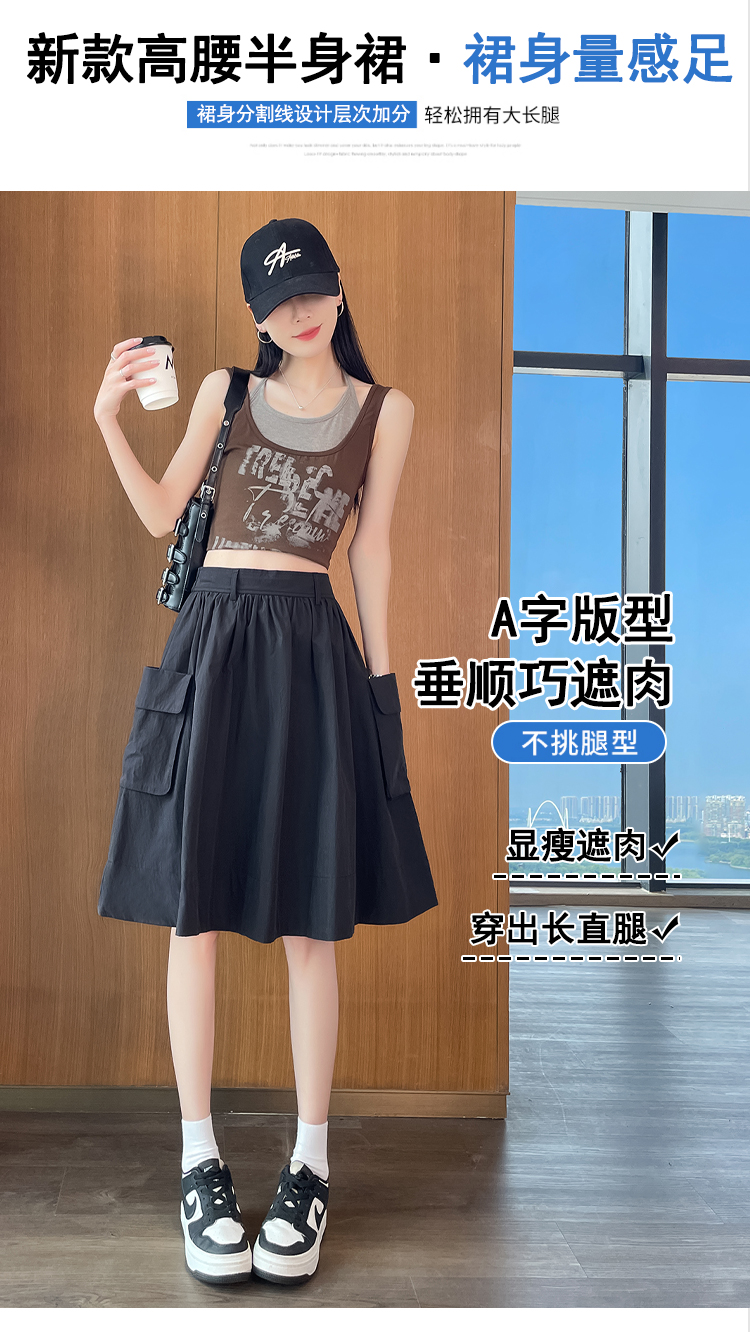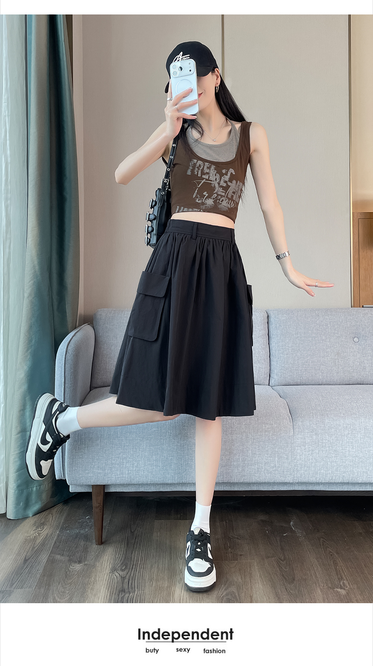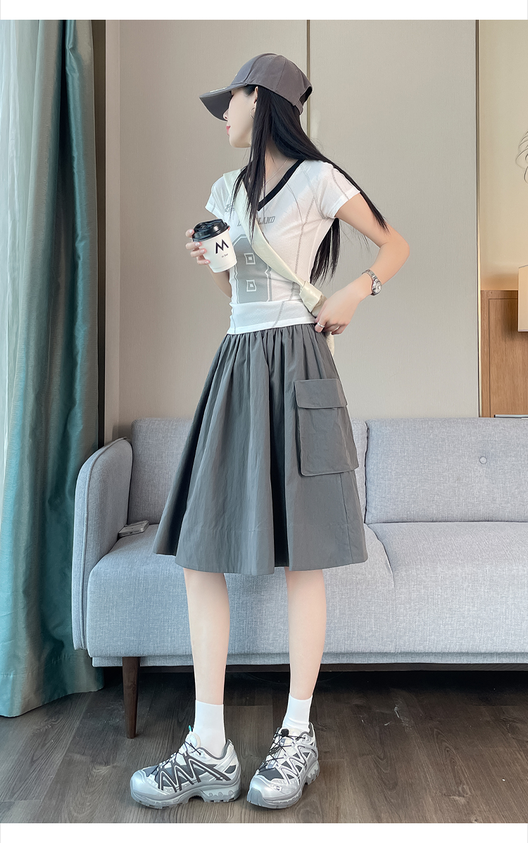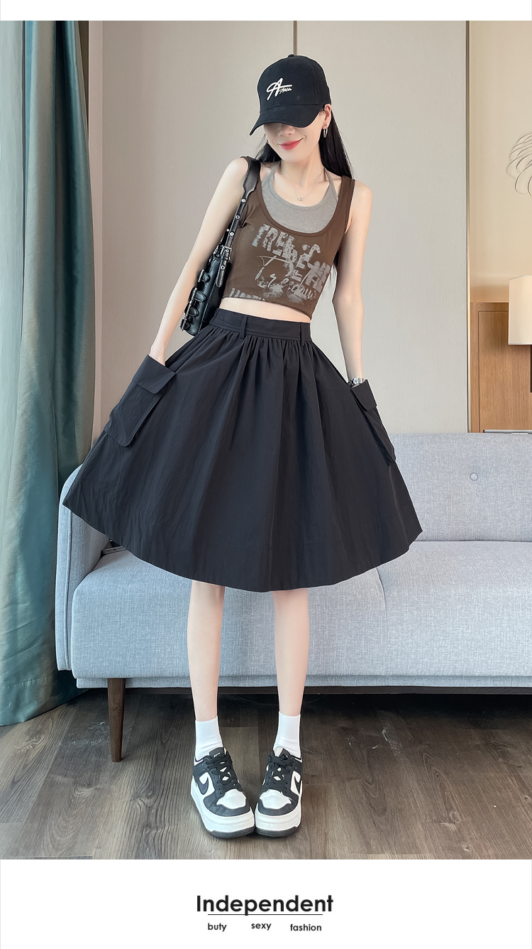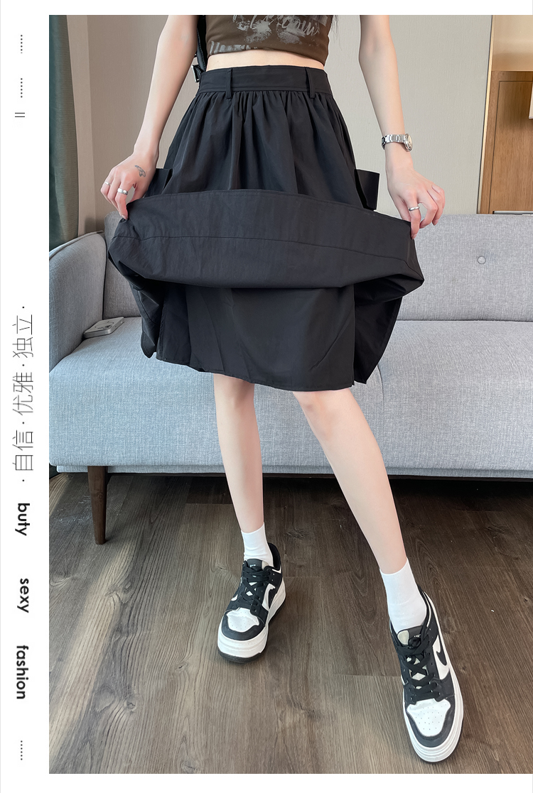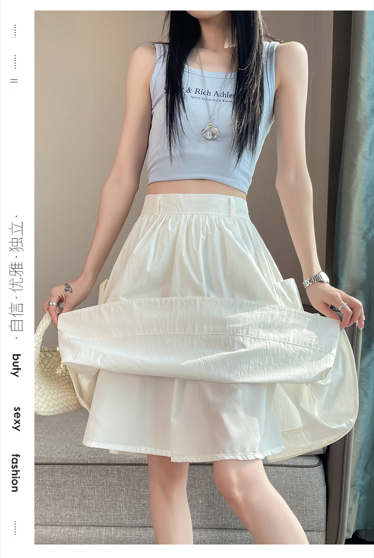실사 한국 스타일 다용도 슬림해 보이는 케이크 드레스 표지 십자가 프릴 중간 스커트 한 마디 반신 스커트