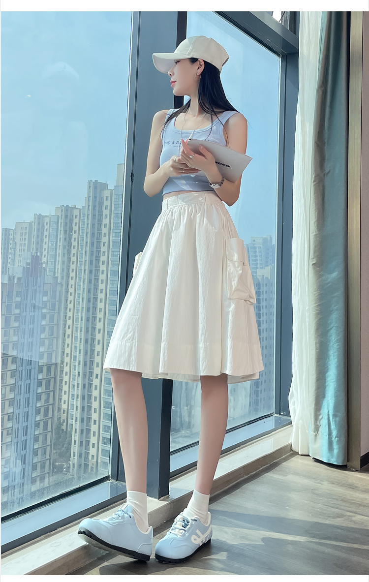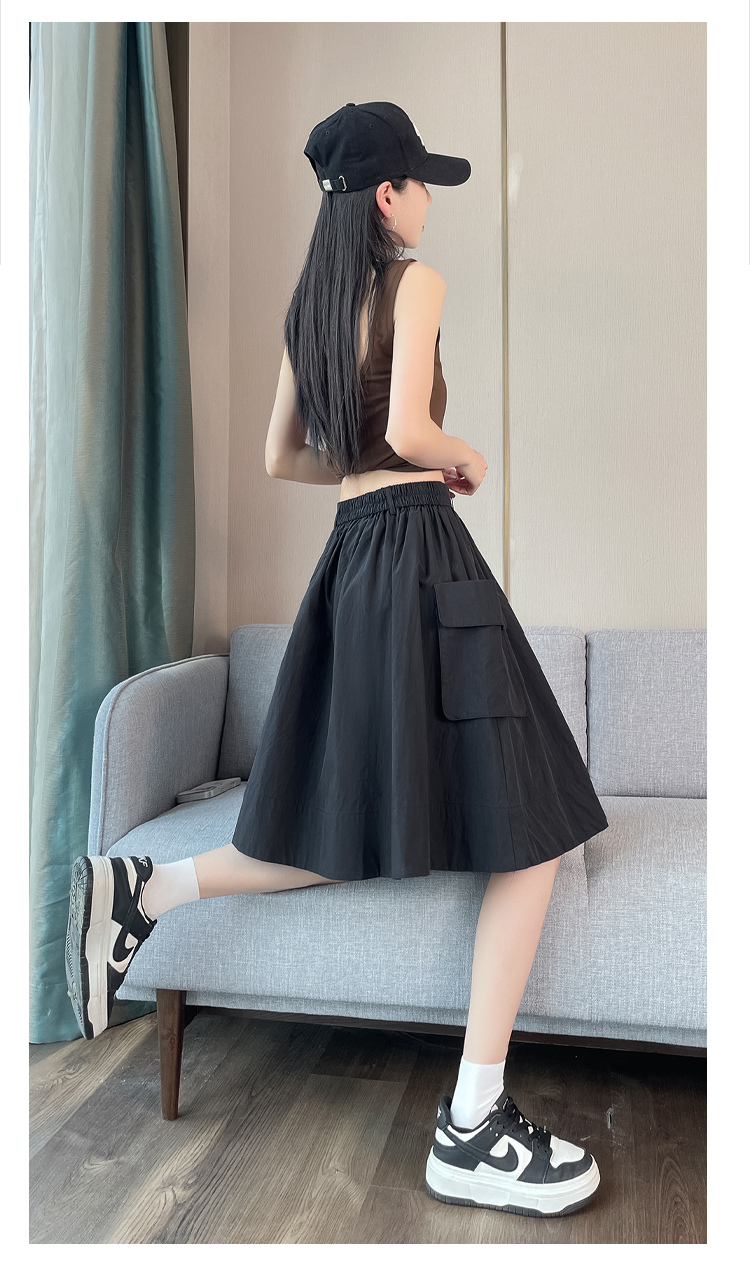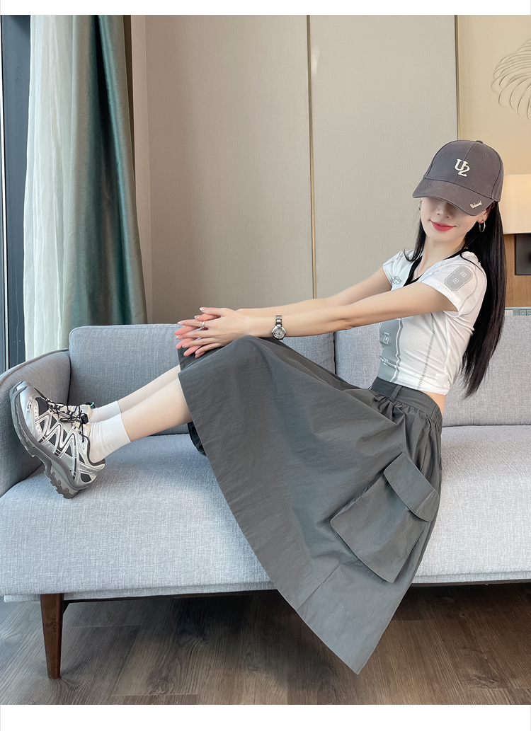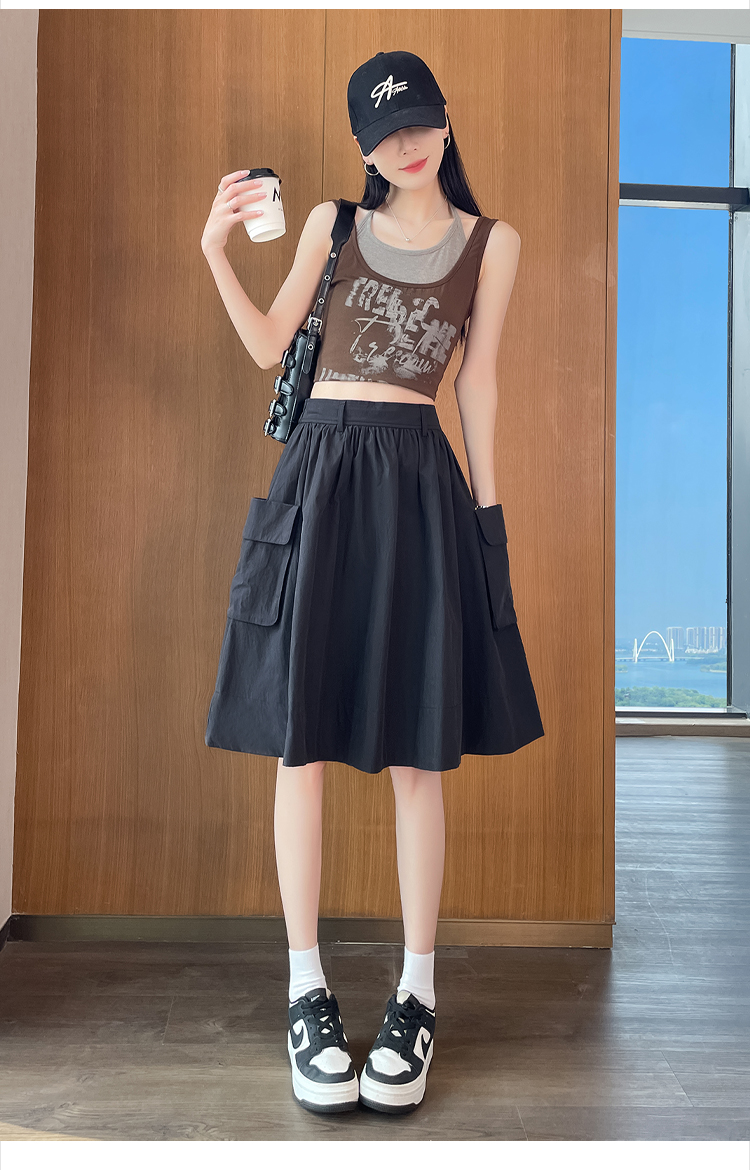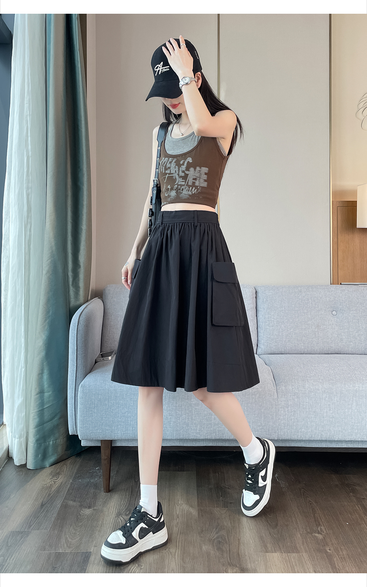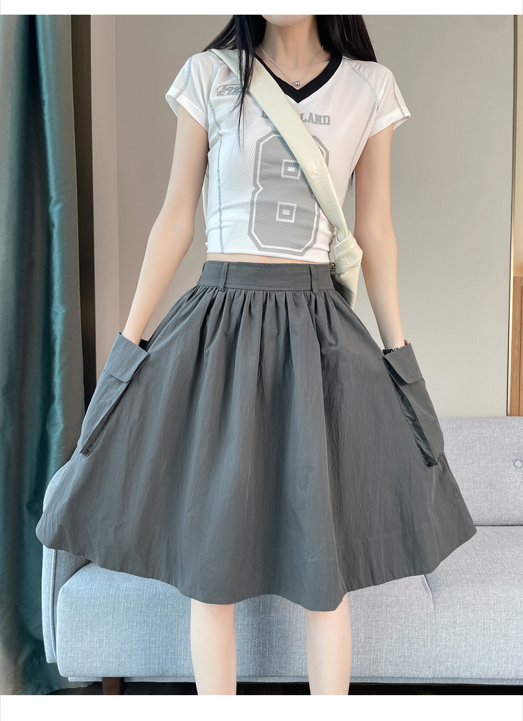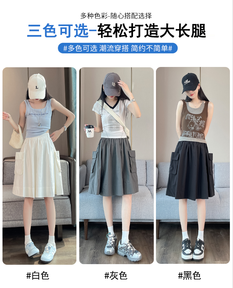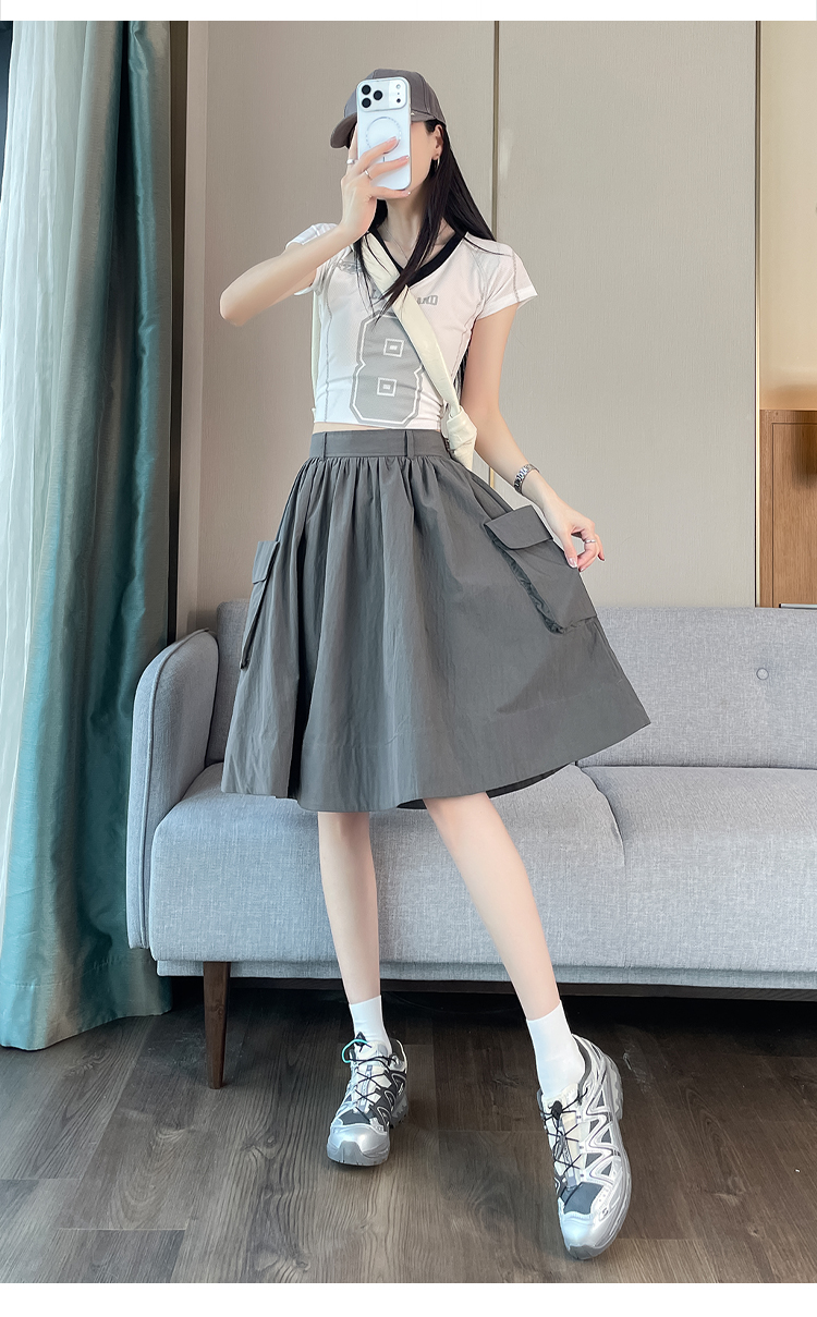실사 한국 스타일 다용도 슬림해 보이는 케이크 드레스 표지 십자가 프릴 중간 스커트 한 마디 반신 스커트