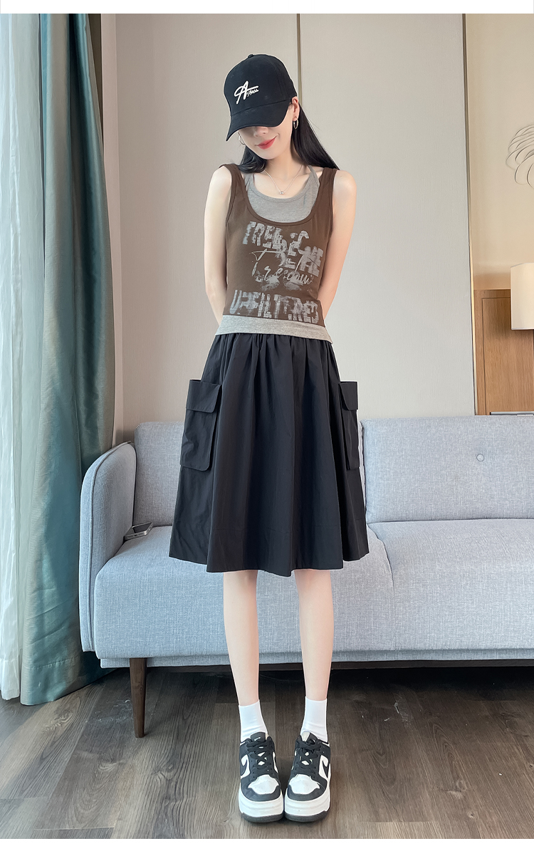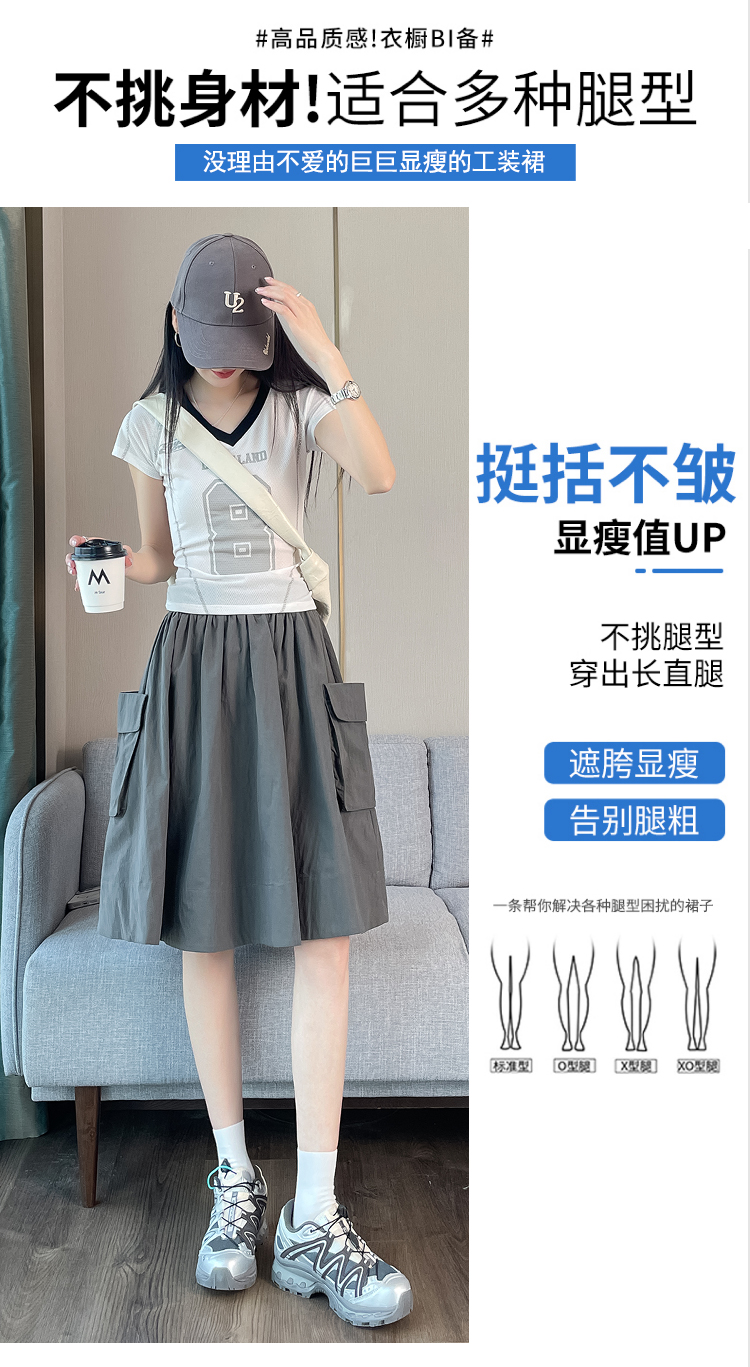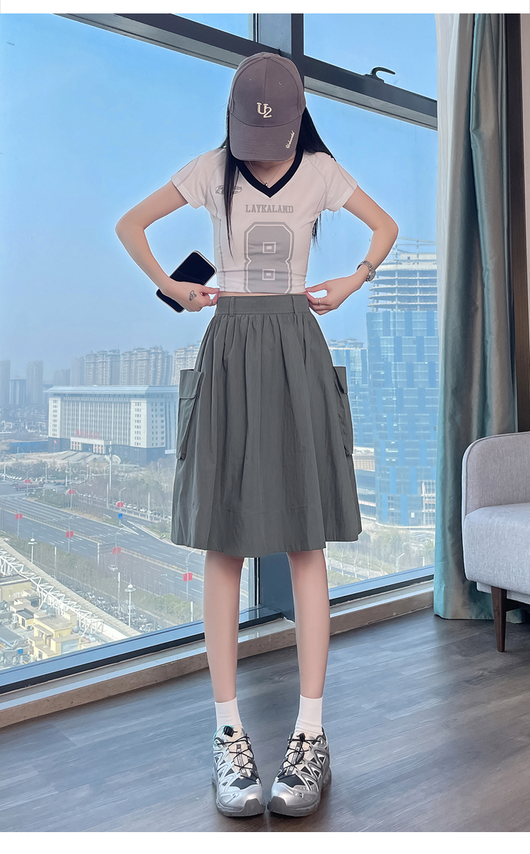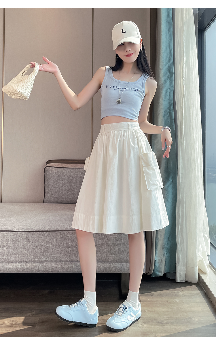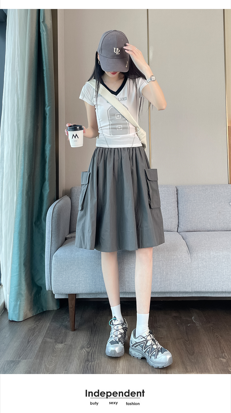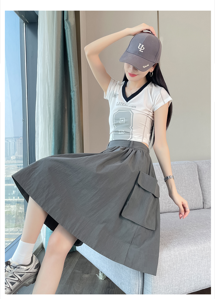 실사 한국 스타일 다용도 슬림해 보이는 케이크 드레스 표지 십자가 프릴 중간 스커트 한 마디 반신 스커트