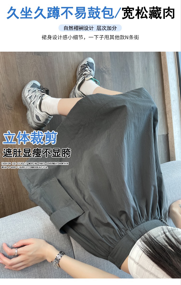 실사 여름 새로운 꽃밭 배기 바지 루즈핏 슬림해 보이는 하이웨이스트 다용도 캐주얼 얼음 실크 풍선 바지