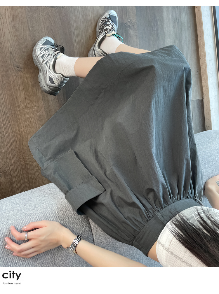 실사 재고 상품 속도 건조한 워크웨어 팬츠 여성 여름 얇은 스타일 하이웨이스트 조거 넓은 다리 둘 착용 얼음 실크 캐주얼 운동 바지