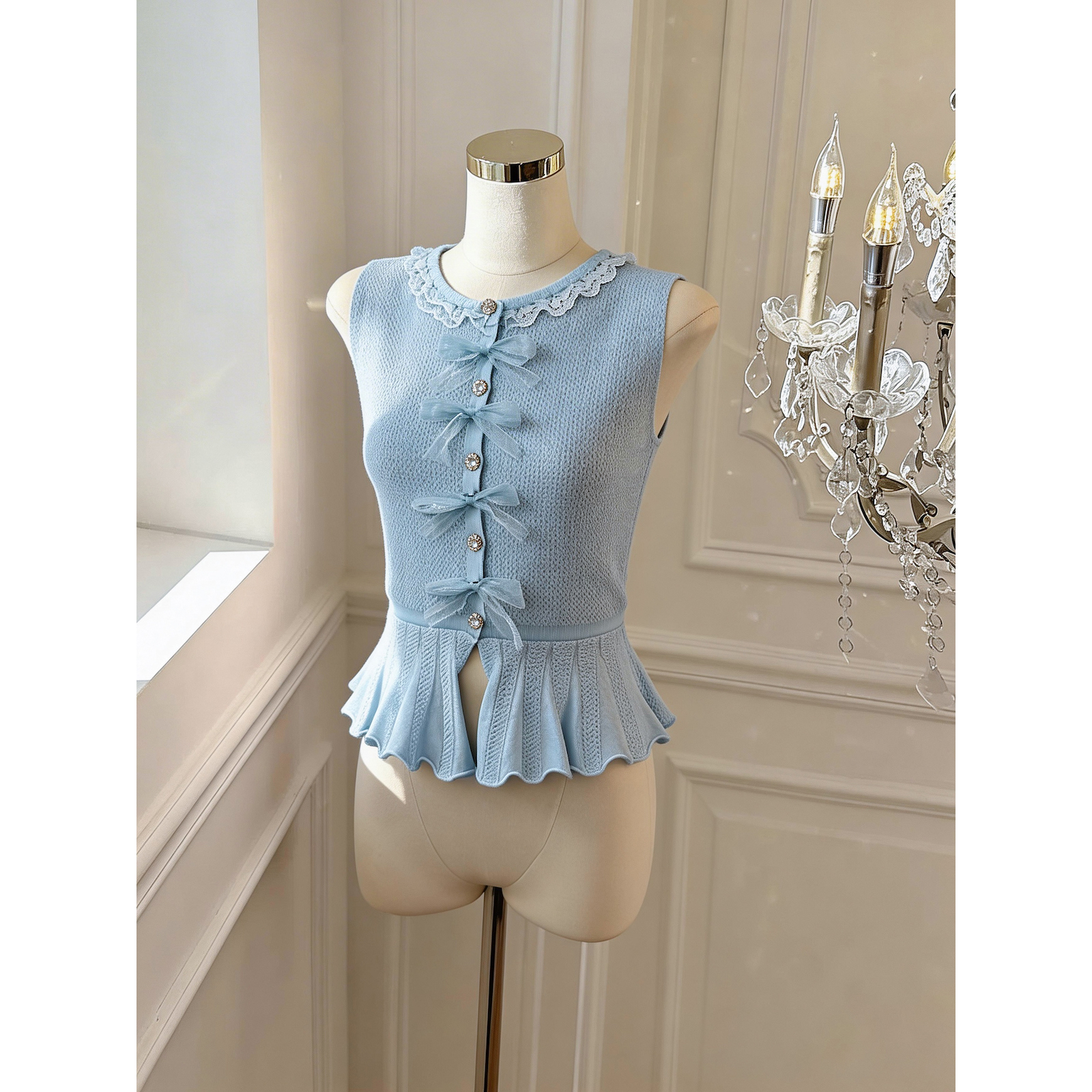 정가 있음 보호 작은 샤넬 스타일 비즈 박기 나비 매듭 조끼 여성 고급 센스 조끼 민소매 홀로우 아웃 작은 맨위