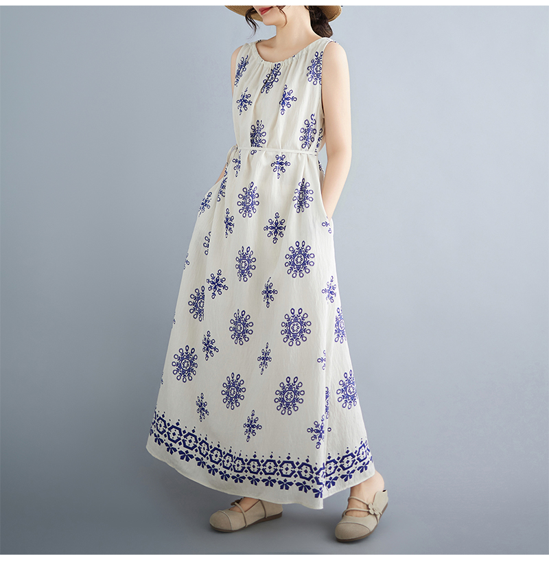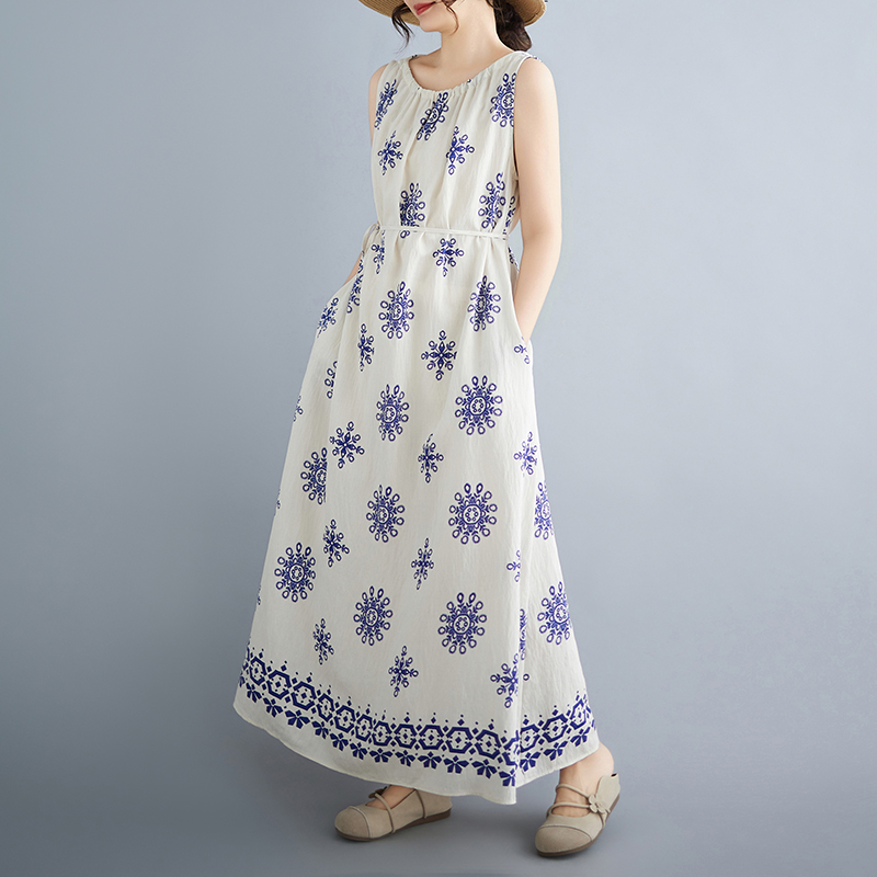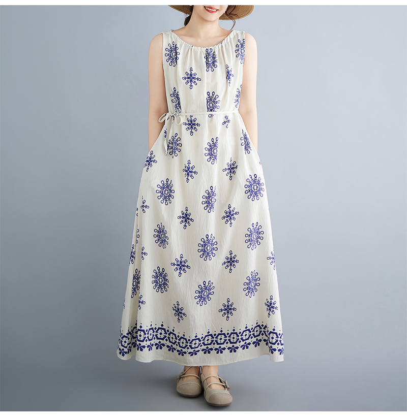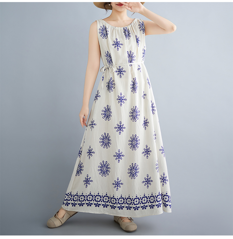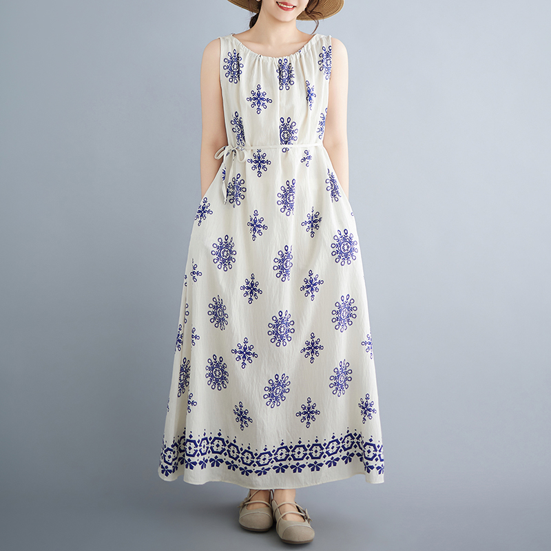 실사 2026 여름 디자인 센스 루즈핏 민족 스타일 프린트 여성 드레스 품격 여행 휴가 바람 롱 스커트