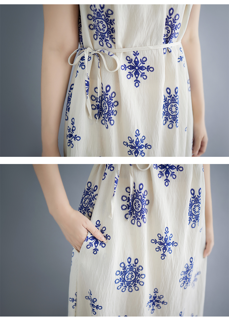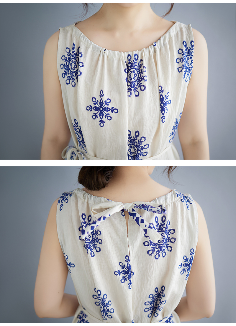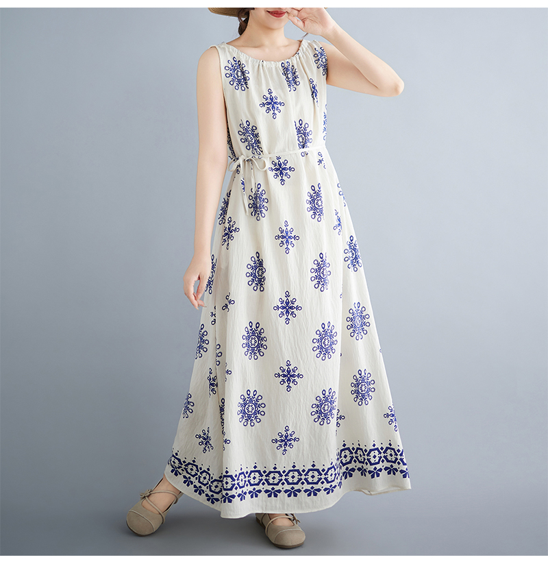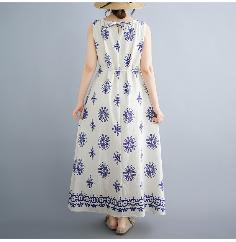 실사 빅 사이즈 여성 여름 민소매 레이스업 드레스 해변가 휴가 여행 롱 스커트 대외 무역 수출