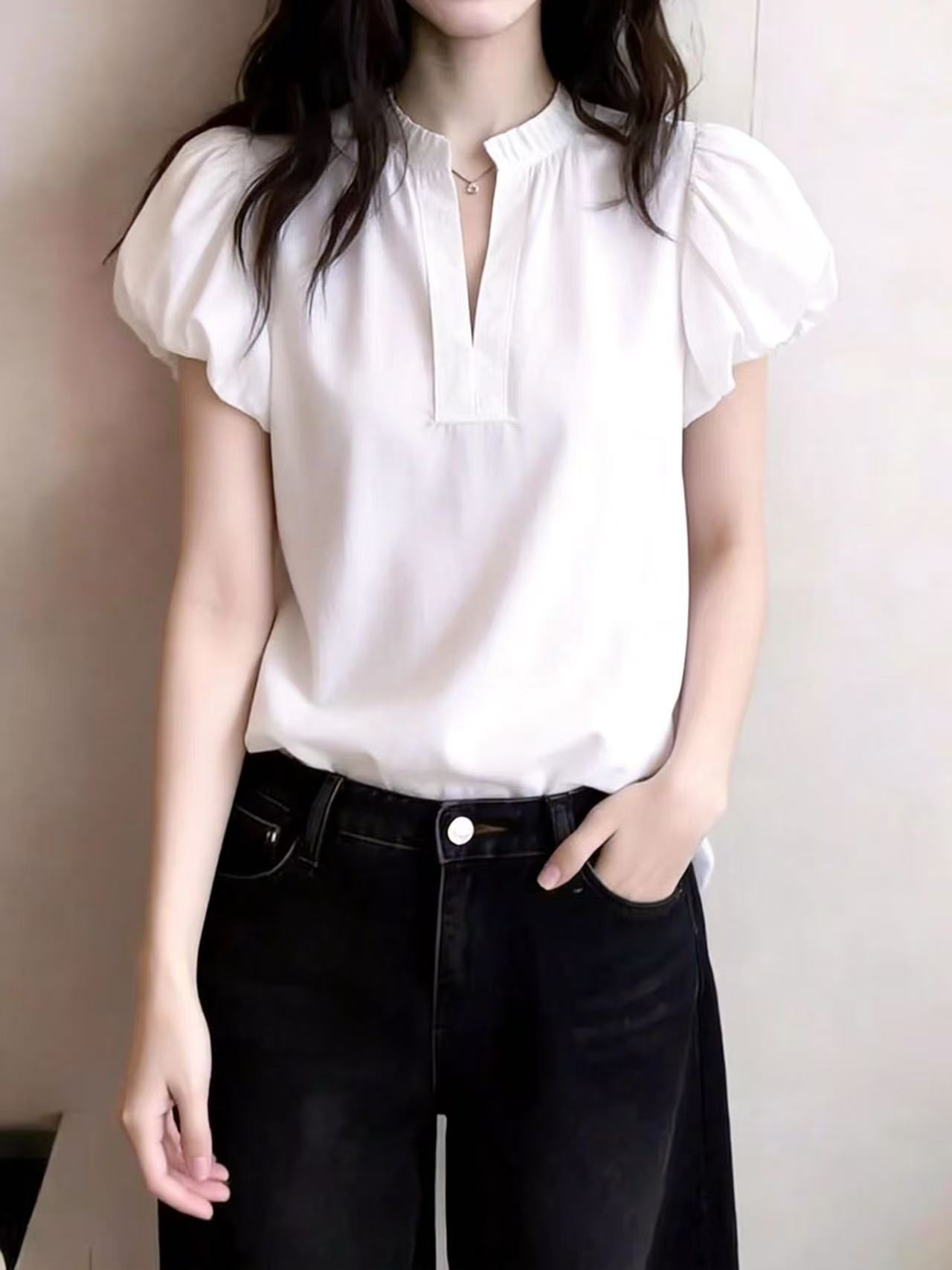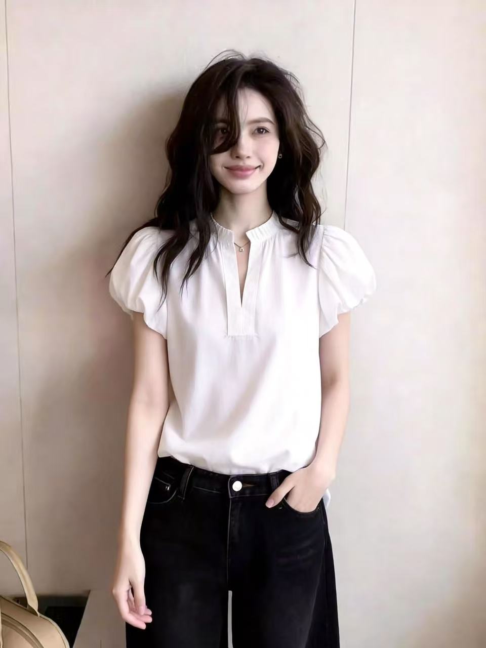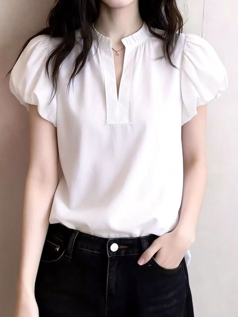 프랑스식 프릴 작은 날다 소매 여성 셔츠 여름 새로운 화이트 POLO 칼라 고급 센스 출퇴근 패션 다용도 맨위
