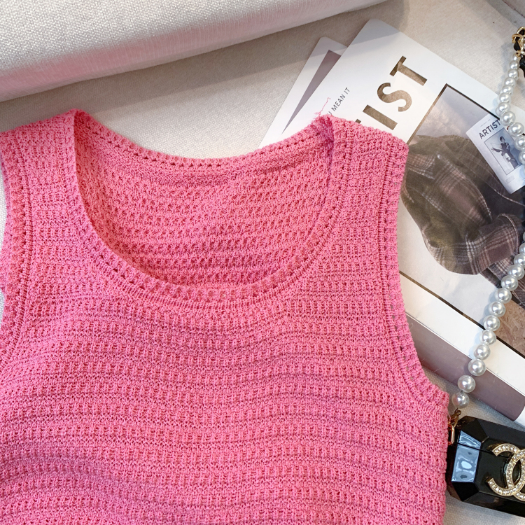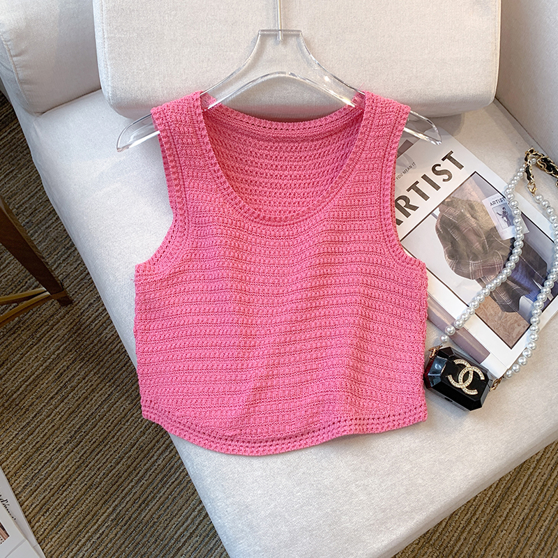 실사 대 물품 2026 여름 새로운 쇼트 스타일 조끼 슬립 달콤한 핫걸 순수한 욕망 바람 민소매 얼음 실크 니트 여성