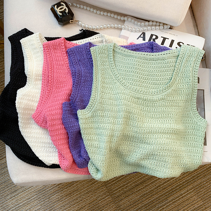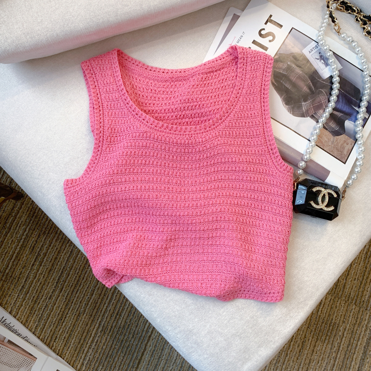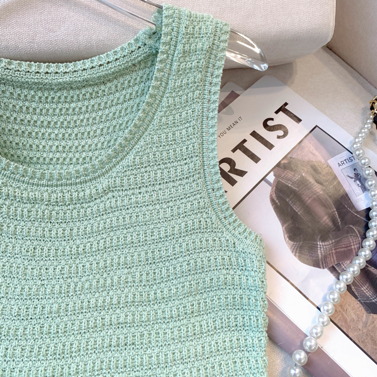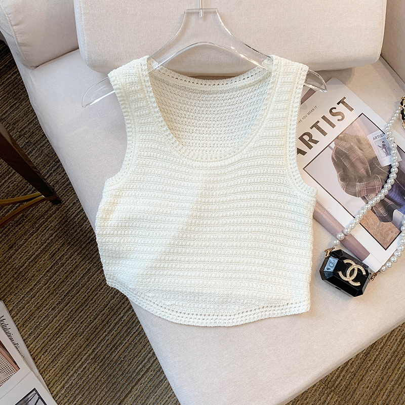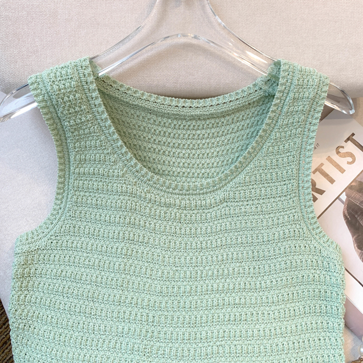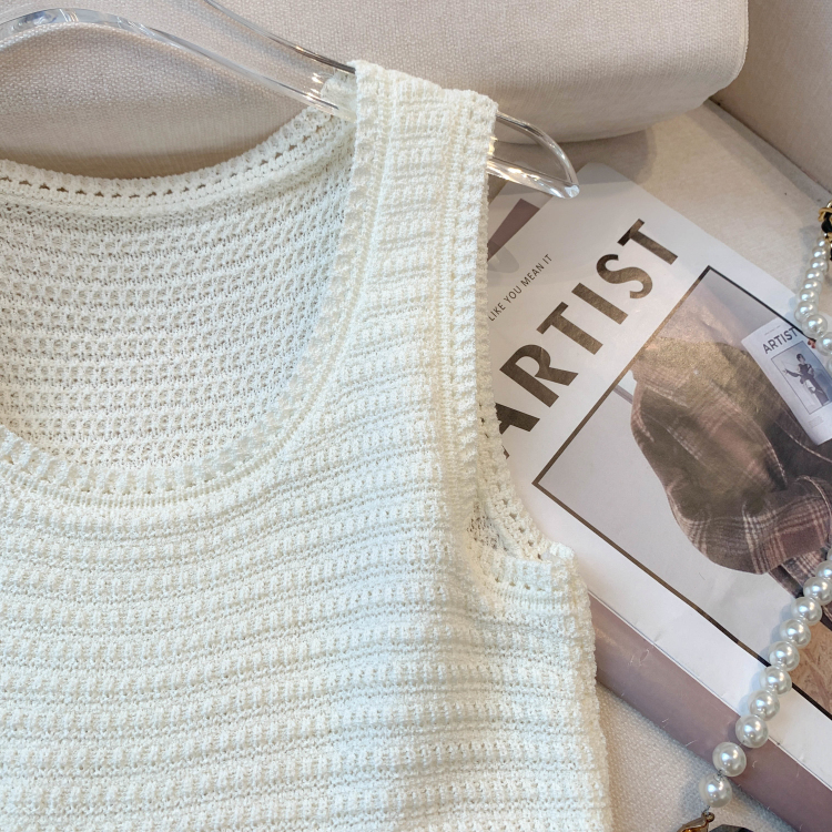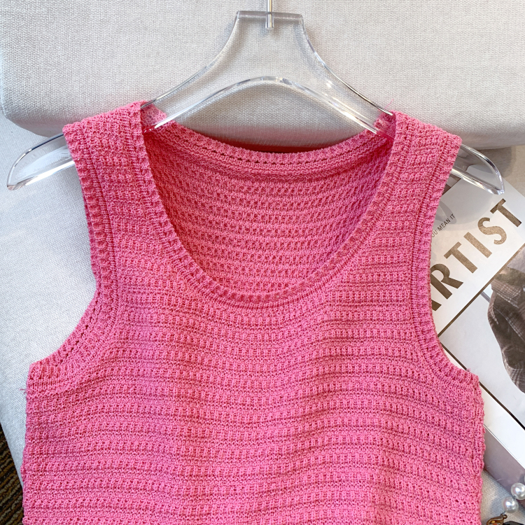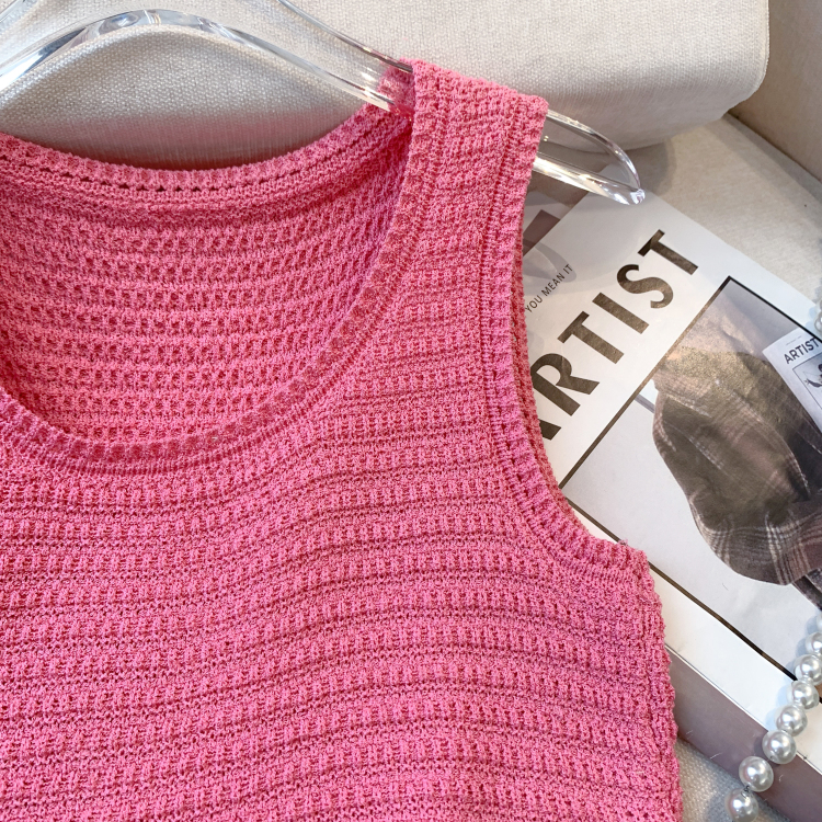 실사 대 물품 2026 여름 새로운 ins 디자인 센스 몸매 가꾸기 조끼 슬립 단색 미니멀리즘 민소매 티셔츠 여성