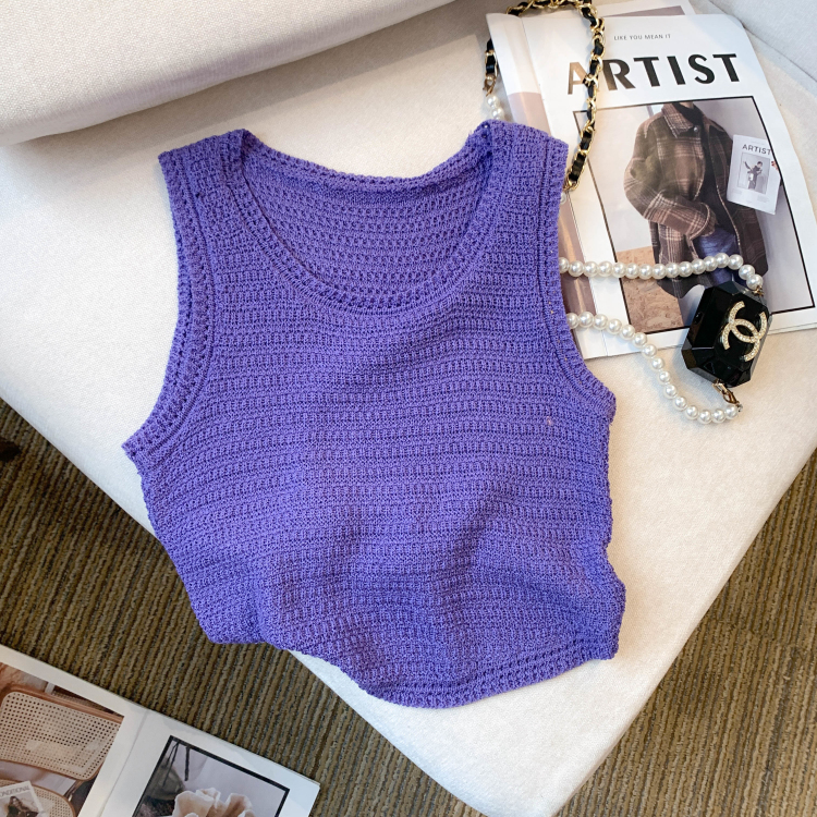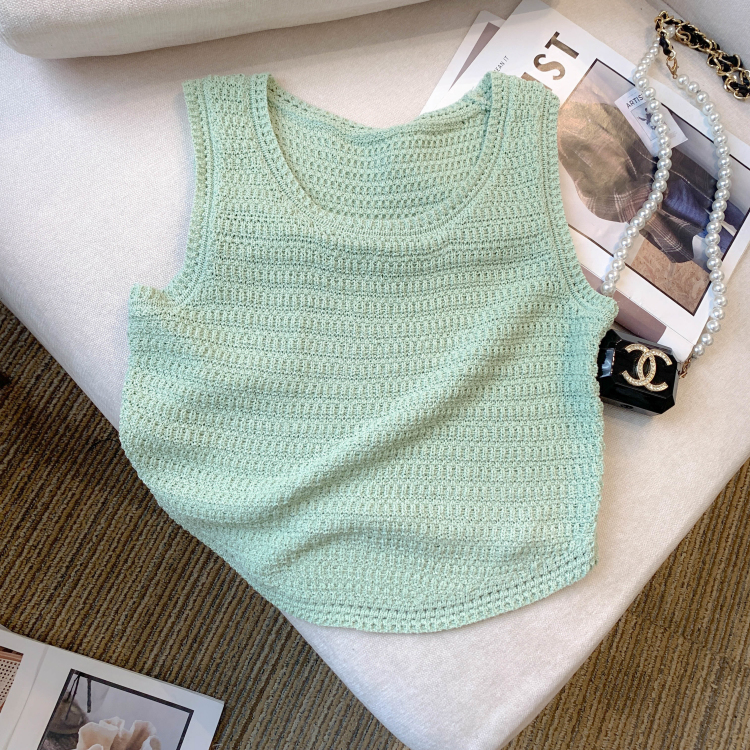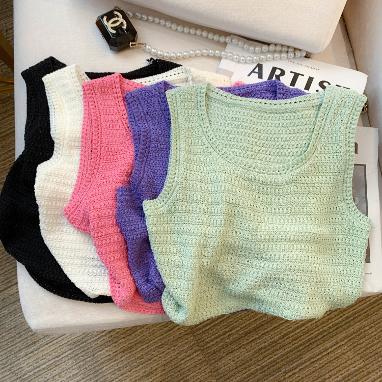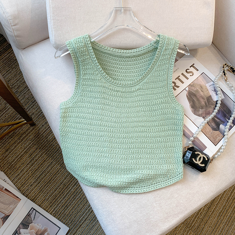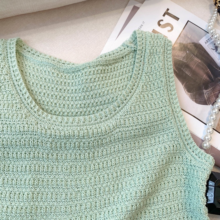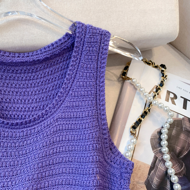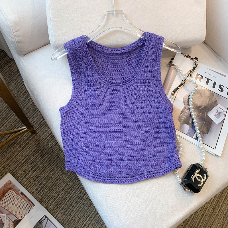 실사 대 물품 2026 여름 새로운 ins 디자인 센스 몸매 가꾸기 조끼 슬립 단색 미니멀리즘 민소매 티셔츠 여성