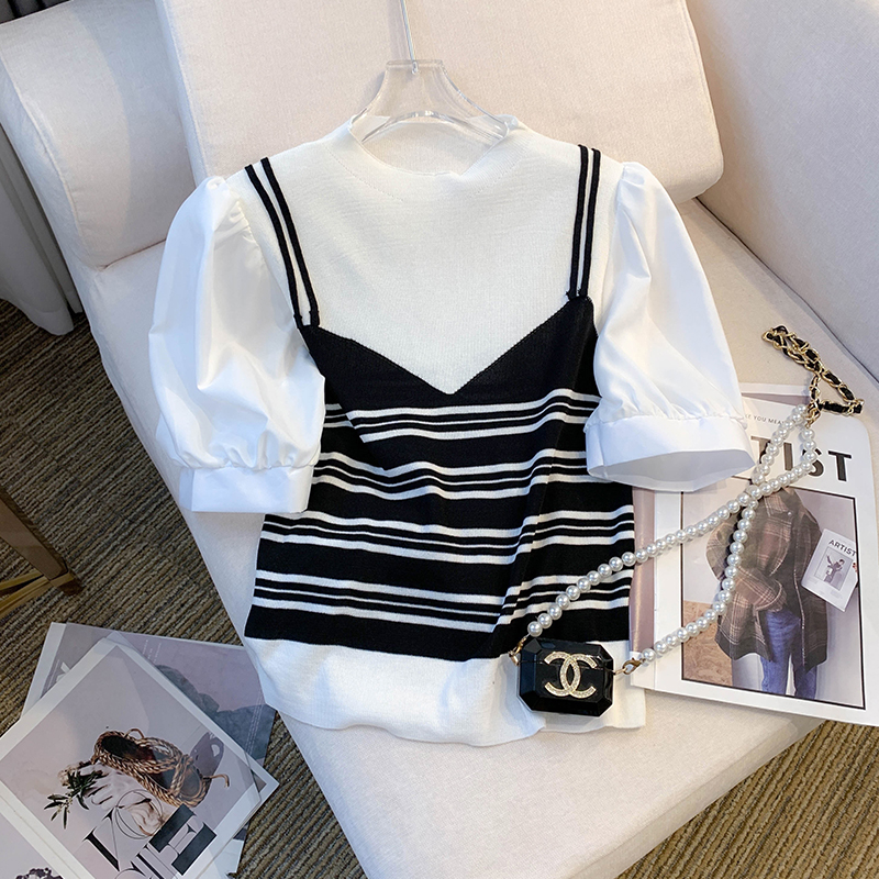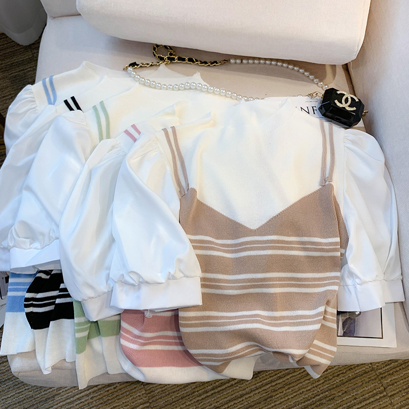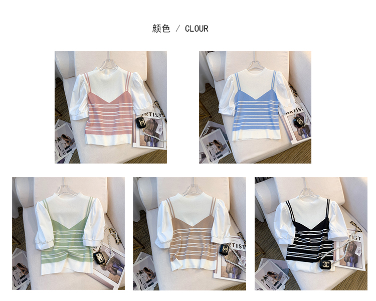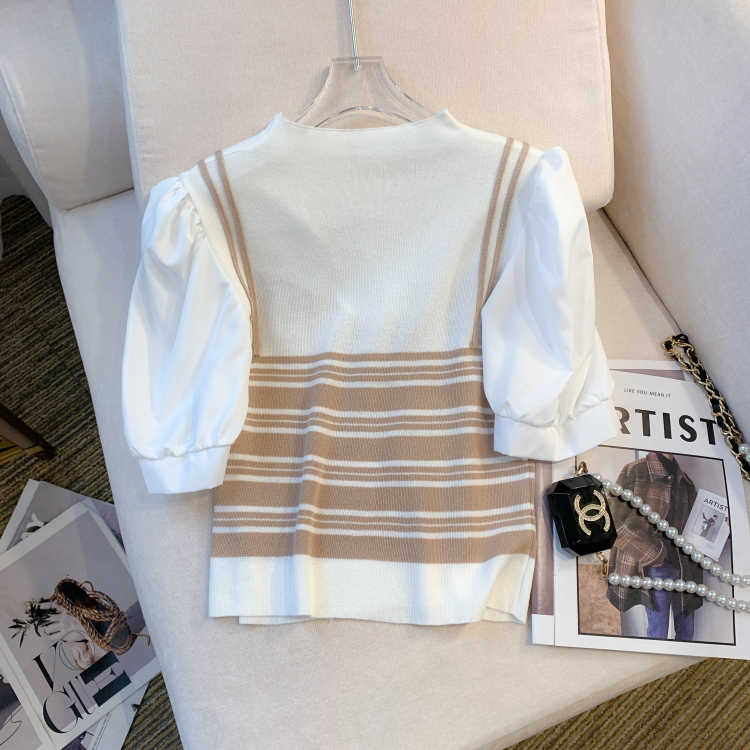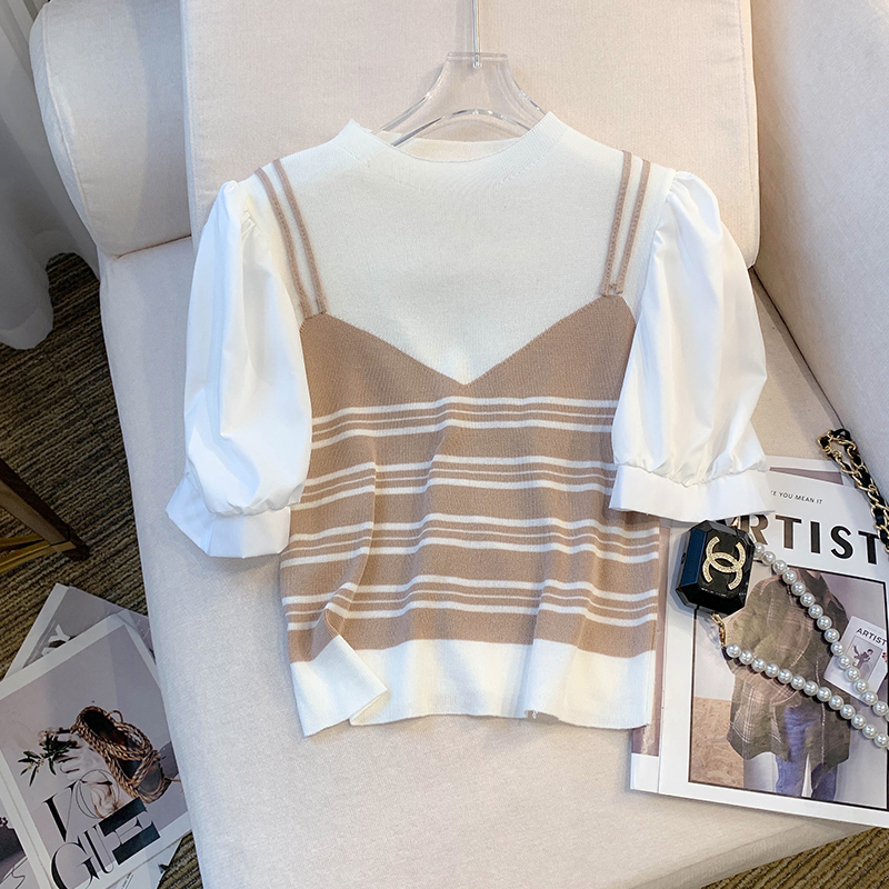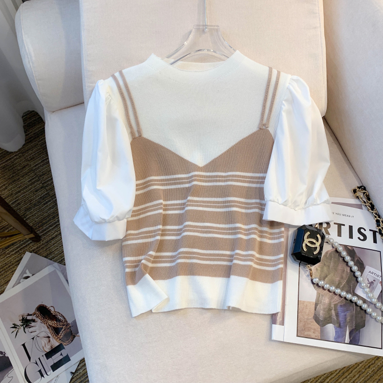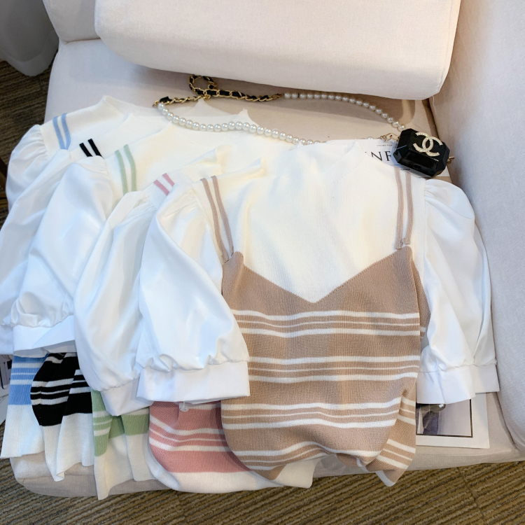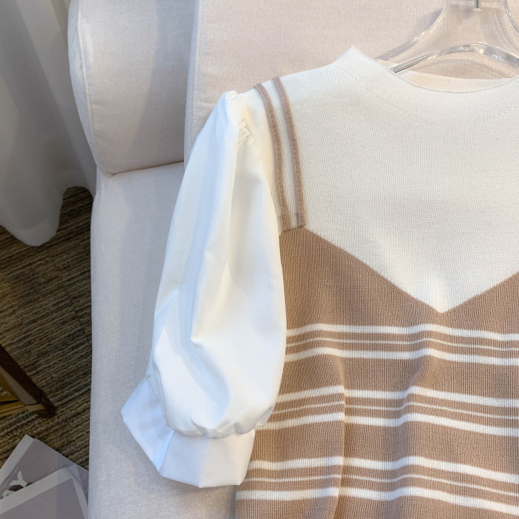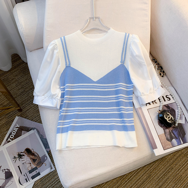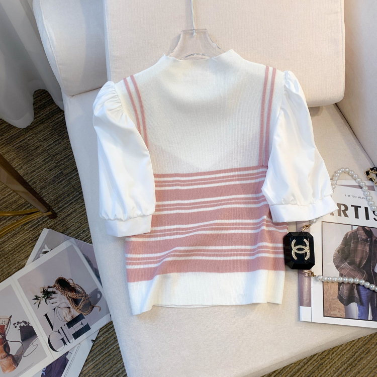 실사 대 물품 2026 여름 새로운 디자인 센스 스트라이프 하프 오픈 가디건 반팔 맨위 티셔츠 얼음 실크 니트 스웨터 여성