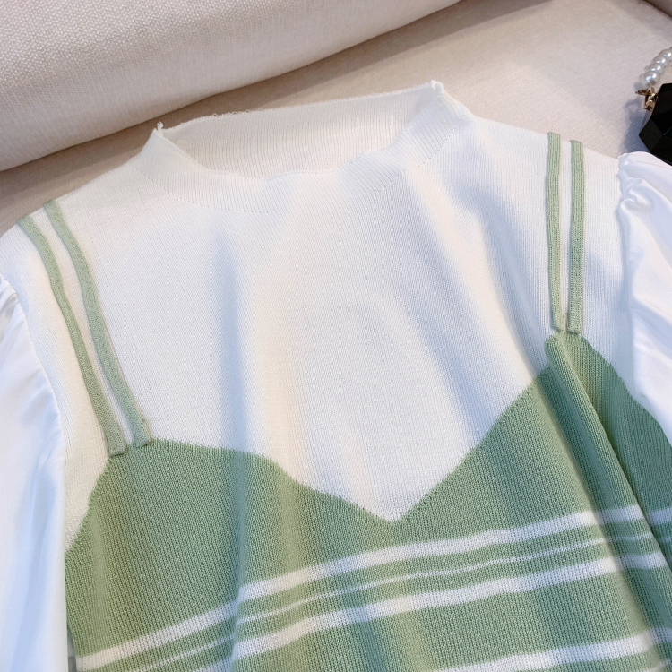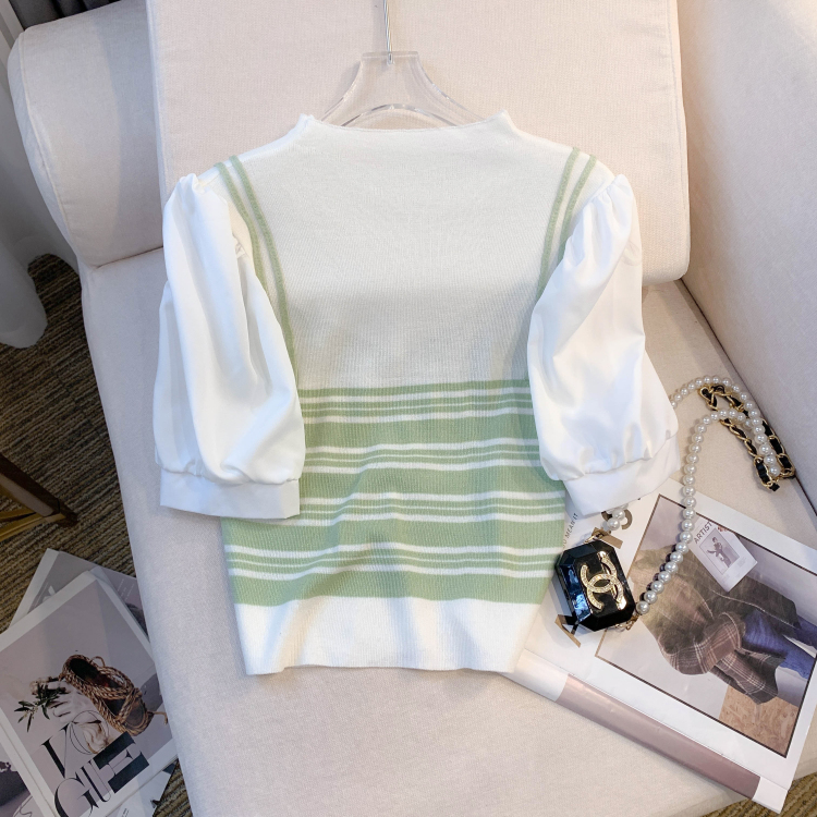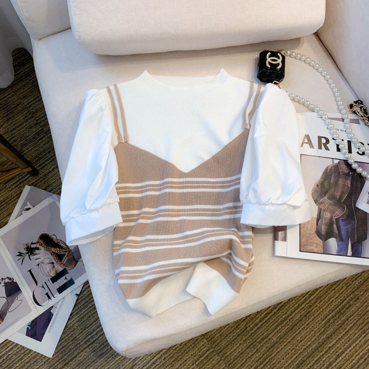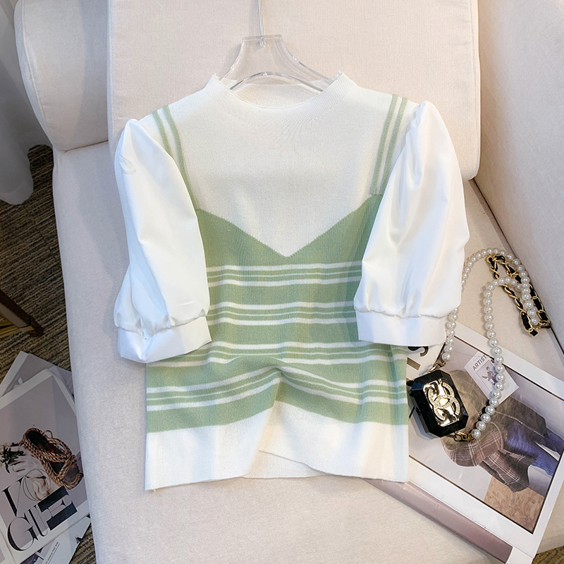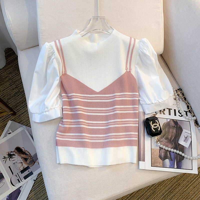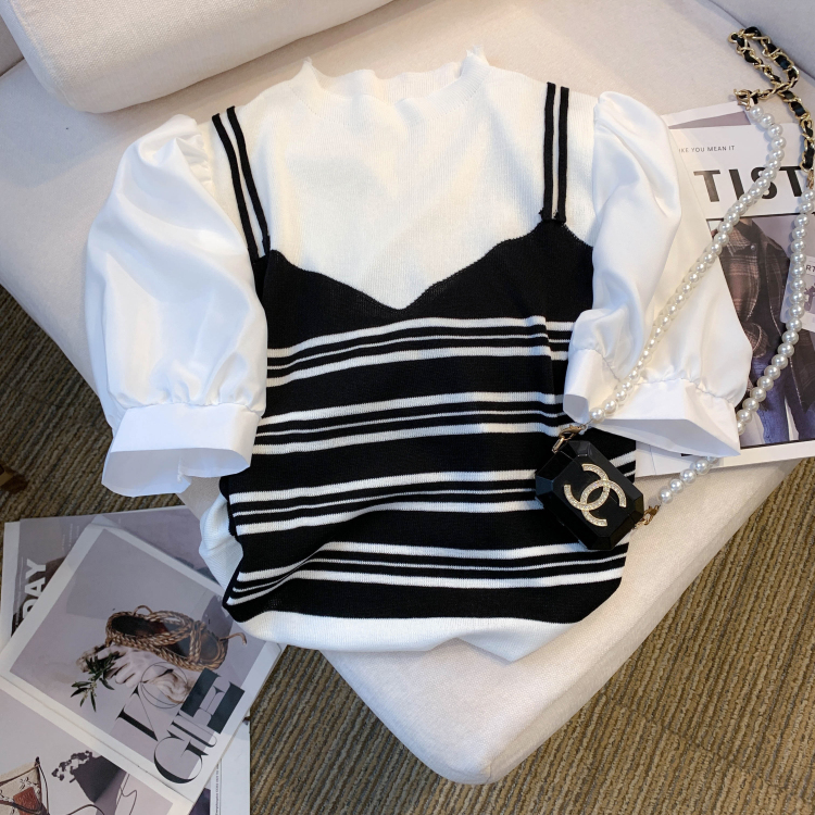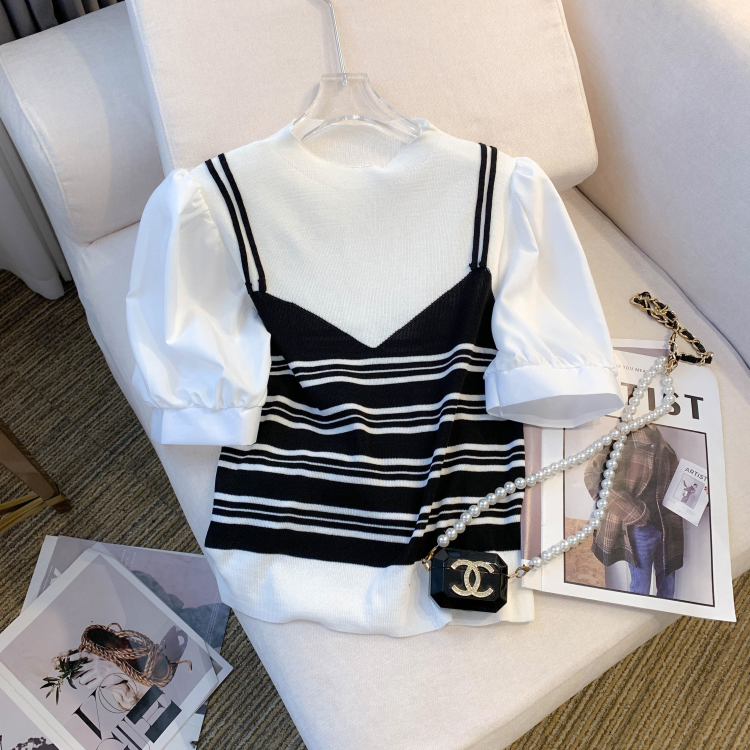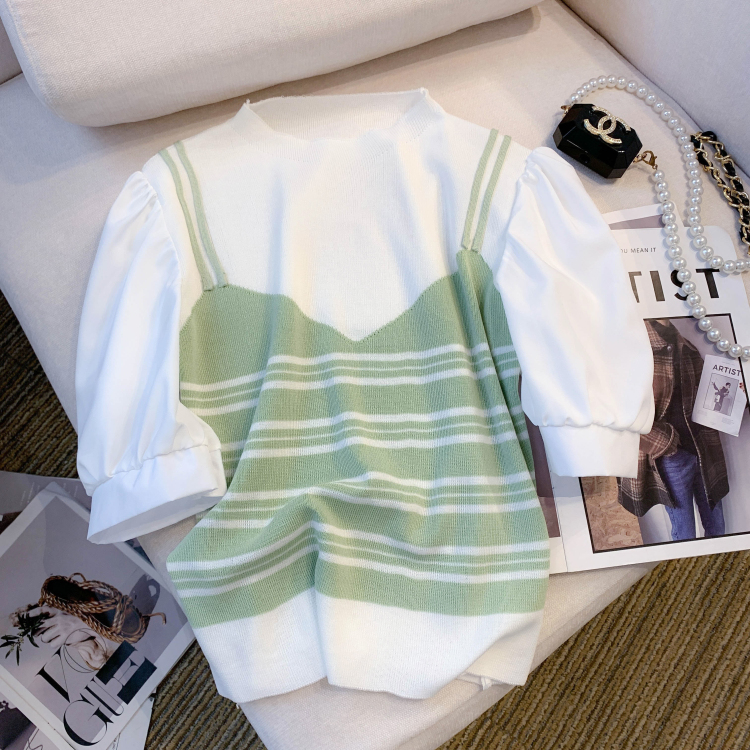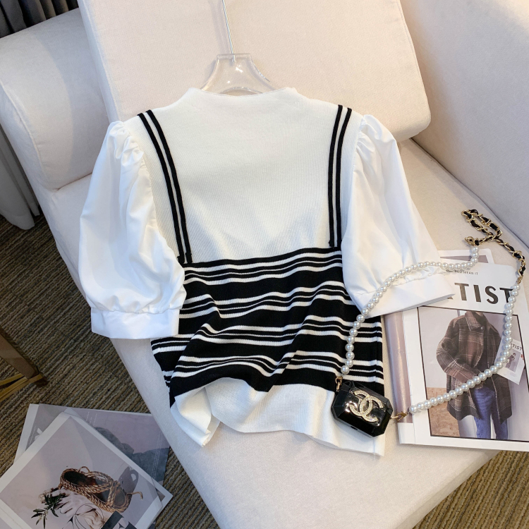 실사 대 물품 2026 여름 새로운 디자인 센스 스트라이프 하프 오픈 가디건 반팔 맨위 티셔츠 얼음 실크 니트 스웨터 여성