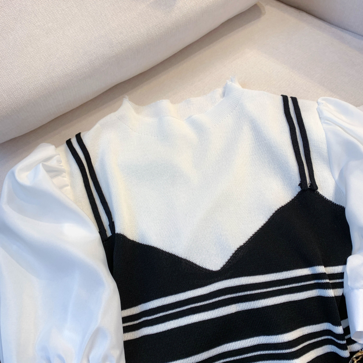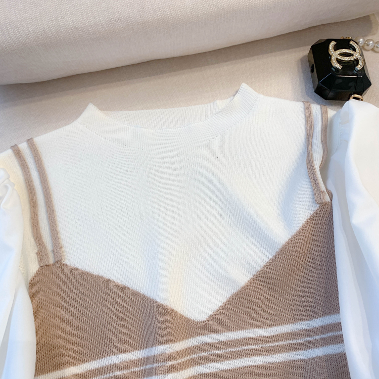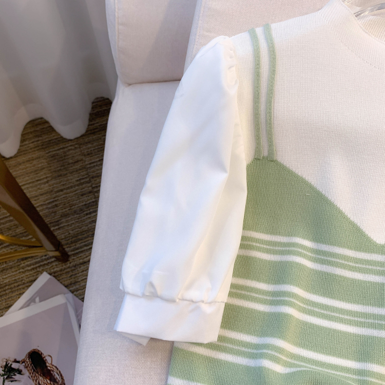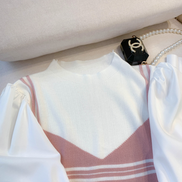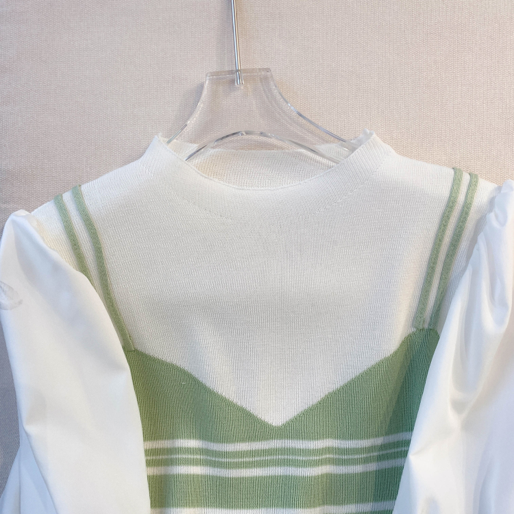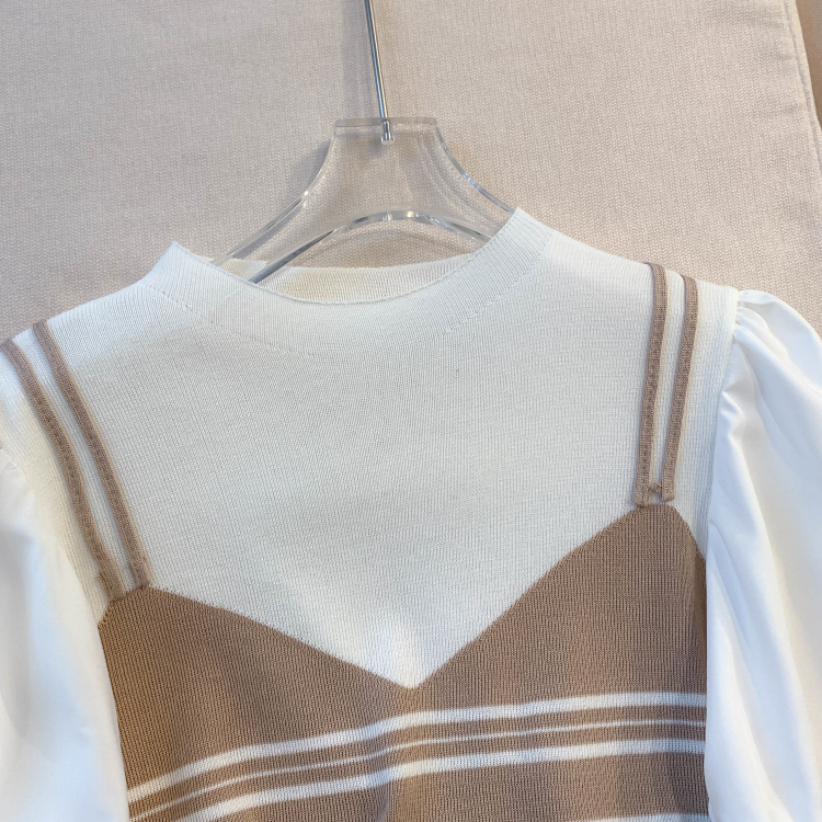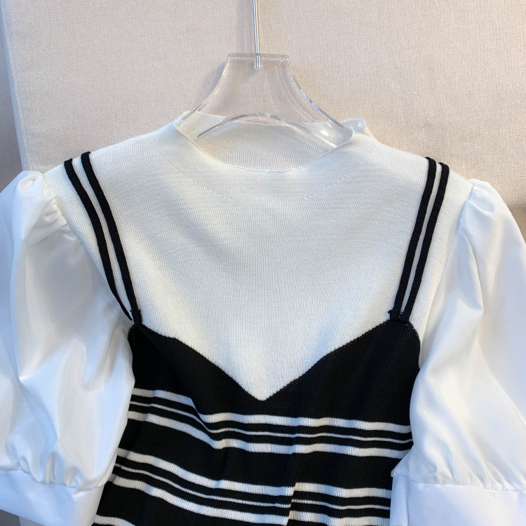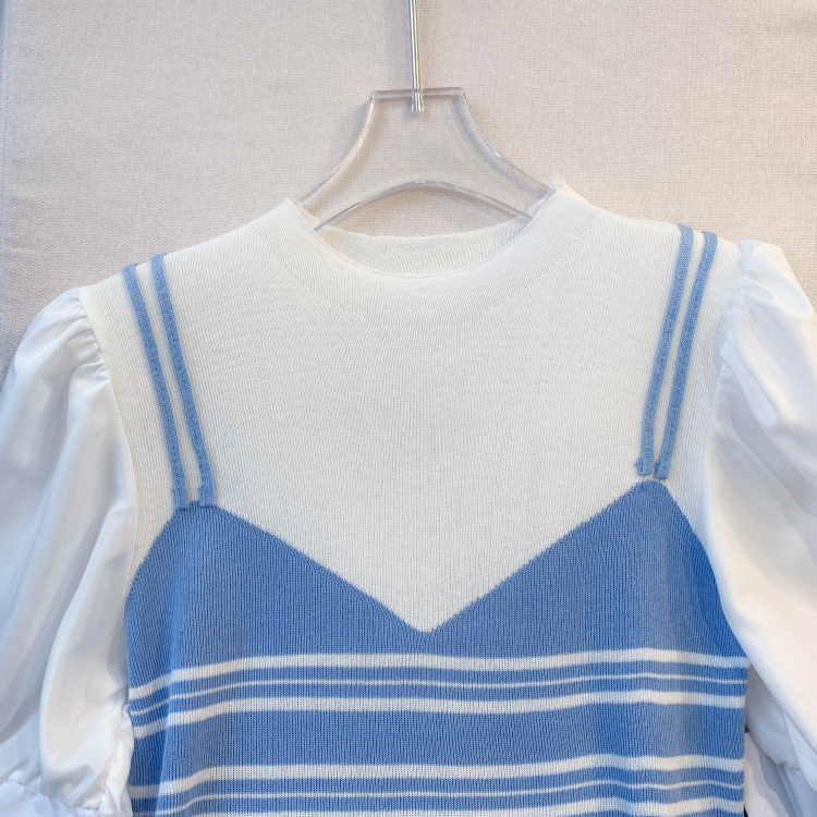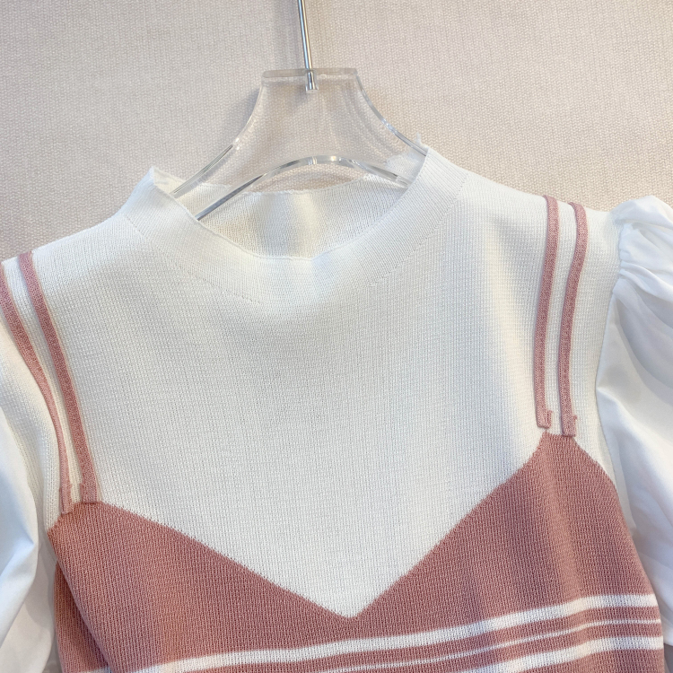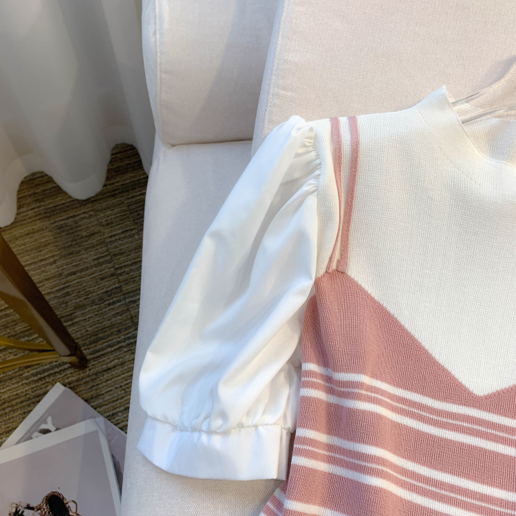 실사 대 물품 2026 여름 새로운 디자인 센스 작은 대중 배색 허리 수축 슬림해 보이는 니트 원피스 여성 드레스