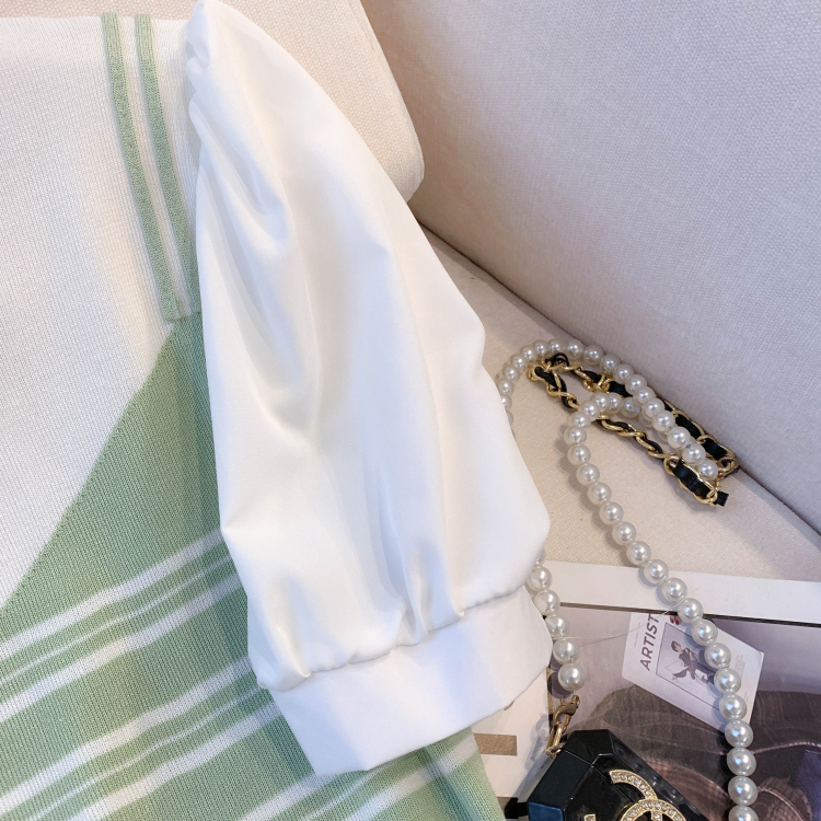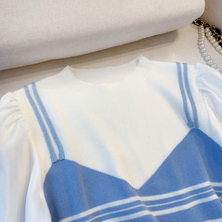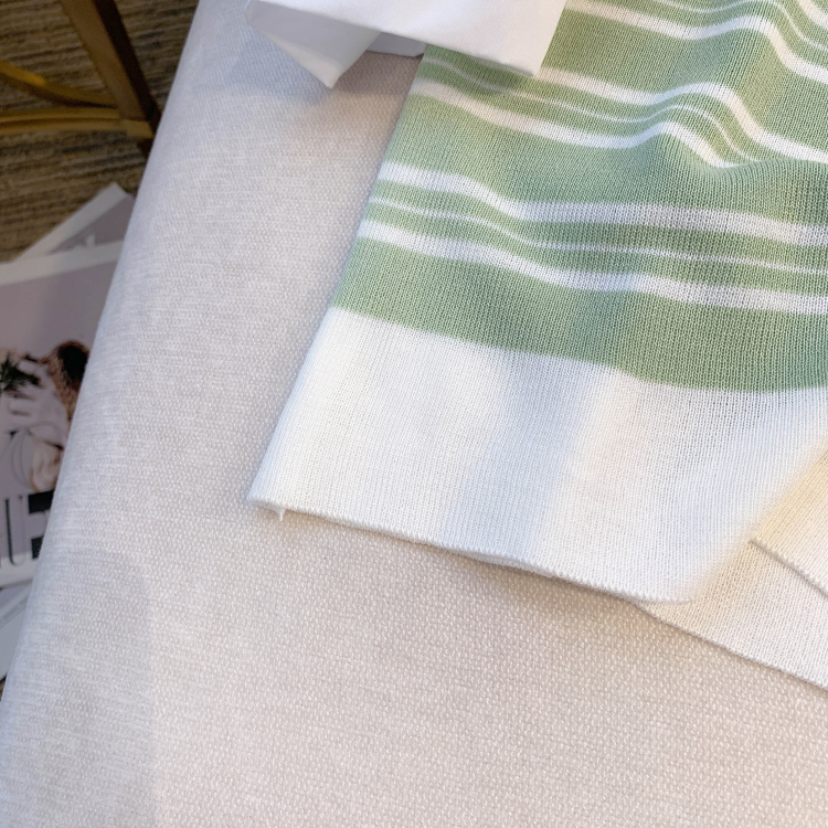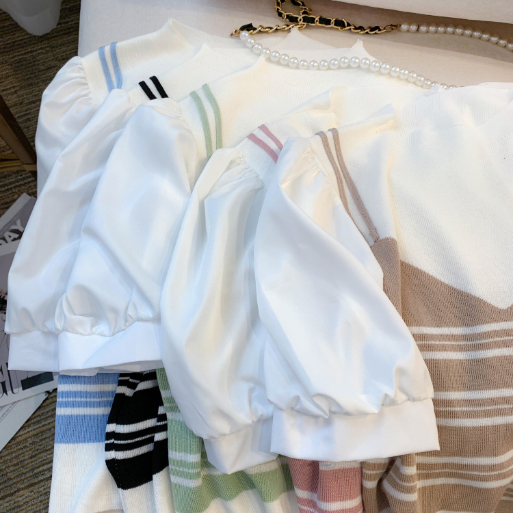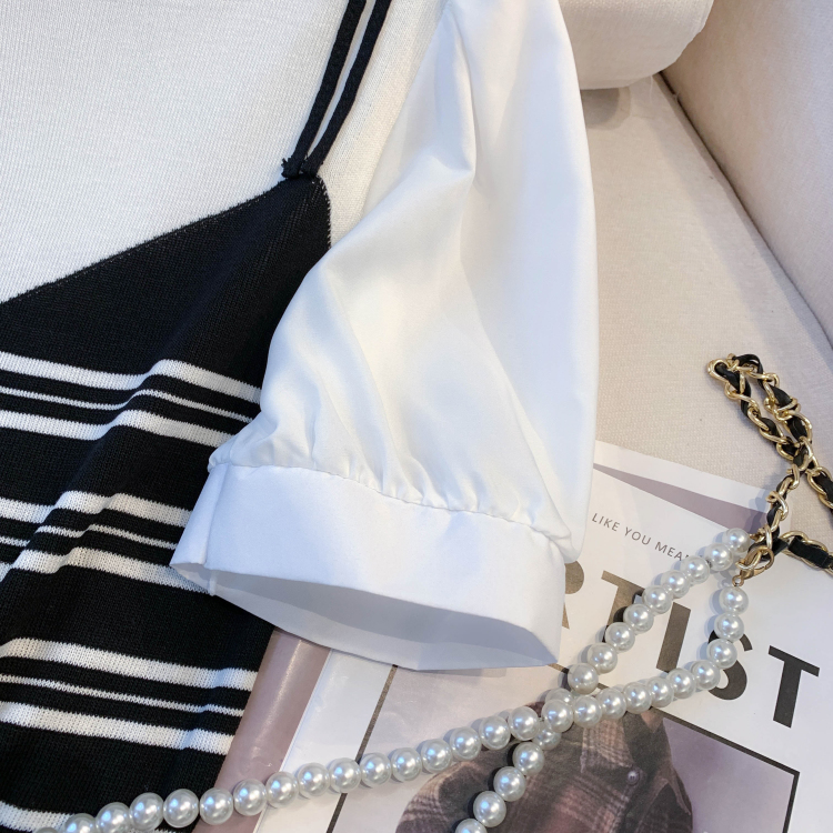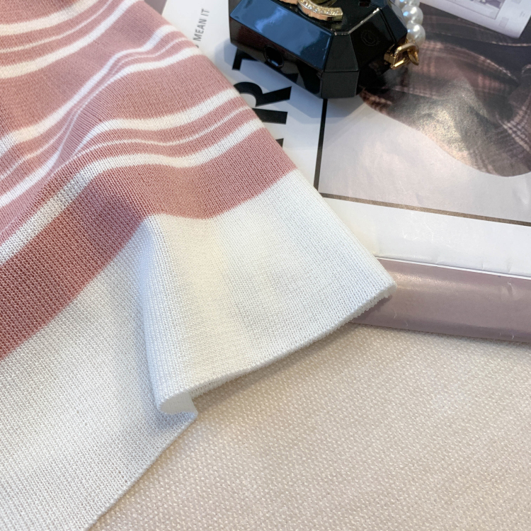 실사 대 물품 2026 여름 새로운 디자인 센스 배색 라운드 넥 반팔 티셔츠 품격 얼음 실크 니트 여성