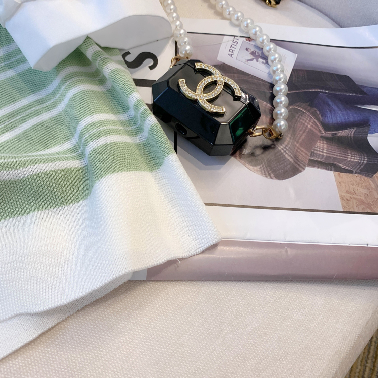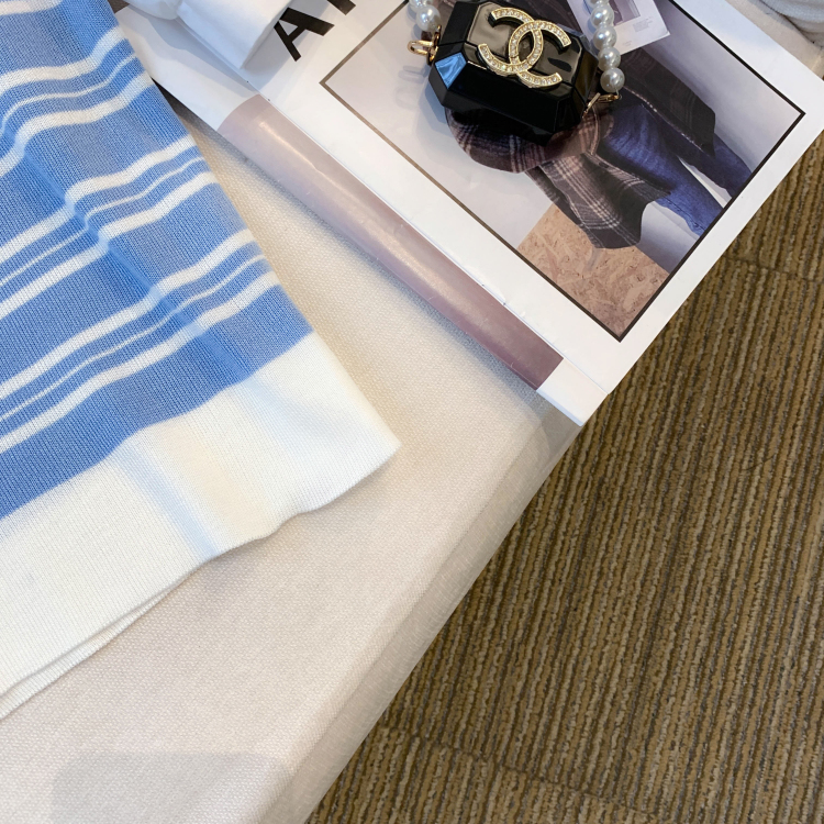실사 대 물품 2026 여름 새로운 디자인 센스 라운드 넥 물결무늬 스트라이프 치마 얼음 실크 니트 여성 드레스