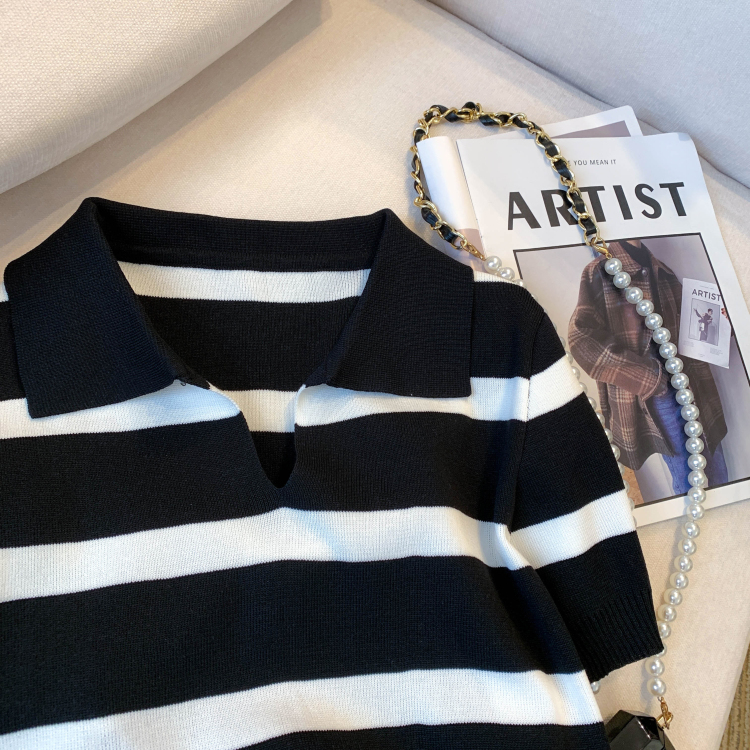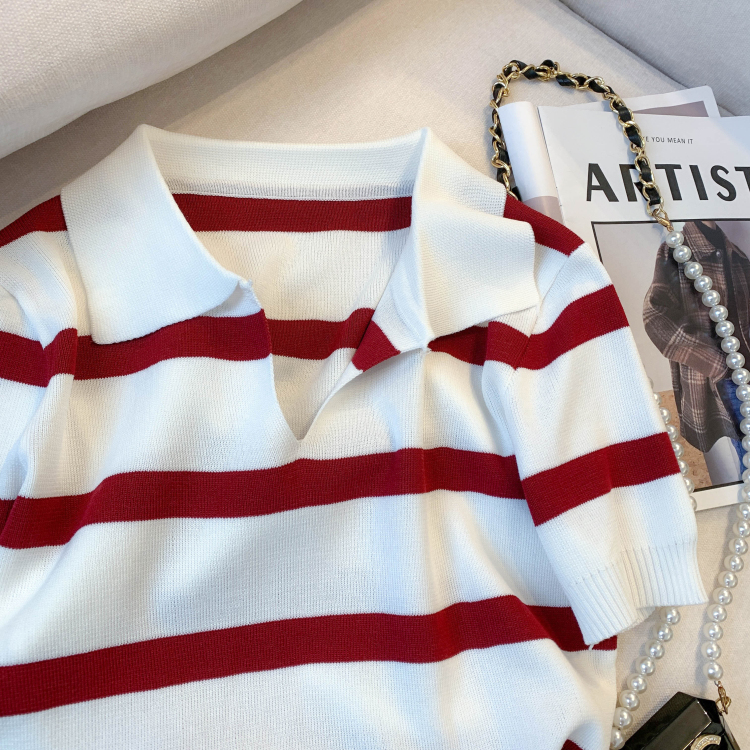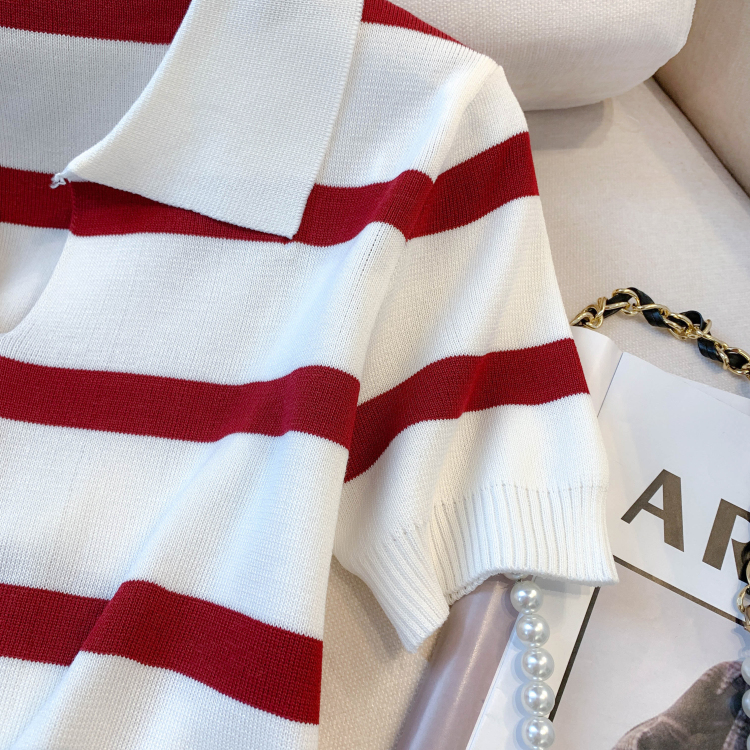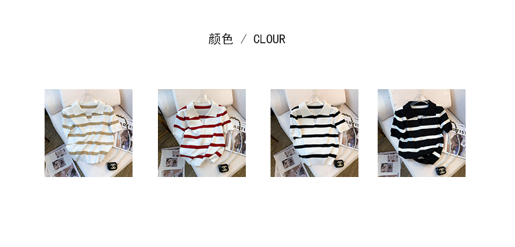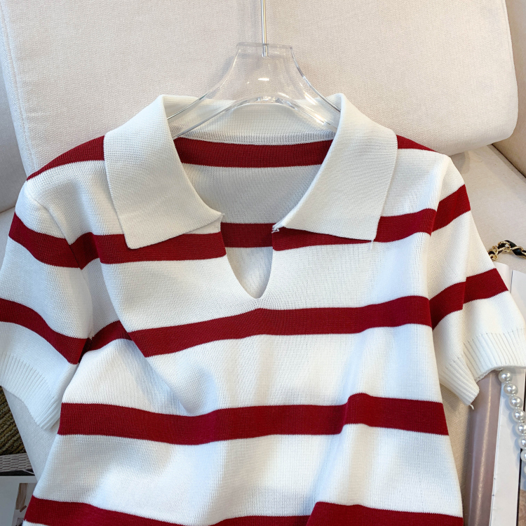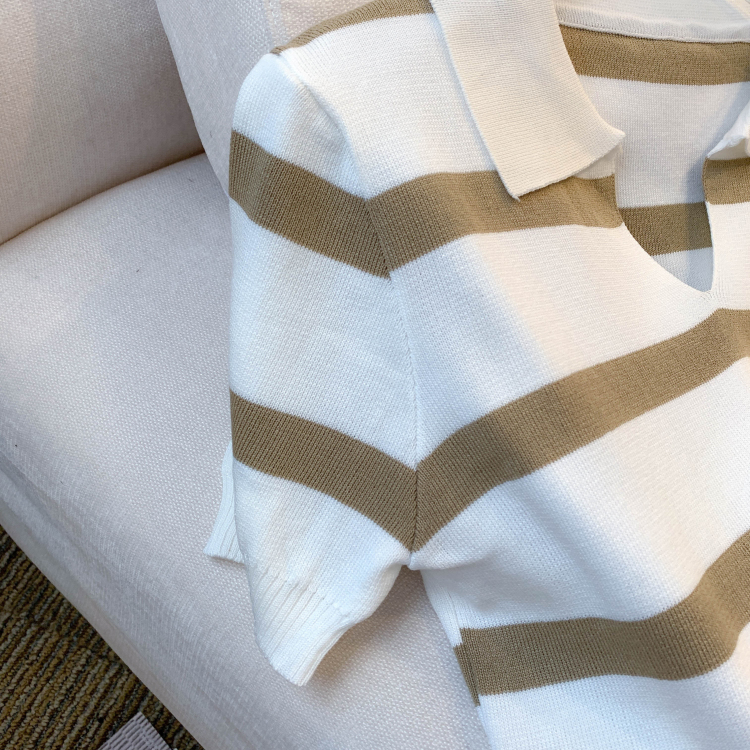 실사 대 물품 2026 여름 새로운 디자인 센스 무지개 스트라이프 POLO 칼라 티셔츠 얇은 스타일 얼음 실크 니트 여성