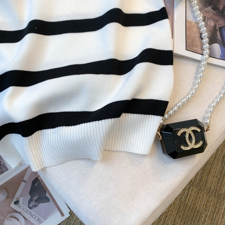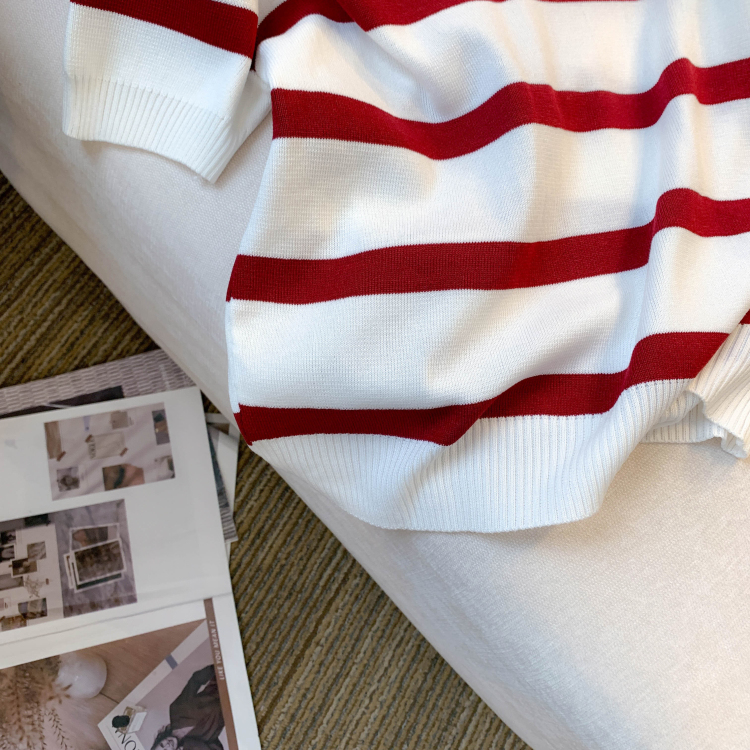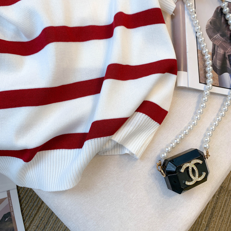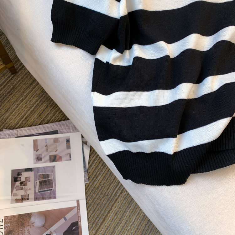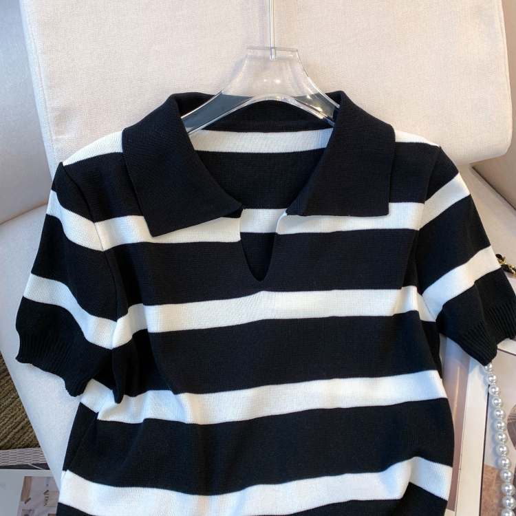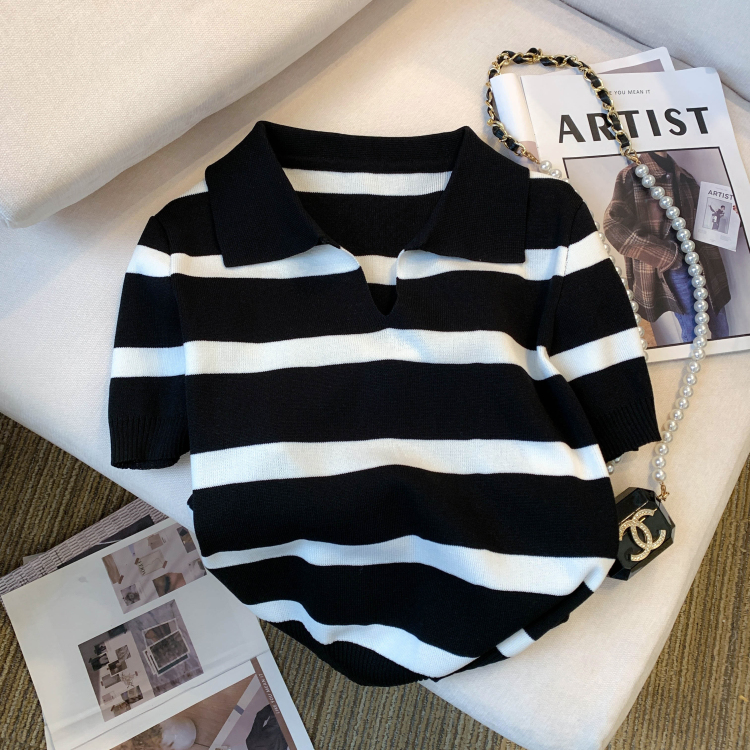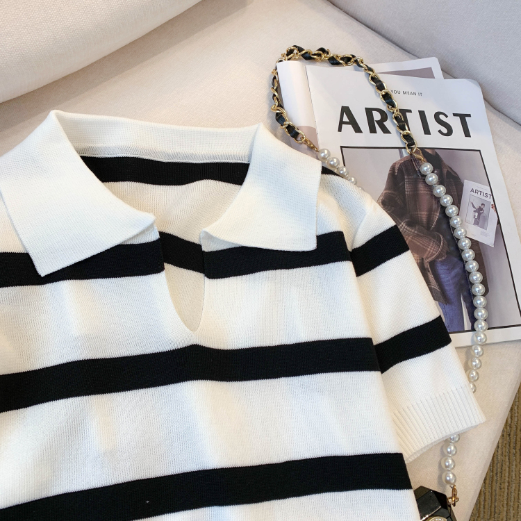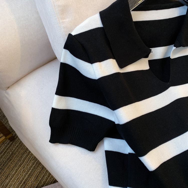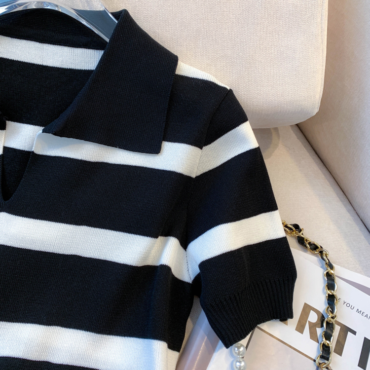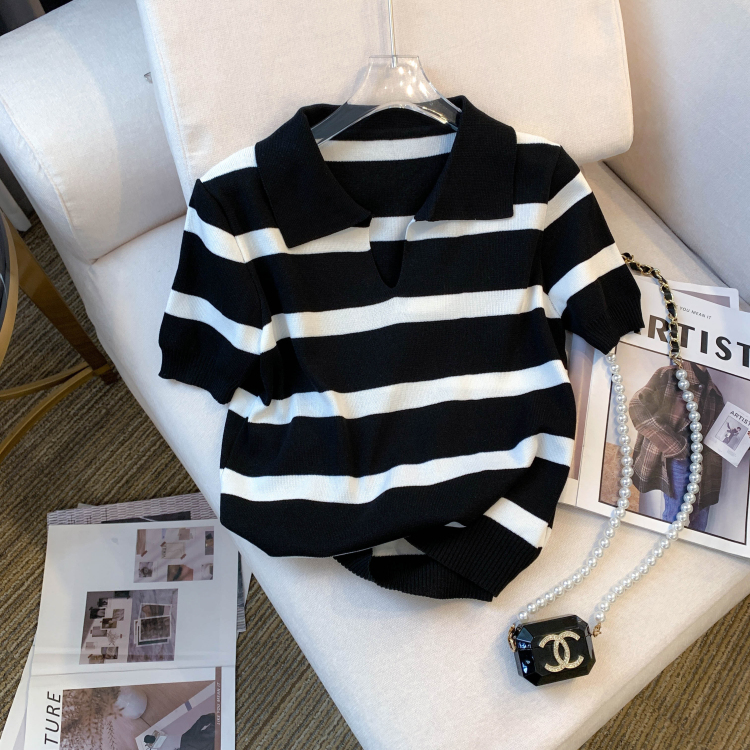 실사 대 물품 2026 여름 새로운 디자인 센스 스트라이프 하프 오픈 가디건 반팔 맨위 티셔츠 얼음 실크 니트 스웨터 여성