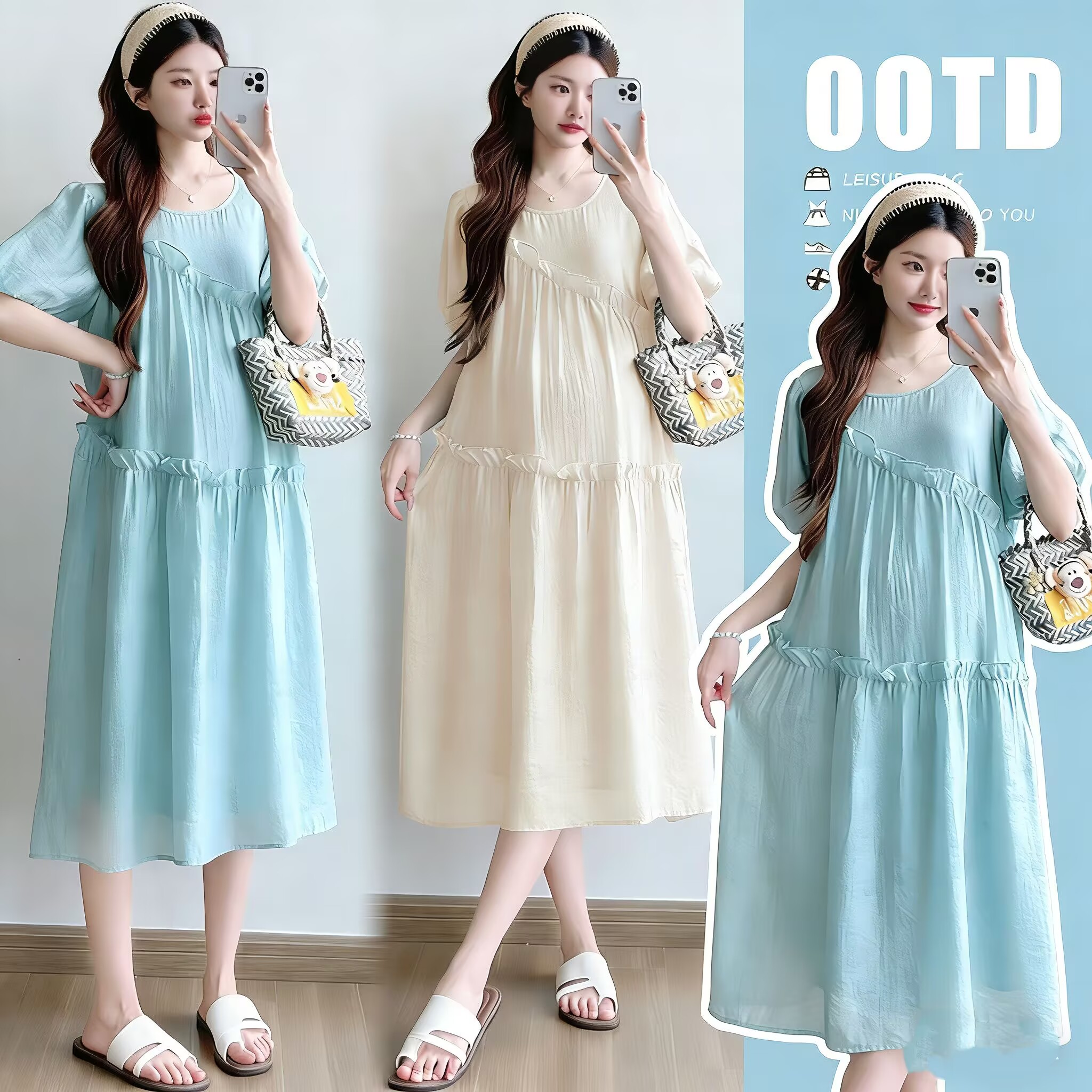 실사 2026 여름 새로운 출산 착용 캐주얼 다용도 부드러운 루즈핏 출근 출퇴근 임산부 드레스
