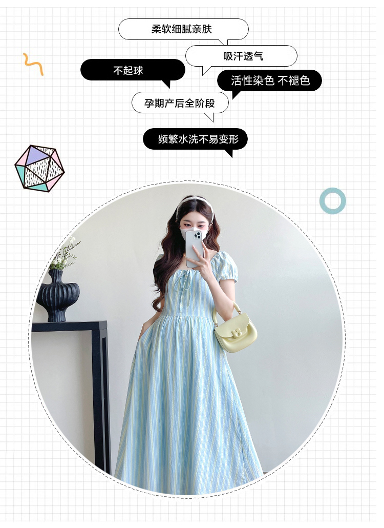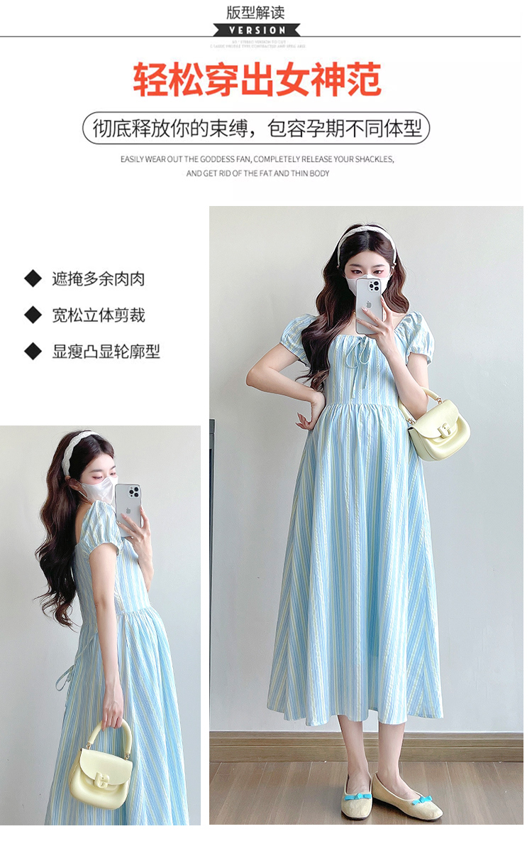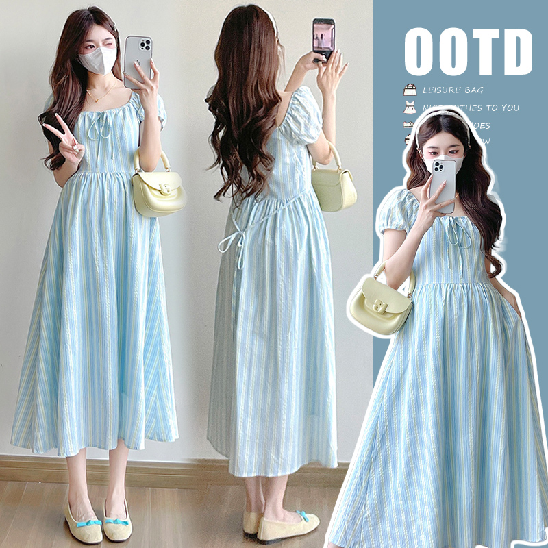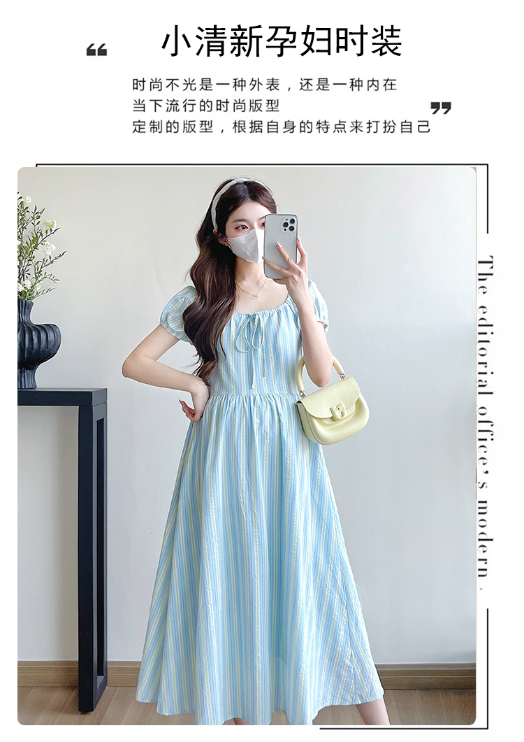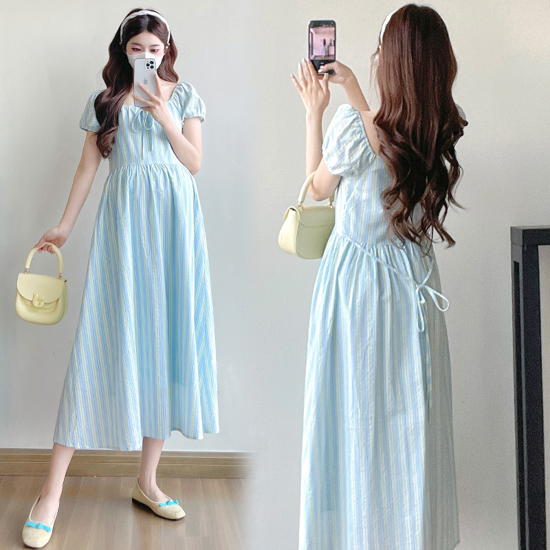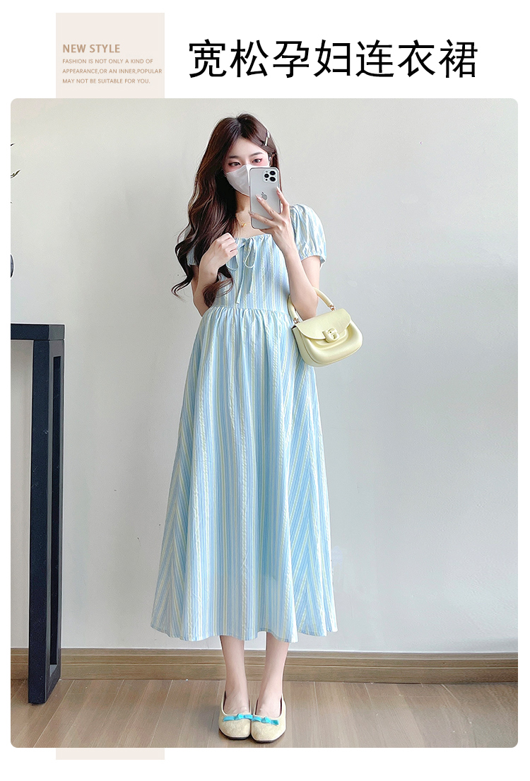 2026 여름 새로운 출산 착용 낭만주의 캐주얼 레이스업 허리 수축 롱 스커트 루즈핏 임산부 드레스