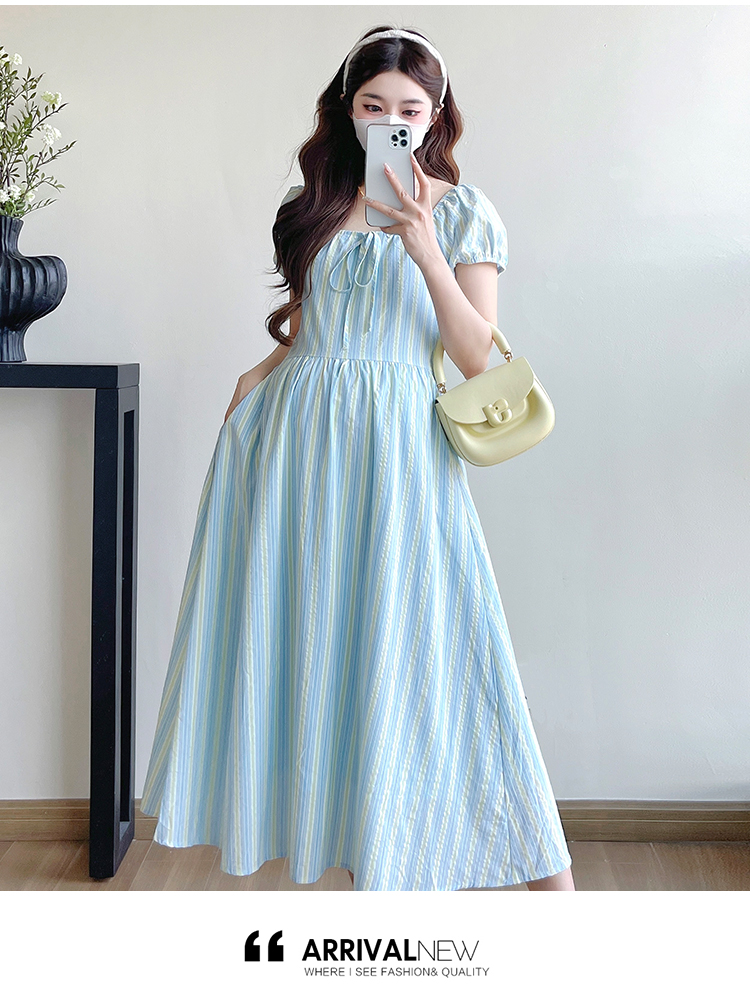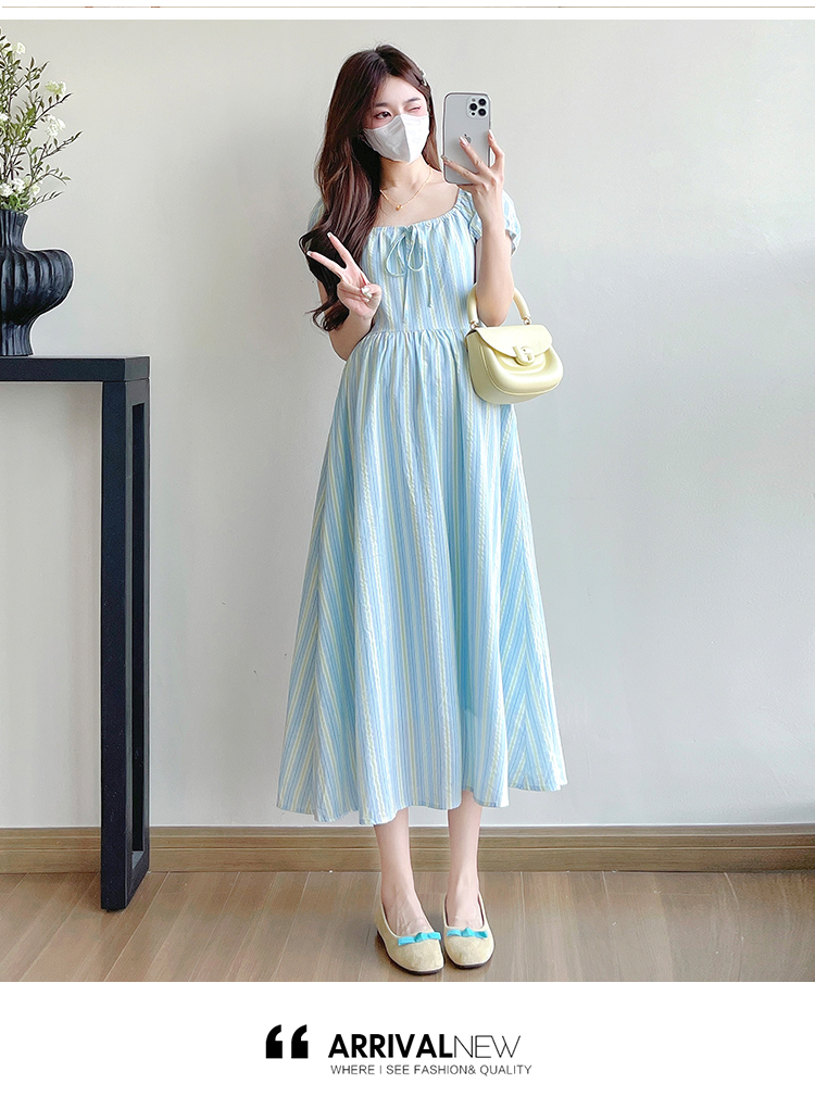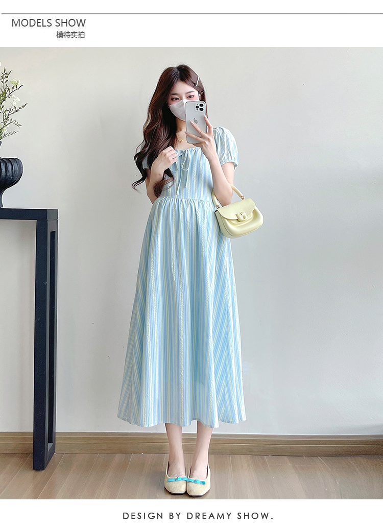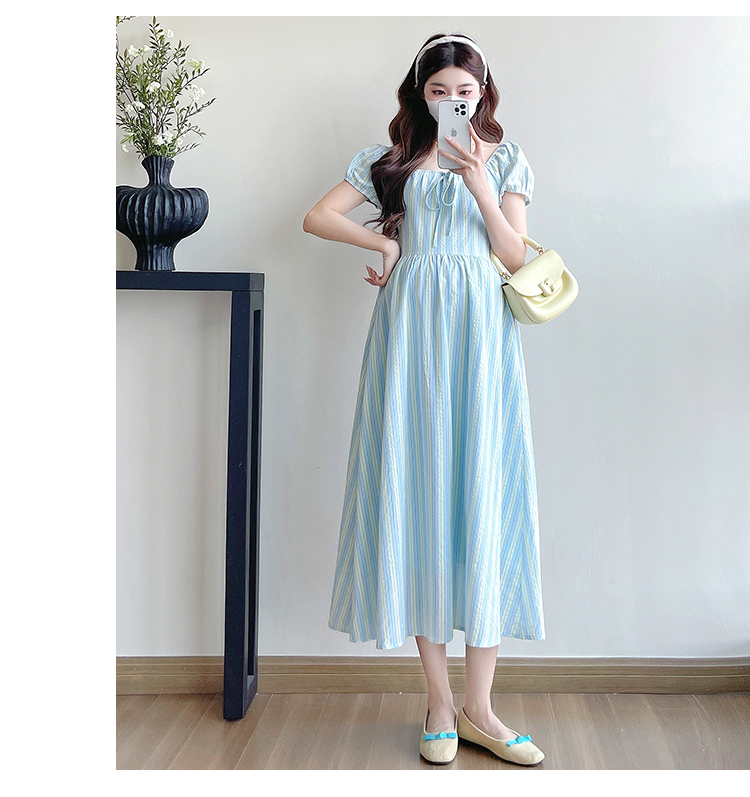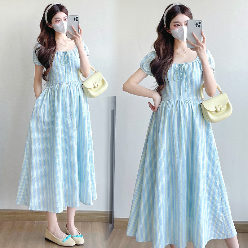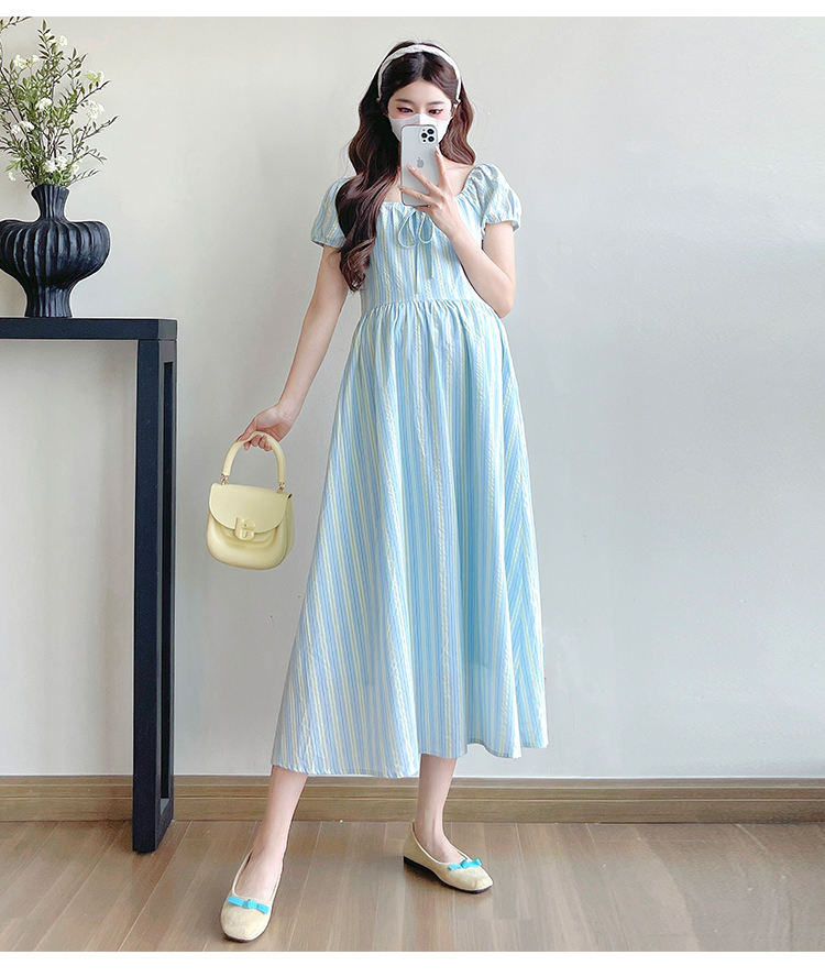 2026 여름 새로운 출산 착용 낭만주의 캐주얼 레이스업 허리 수축 롱 스커트 루즈핏 임산부 드레스