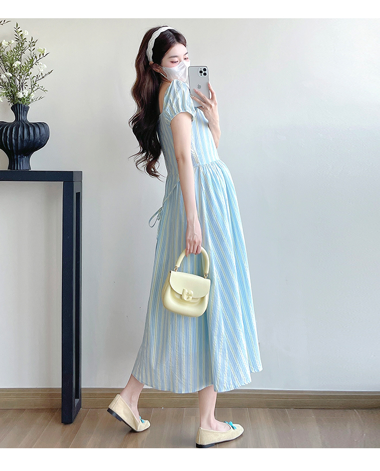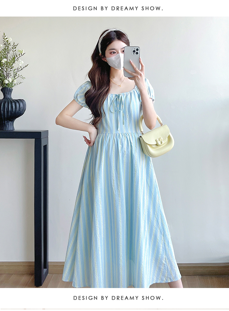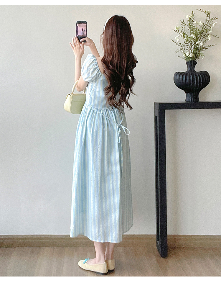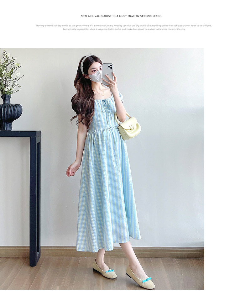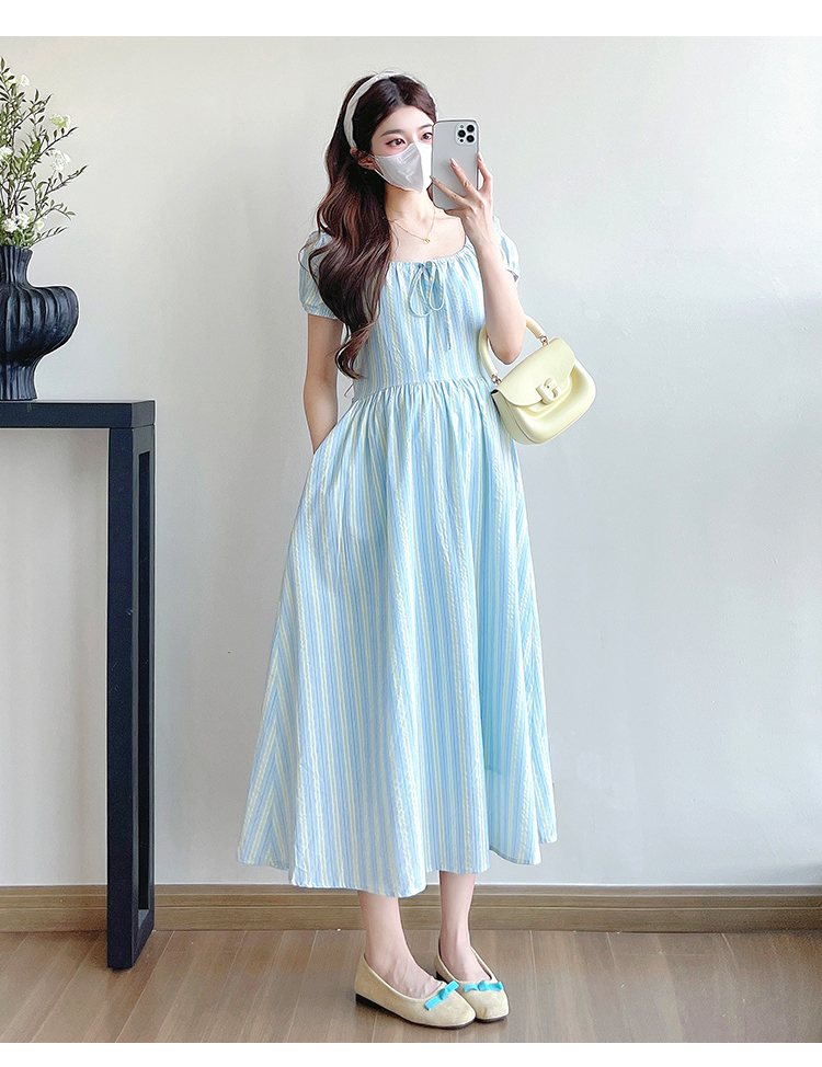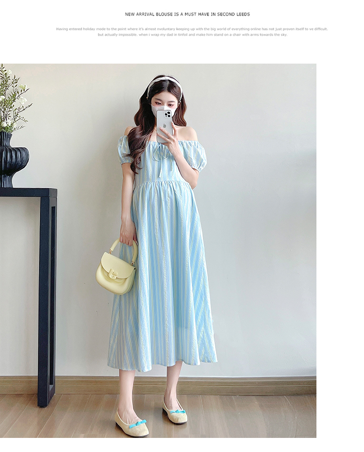 2026 여름 새로운 출산 착용 낭만주의 캐주얼 레이스업 허리 수축 롱 스커트 루즈핏 임산부 드레스