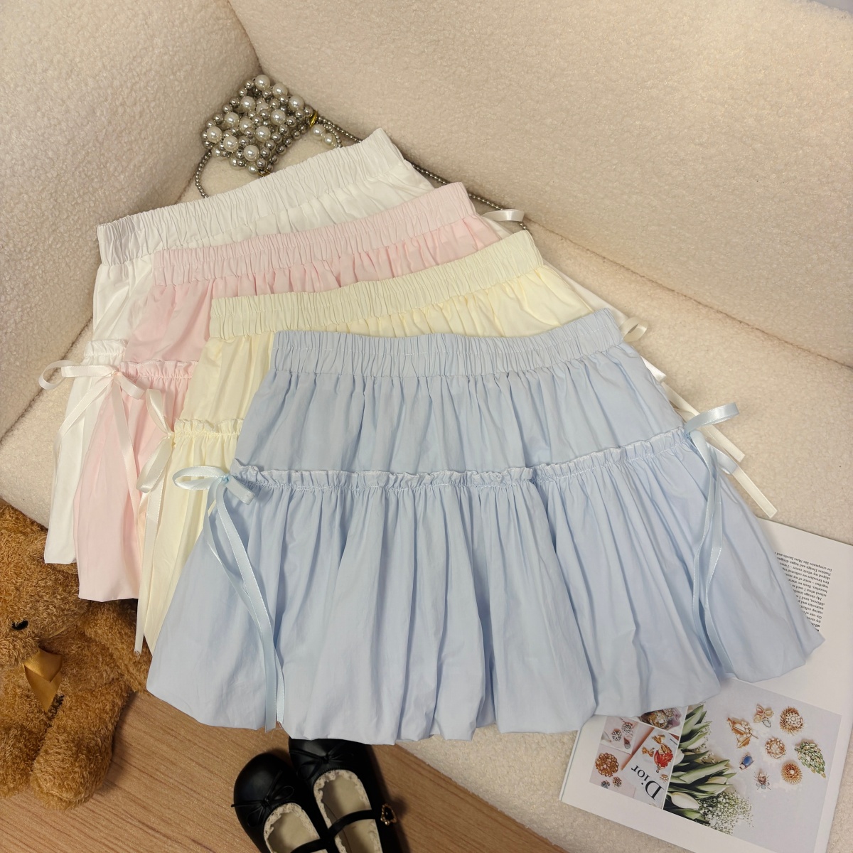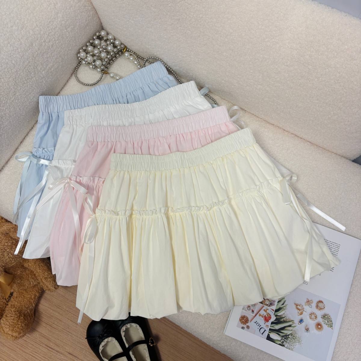 실사 여름 새로운 한 부서 소녀 반신 스커트 나비 넥타이 달콤함 한 마디 미니 스커트 꽃밭 랜턴 치마