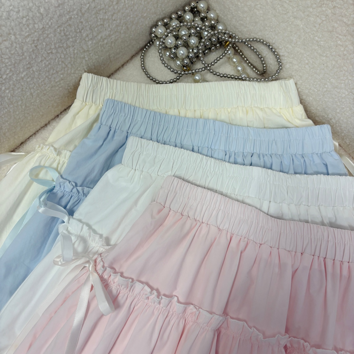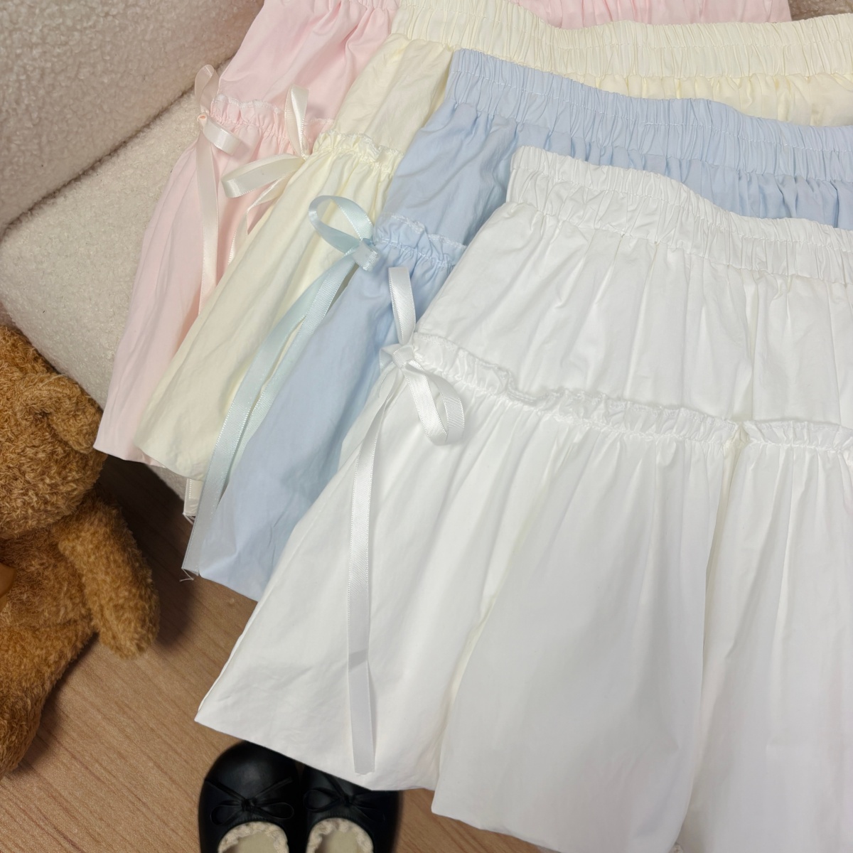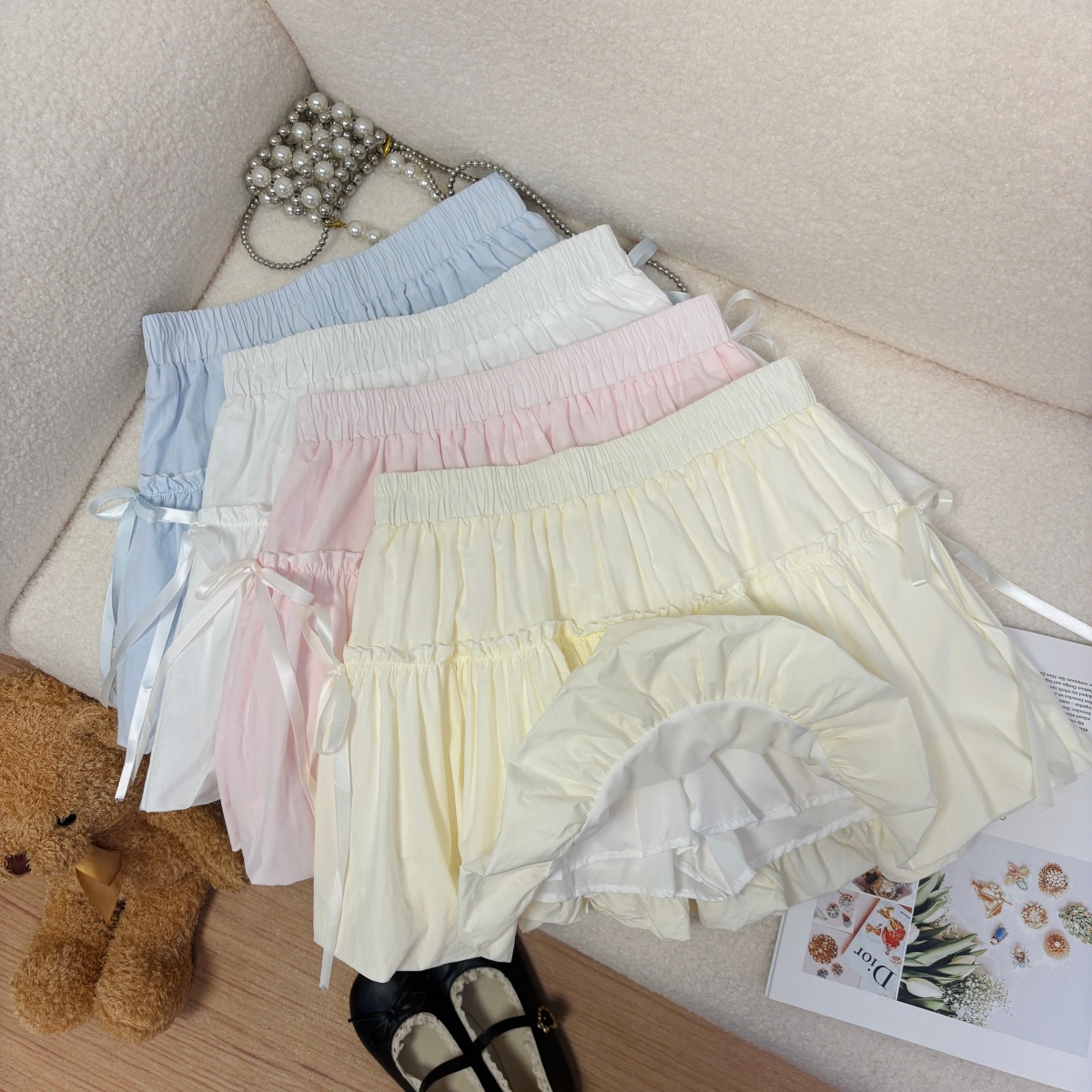 실사 여름 새로운 2026 한 부서 크림 반신 스커트 프릴 케이크 드레스 달콤함 연령 감소 면 미니 스커트