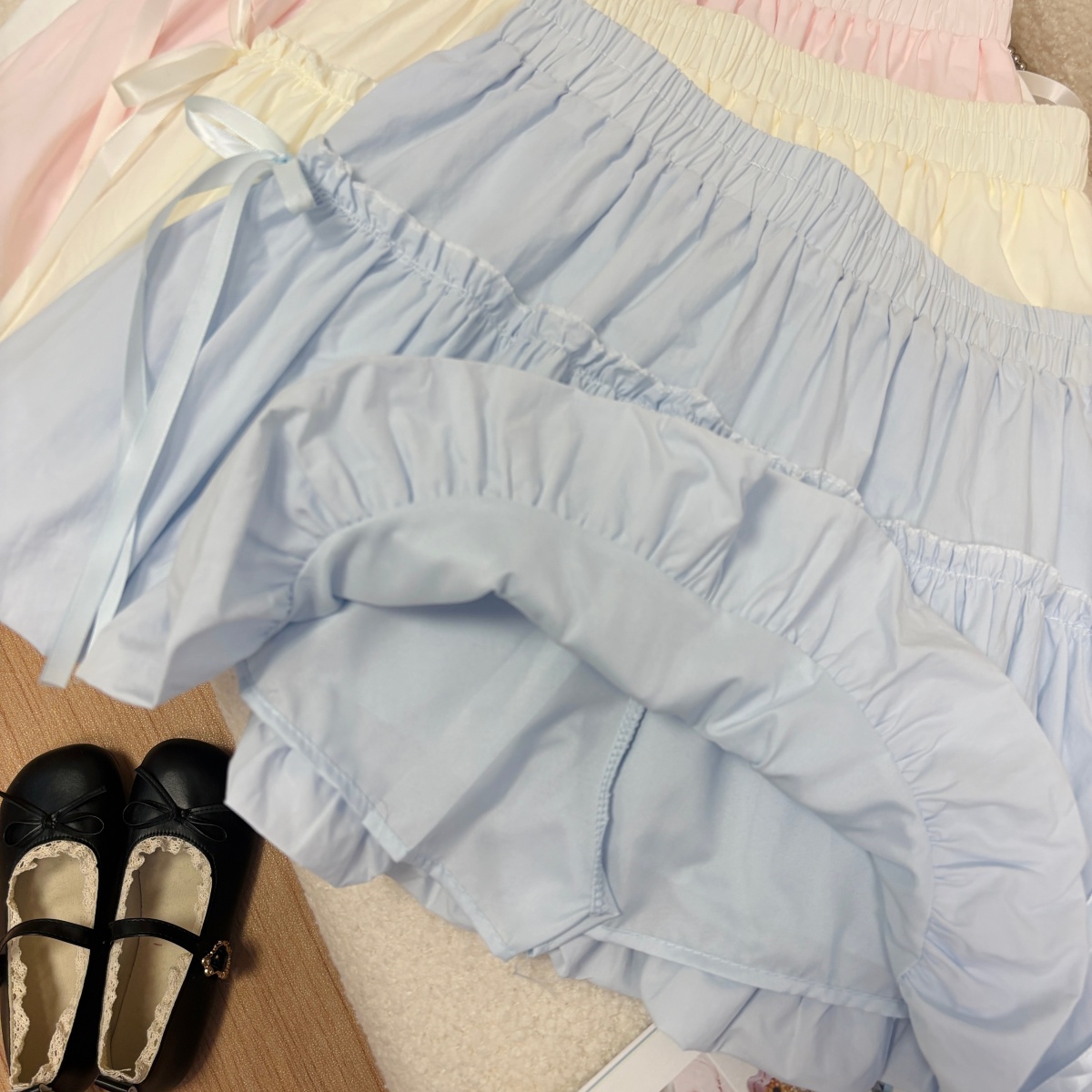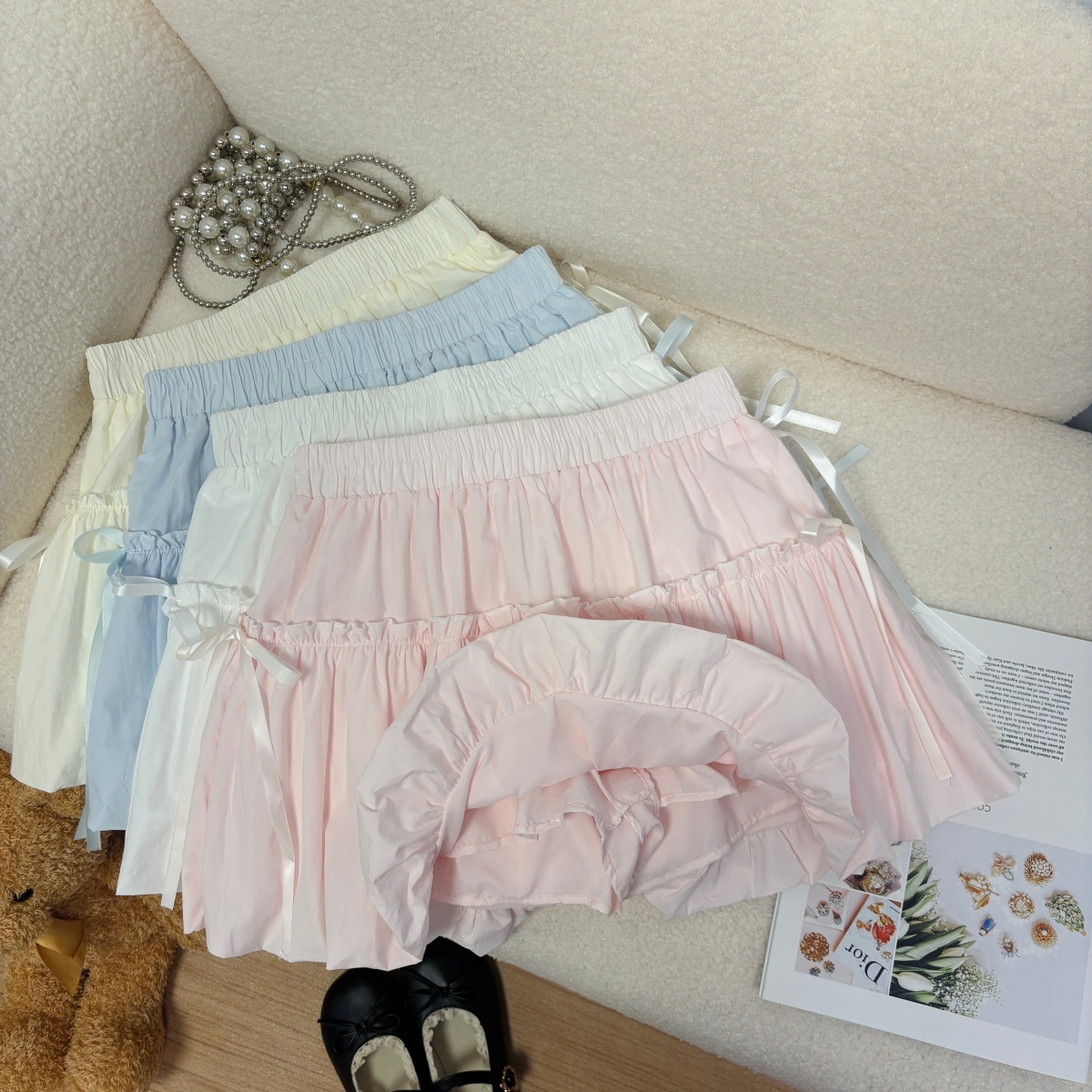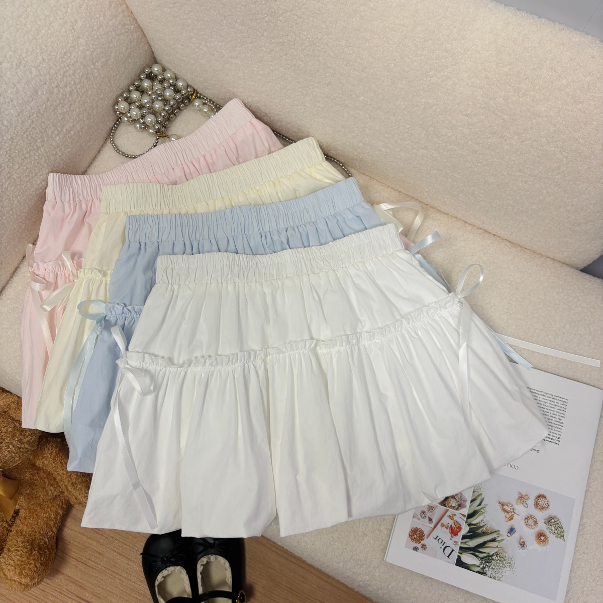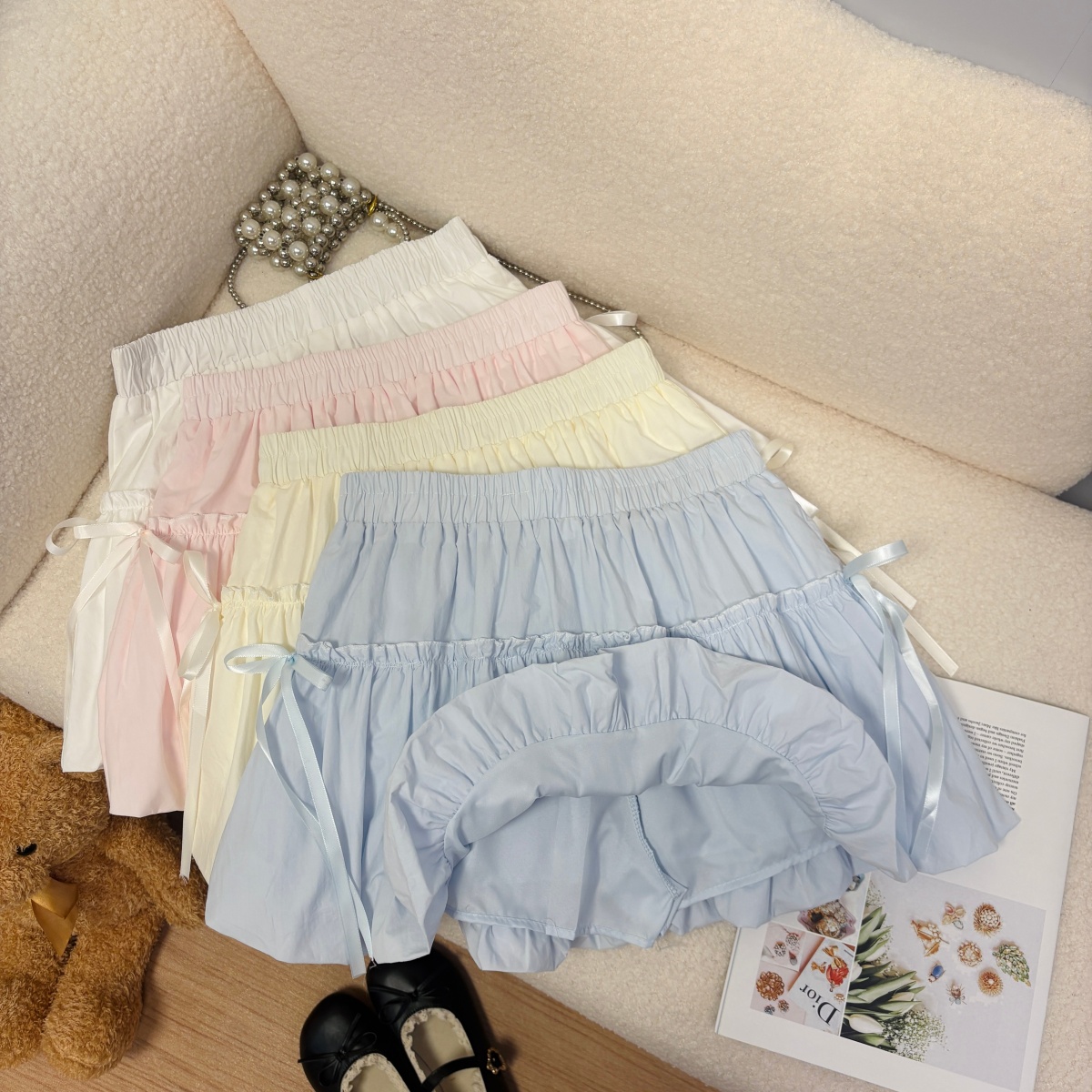 실사 여름 새로운 2026 한 부서 크림 반신 스커트 프릴 케이크 드레스 달콤함 연령 감소 면 미니 스커트