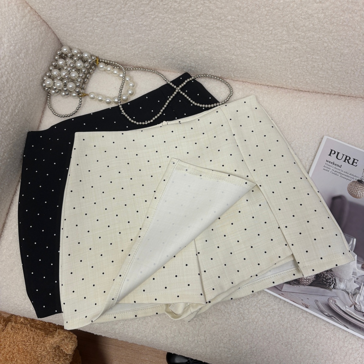 실사 봄 여름 새로운 한 부서 다용도 도트 무늬 측면 트임 정장 반신 스커트 작은 키 바지 미니멀리즘 미니 스커트