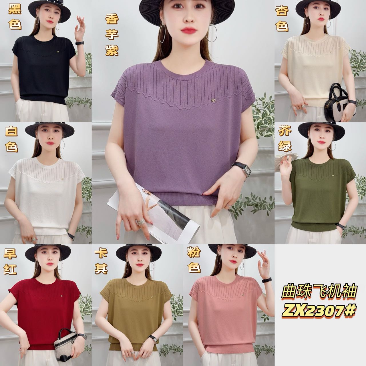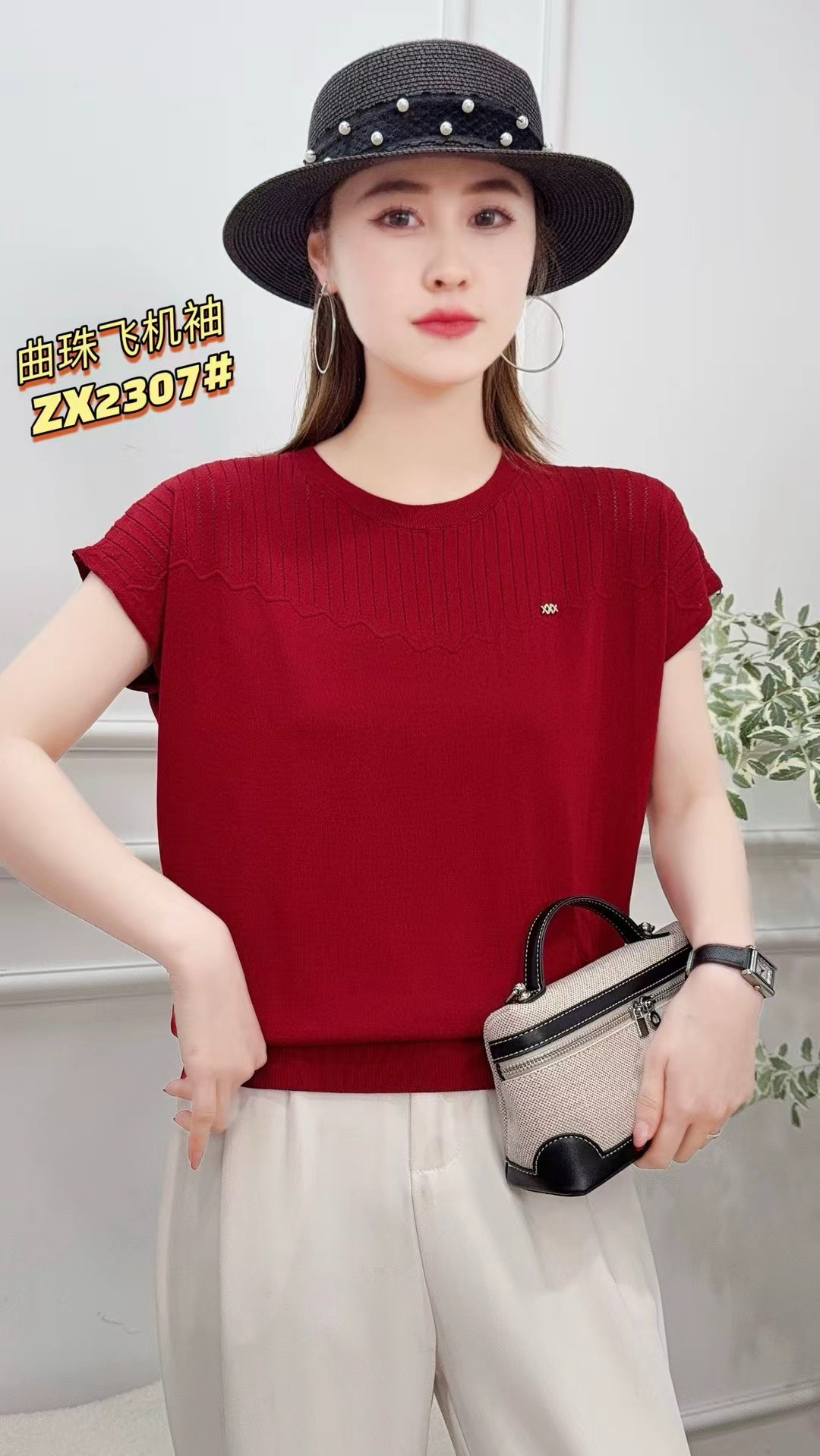 라운드 넥 새로운 빅 사이즈 여성 의류 루즈핏 니트 반팔 티셔츠 지방 mm 다용도 슬림해 보이는 맨위