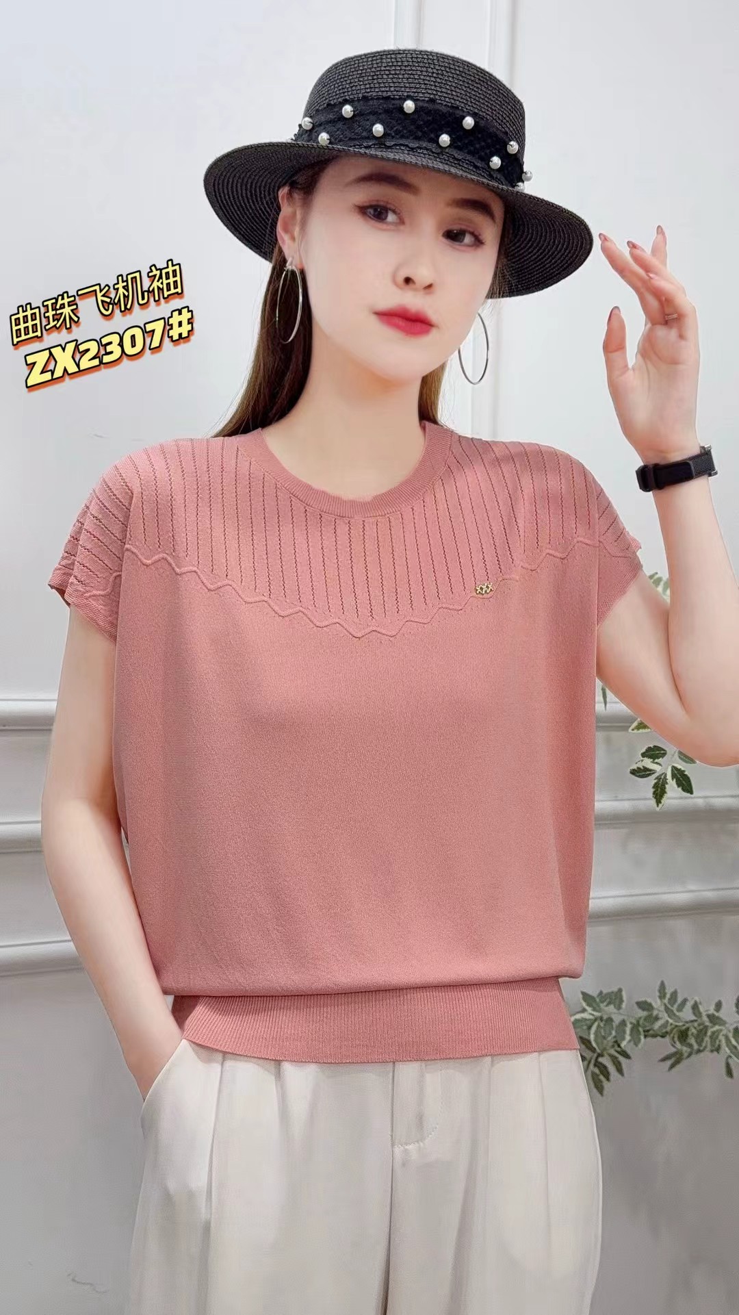 배색 반팔 니트 티셔츠 여성 여름 새로운 라운드 넥 디자인 센스 작은 대중 홀로우 아웃 몸매 가꾸기 쇼트 스타일 핫걸 맨위