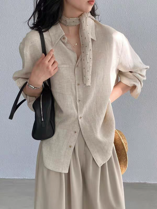 한 부서 파란색 아마 자외선 차단 여성 셔츠 봄 여름 긴팔 루즈핏 펌프 로프 디자인 센스 작은 대중 쇼트 스타일 셔츠 맨위