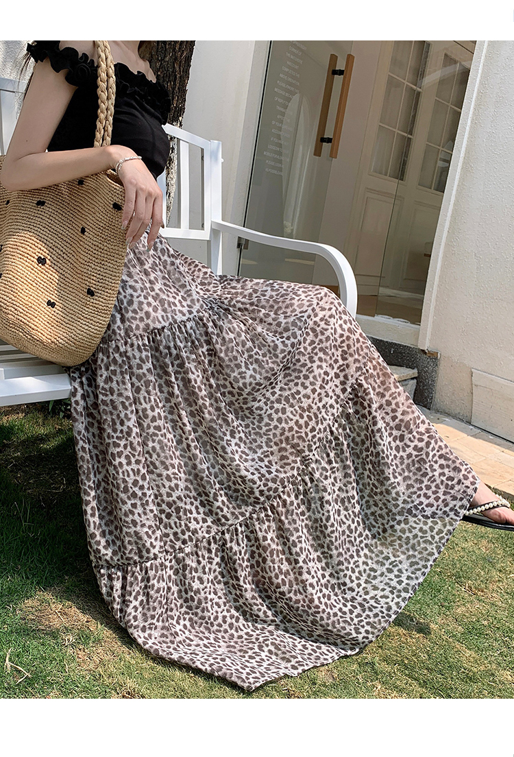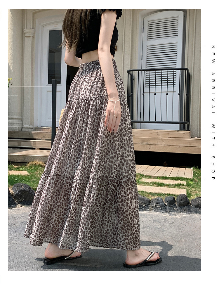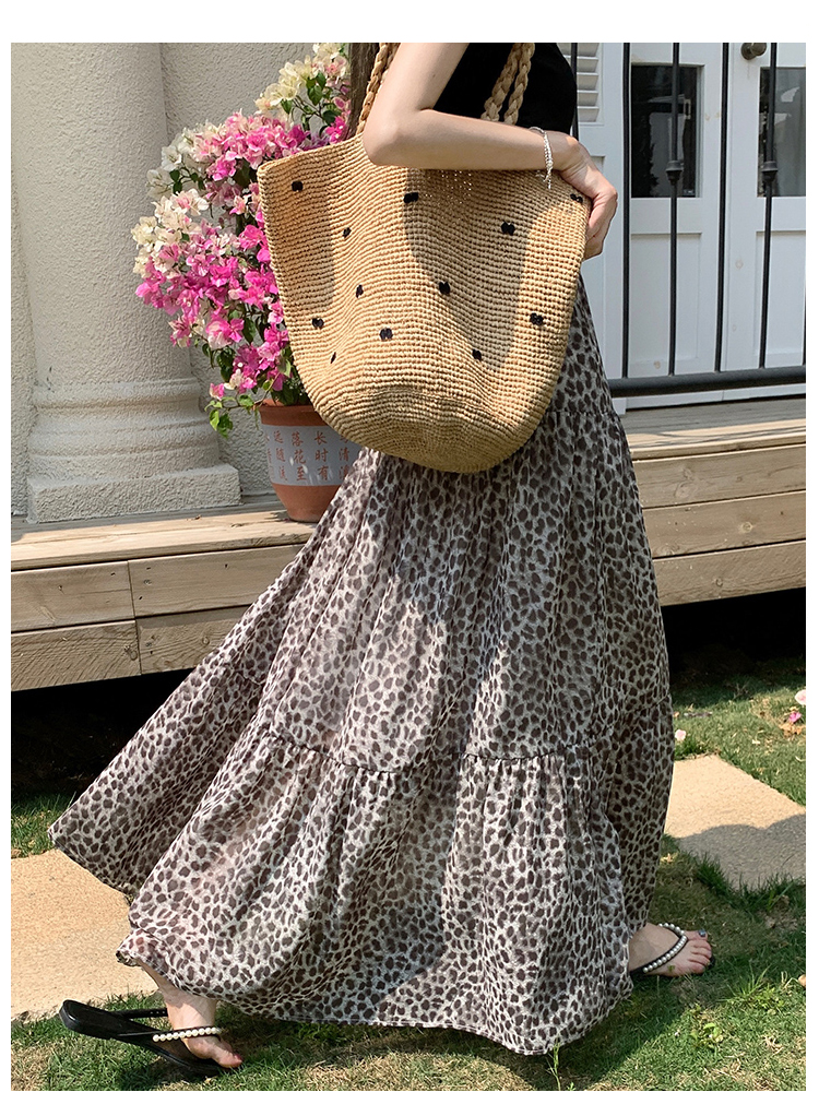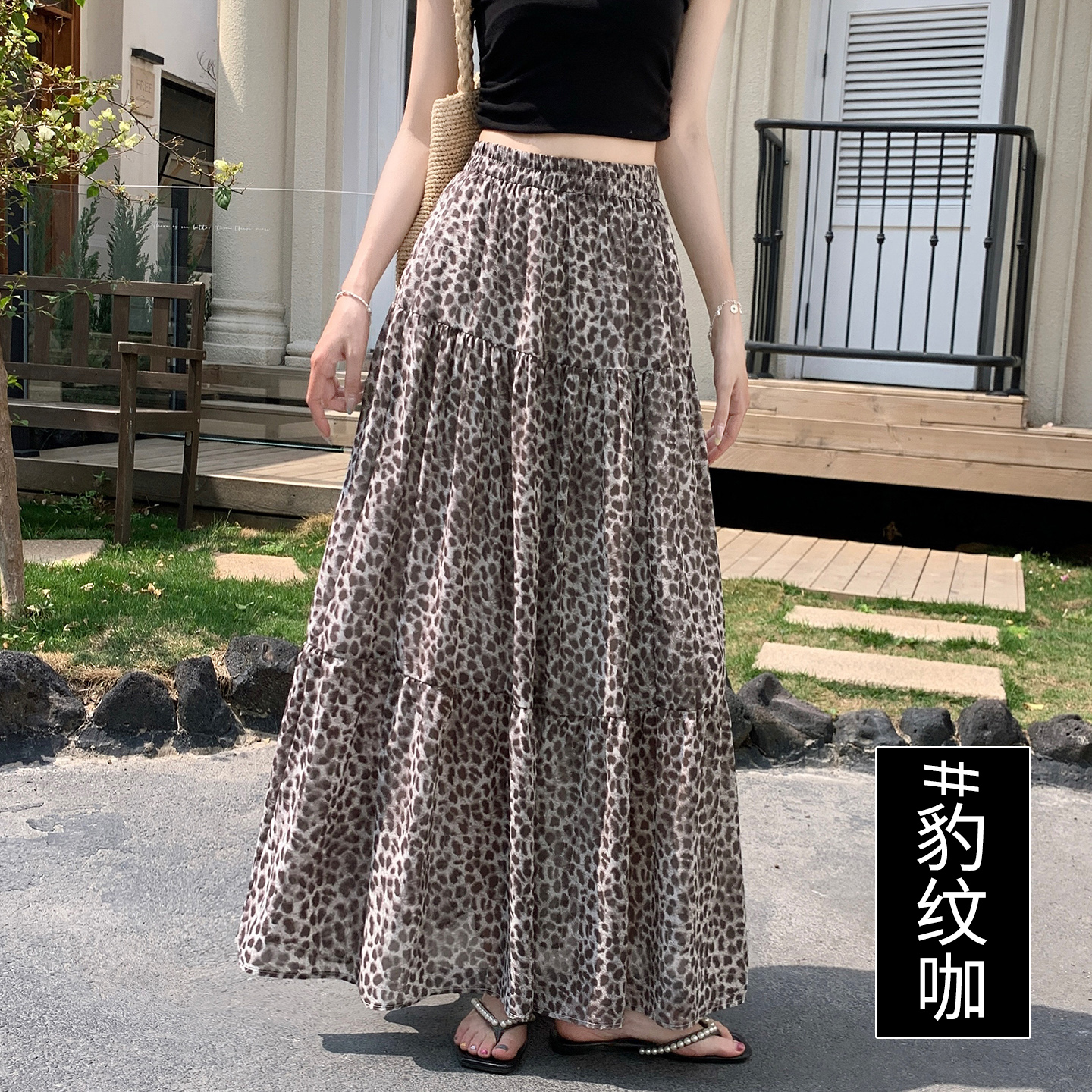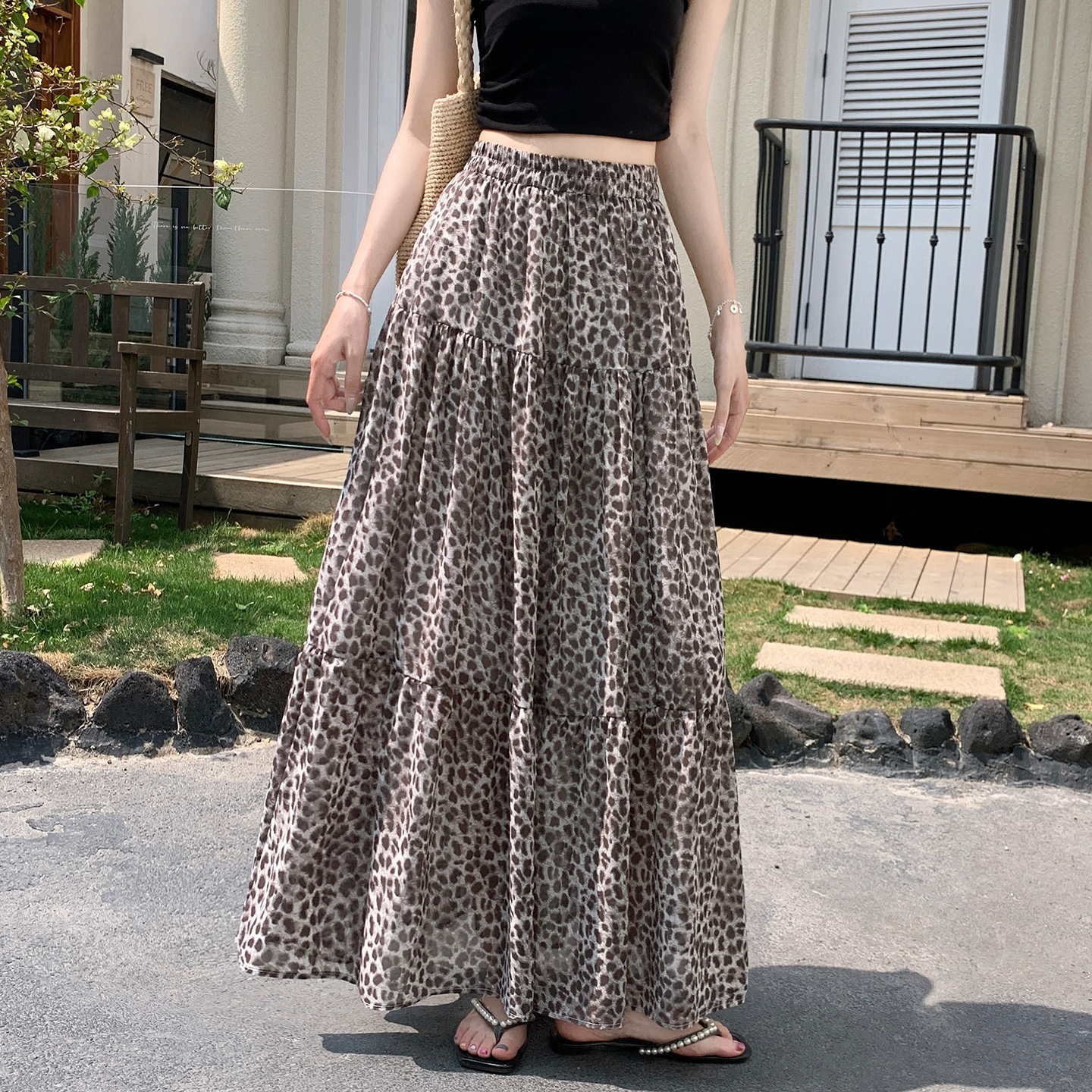 여름 새로운 고급 센스 레트로 레오파드 무늬 프린트 반신 스커트 여성 2026 새로운 프랑스식 큰 진자 케이크 드레스 롱 스커트