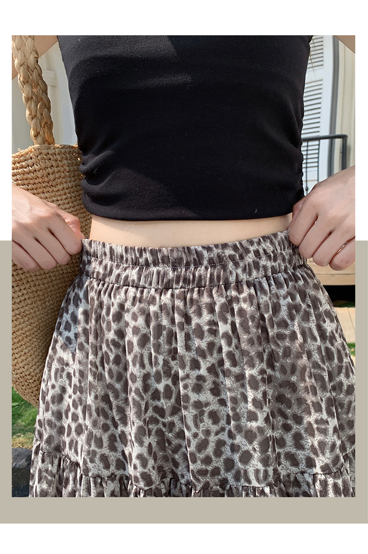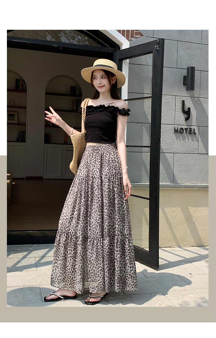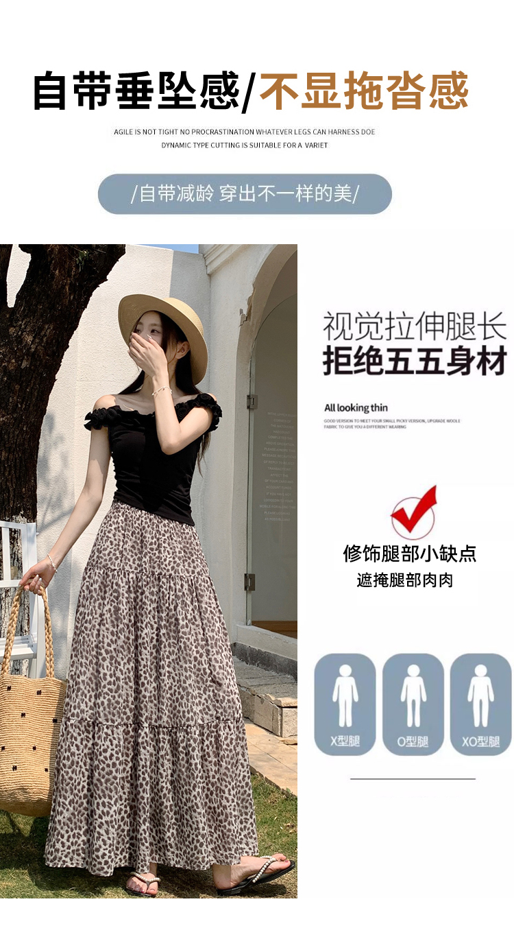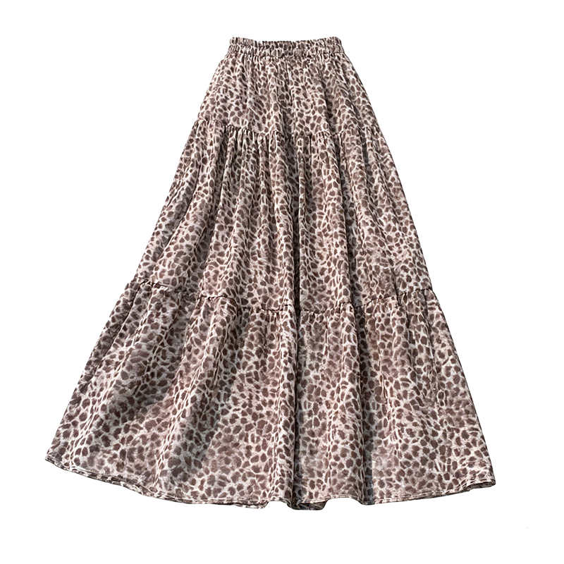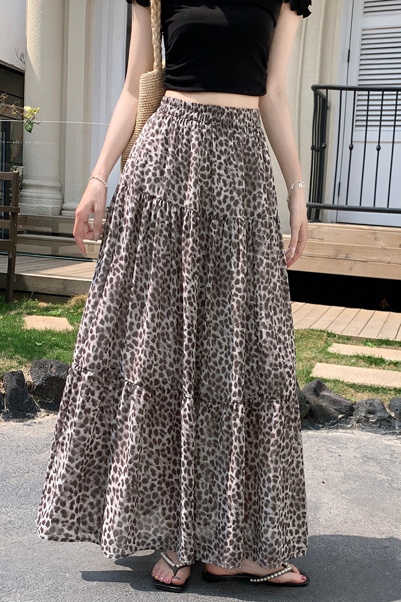 여름 새로운 고급 센스 레트로 레오파드 무늬 프린트 반신 스커트 여성 2026 새로운 프랑스식 큰 진자 케이크 드레스 롱 스커트