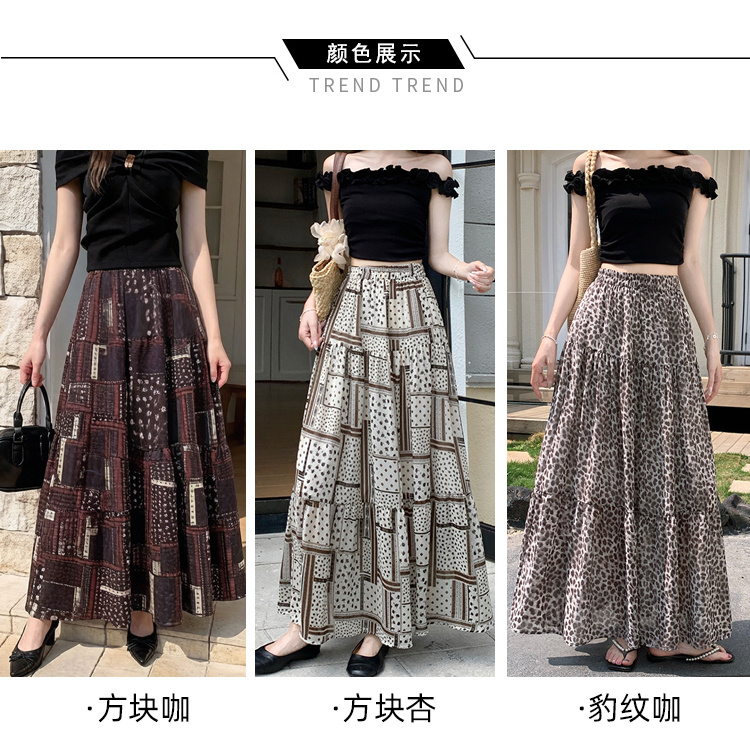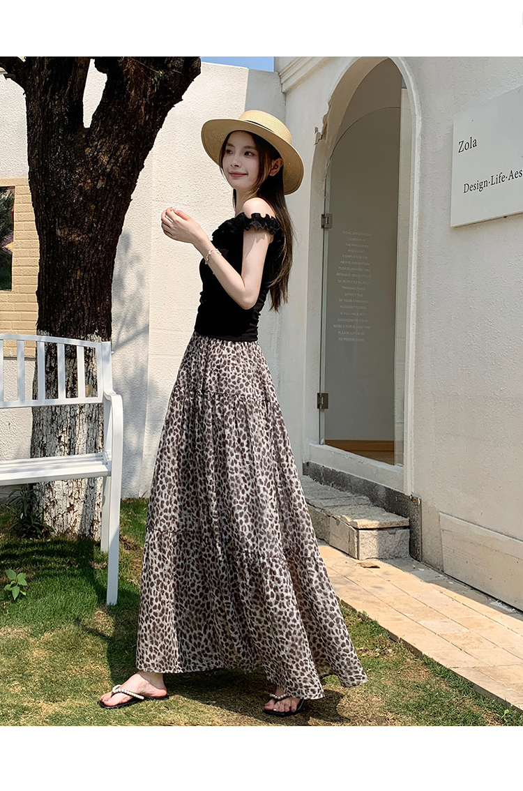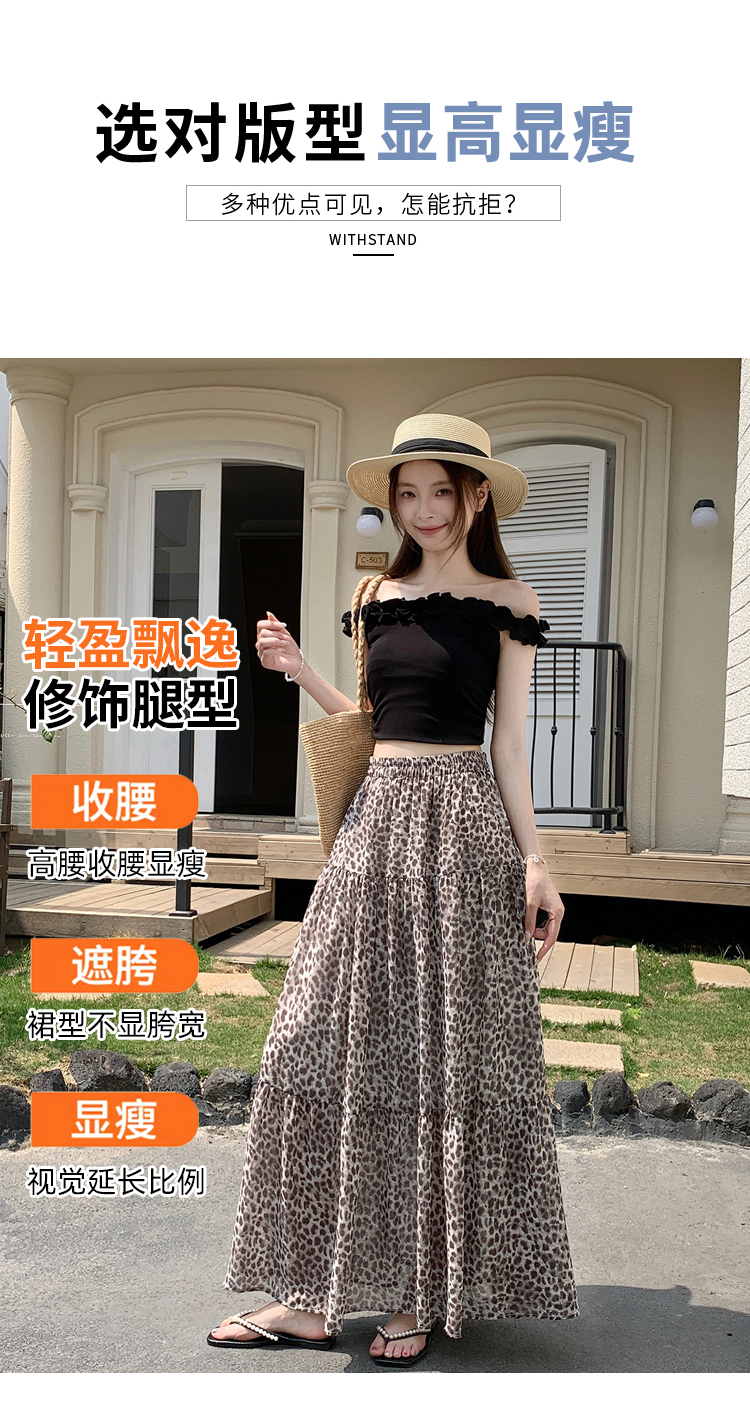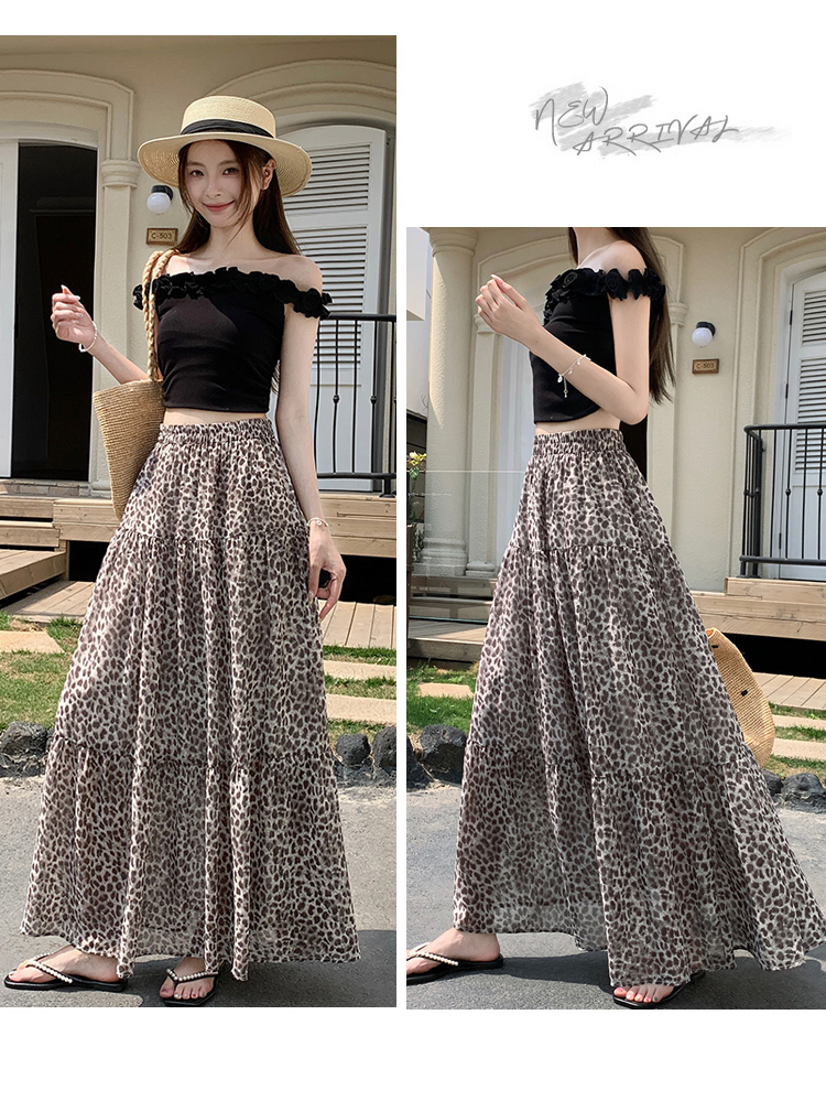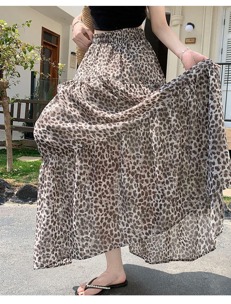 여름 새로운 고급 센스 레트로 레오파드 무늬 프린트 반신 스커트 여성 2026 새로운 프랑스식 큰 진자 케이크 드레스 롱 스커트