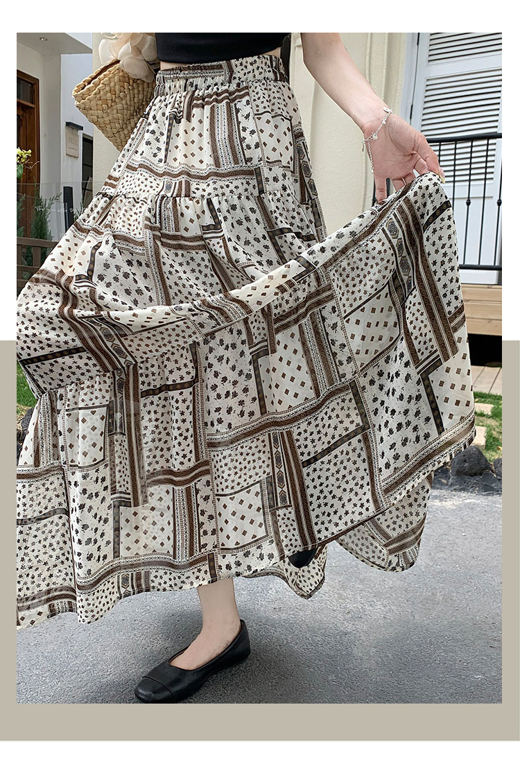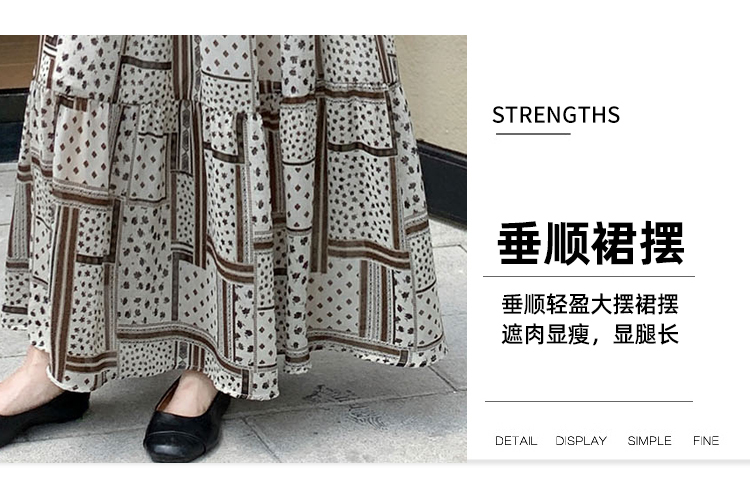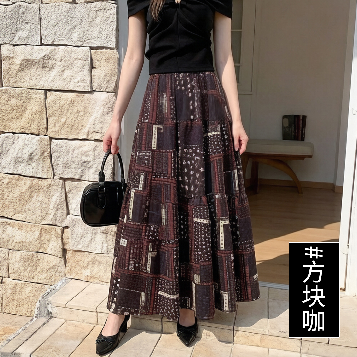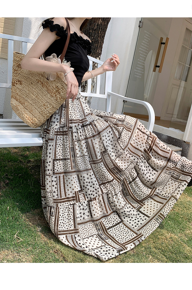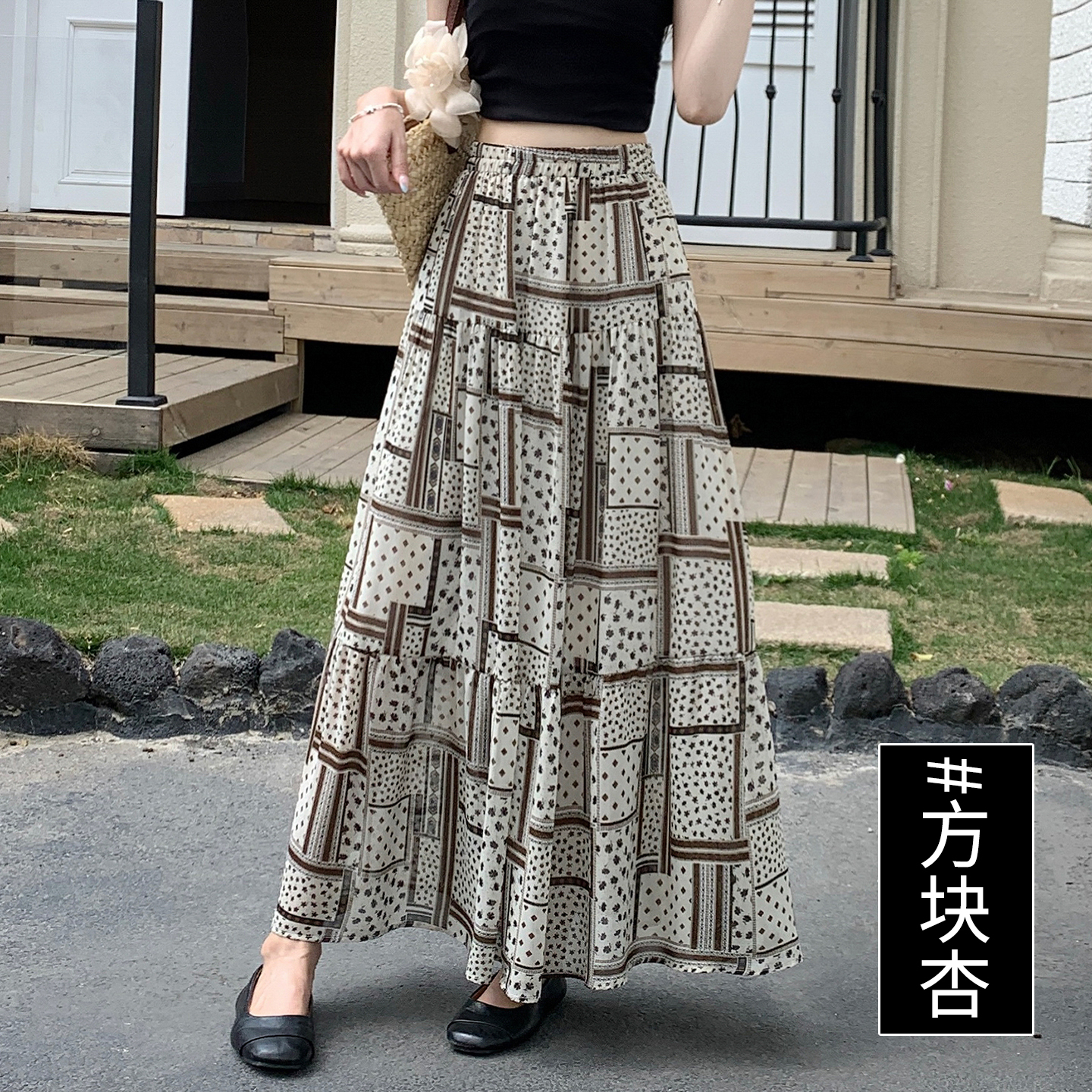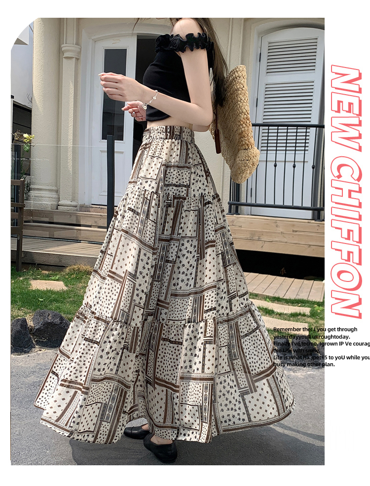 전원 바람 프린트 쉬폰 케이크 반신 스커트 여성 2026 봄 여름 새로운 프랑스식 레트로 큰 진자 롱 스커트 반 스커트