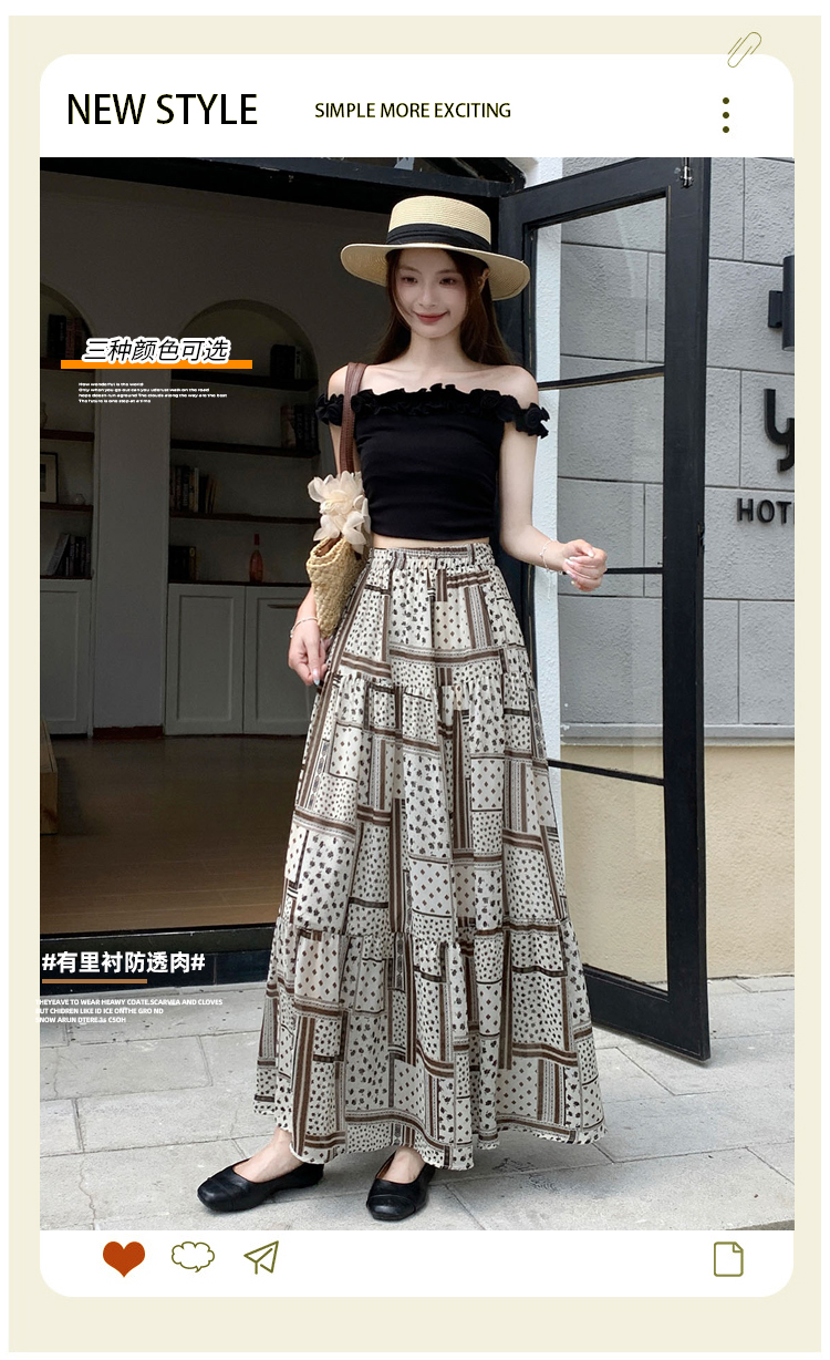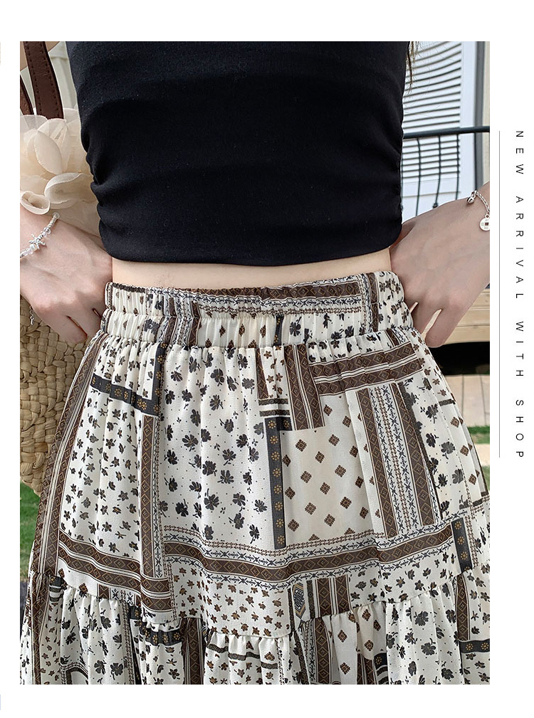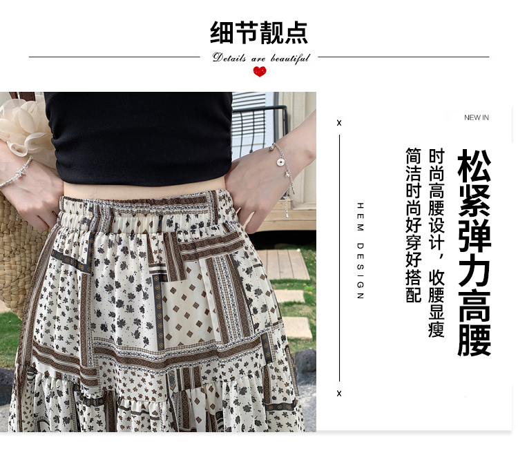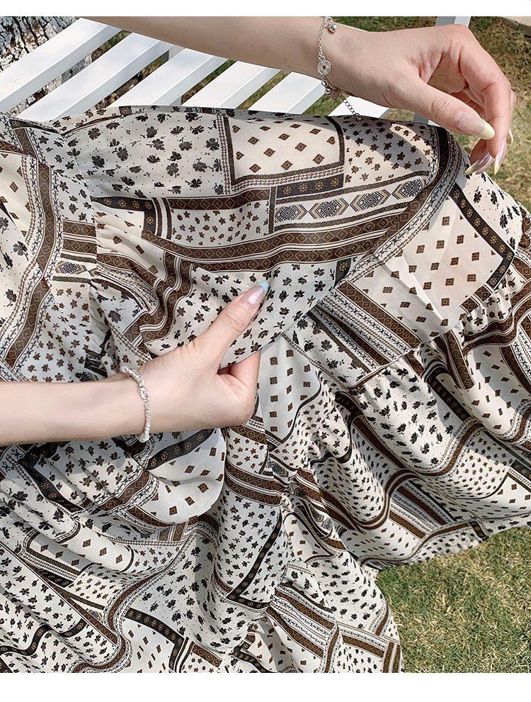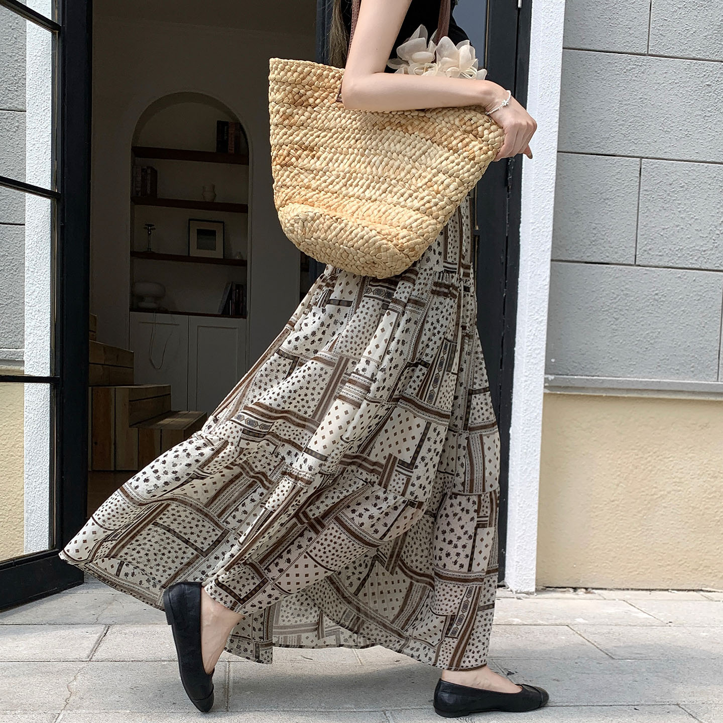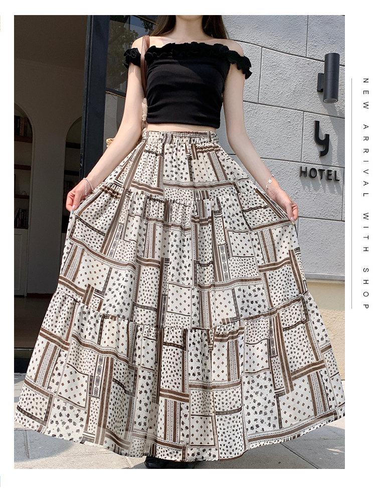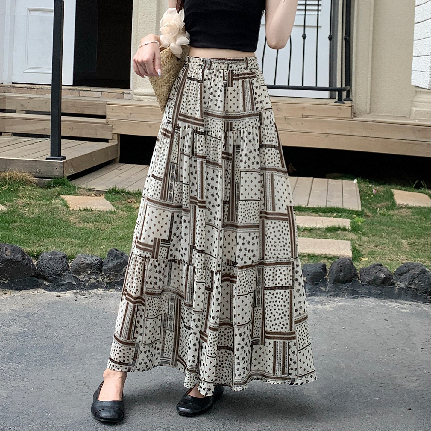 전원 바람 프린트 쉬폰 케이크 반신 스커트 여성 2026 봄 여름 새로운 프랑스식 레트로 큰 진자 롱 스커트 반 스커트