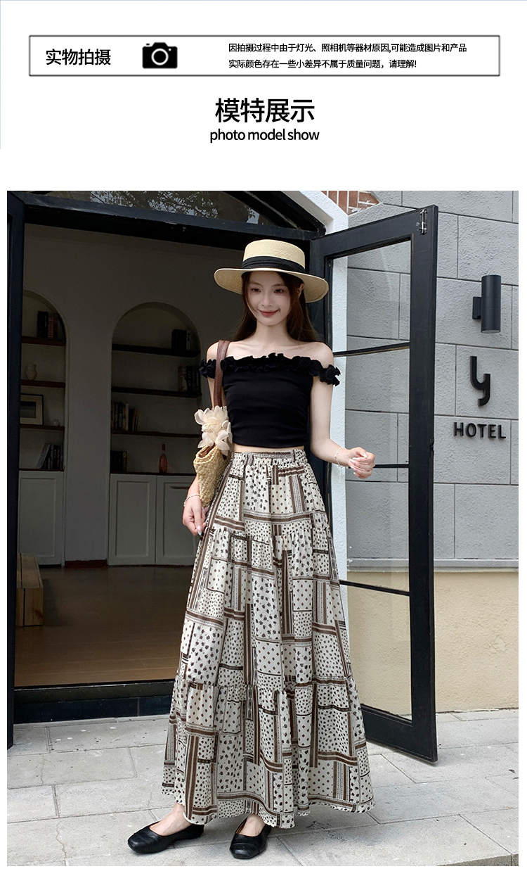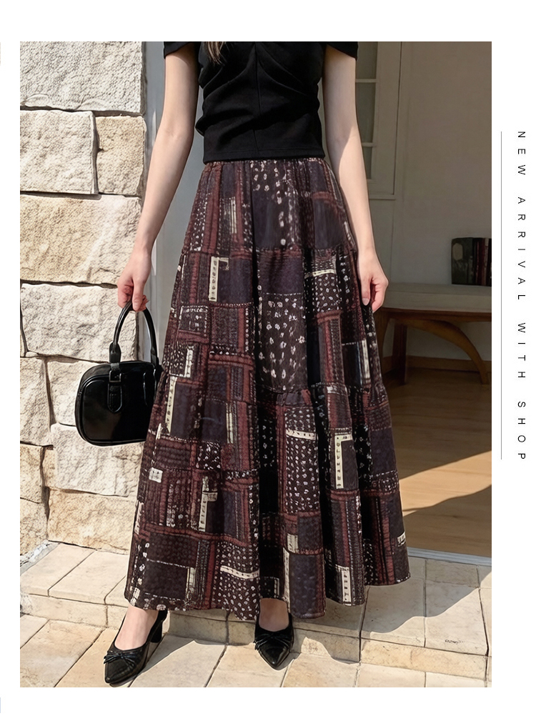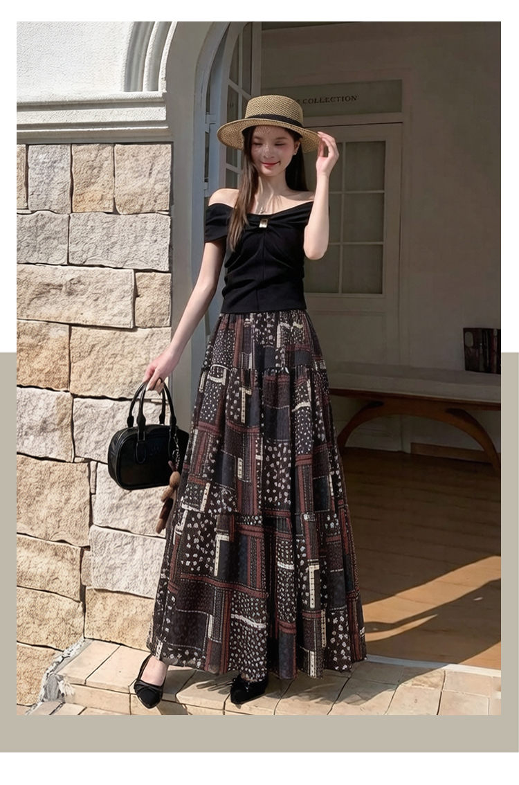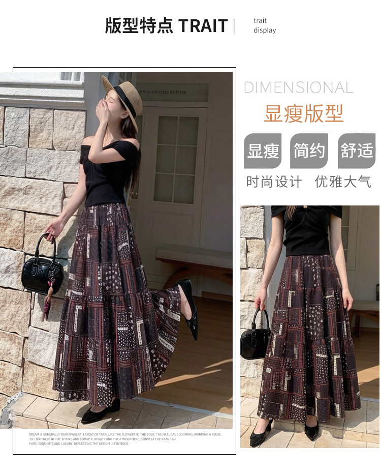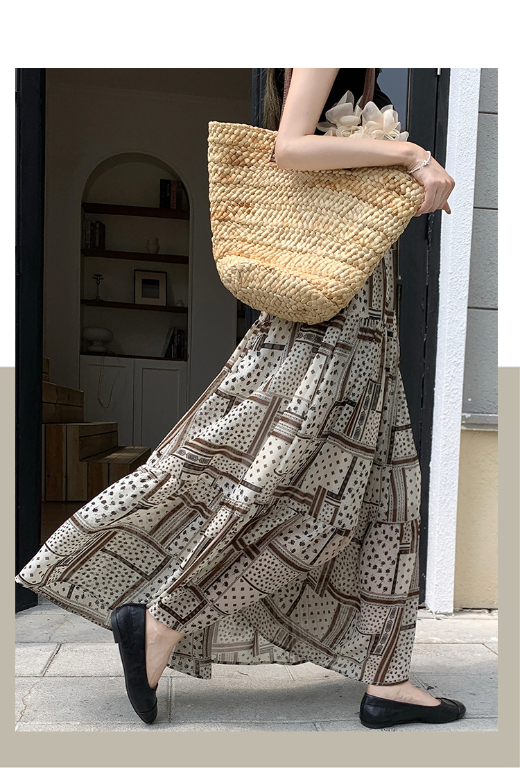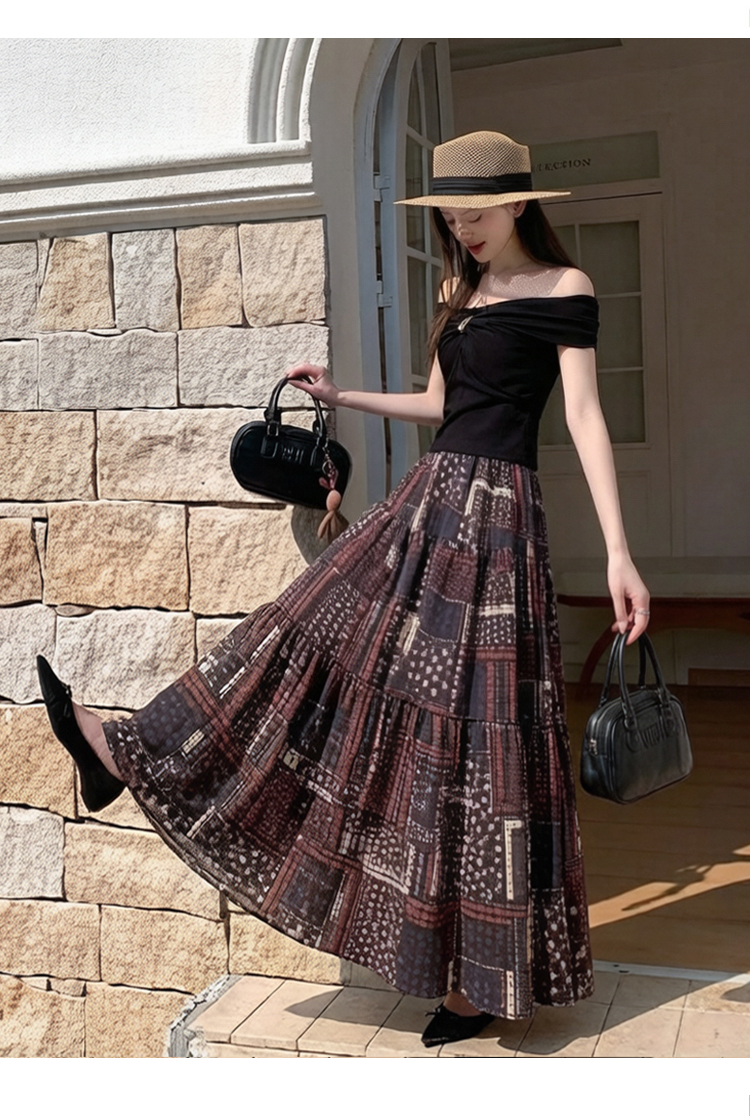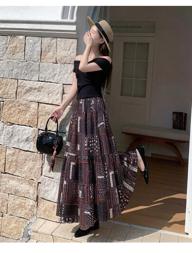 전원 바람 프린트 쉬폰 케이크 반신 스커트 여성 2026 봄 여름 새로운 프랑스식 레트로 큰 진자 롱 스커트 반 스커트