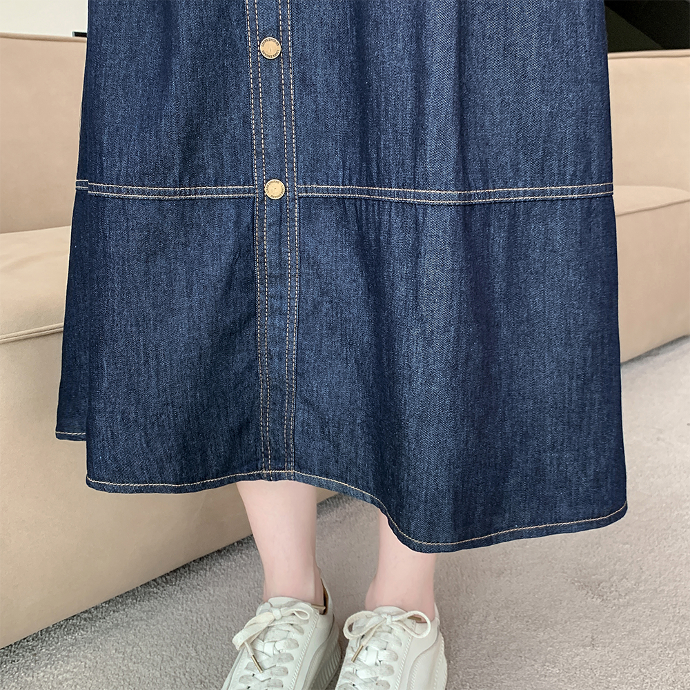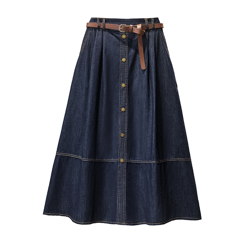 2026 봄 새로운 빅 사이즈 여성 의류 레트로 한 마디 데님 반신 스커트 하이웨이스트 슬림해 보이는 다용도 치마 여성