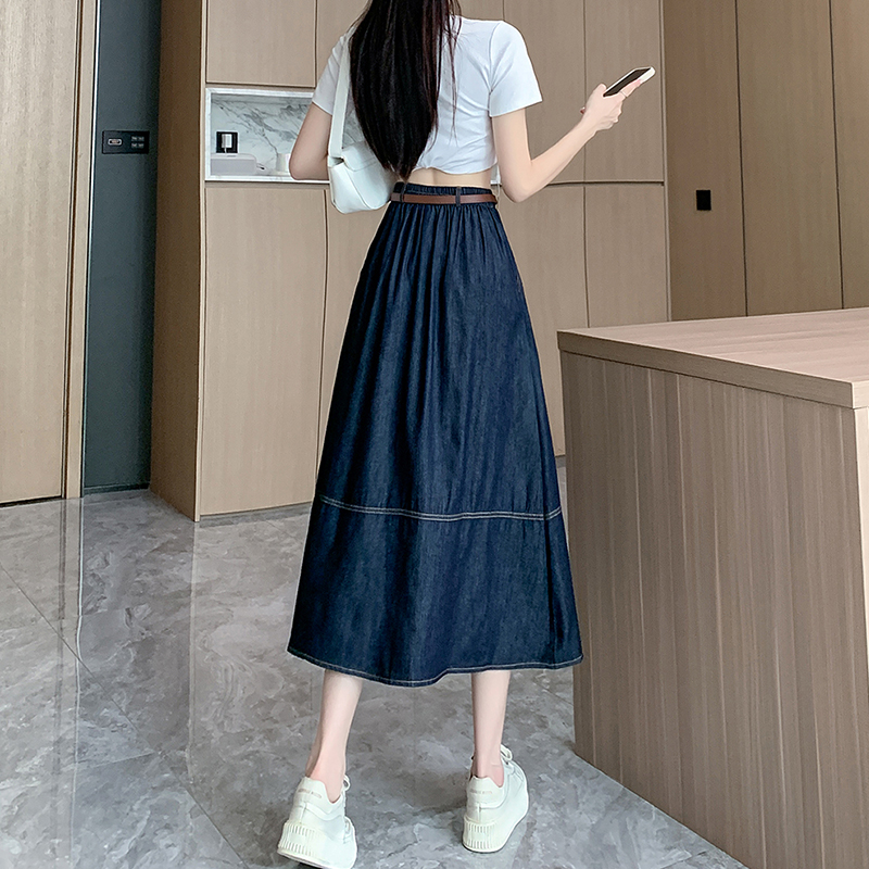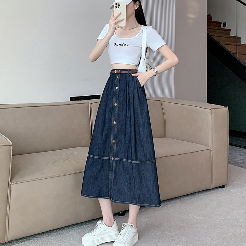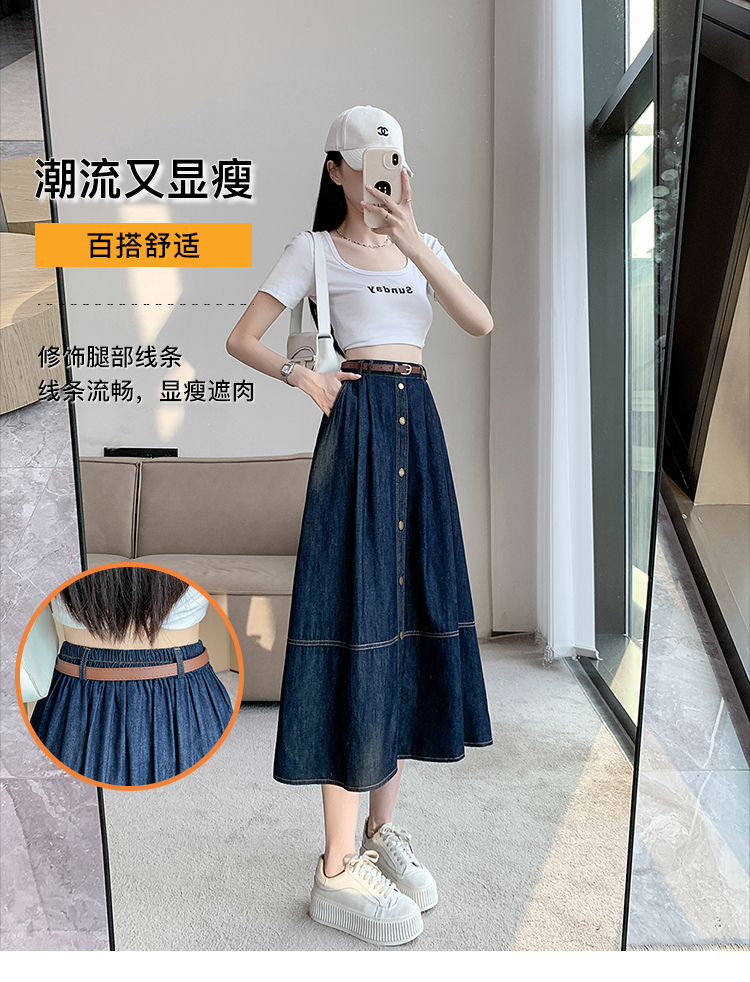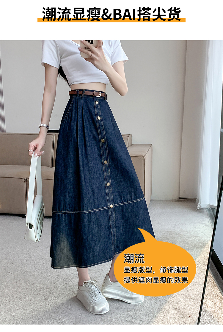 실사 빅 사이즈 여성 의류 2026 봄 하이웨이스트 레트로 데님 롱 스커트 마이크로 지방 mm A라인 스커트 슬림해 보이는 반신 스커트