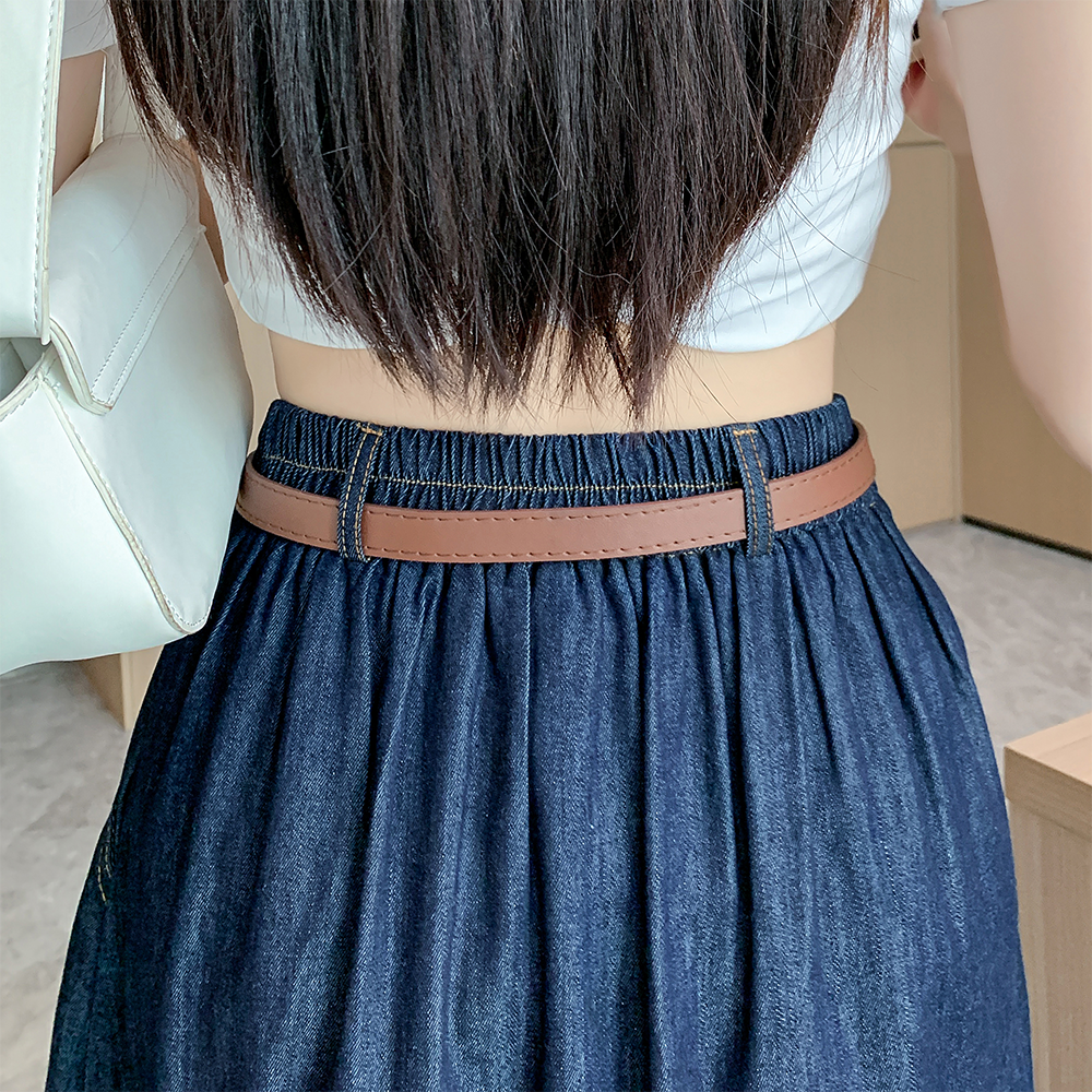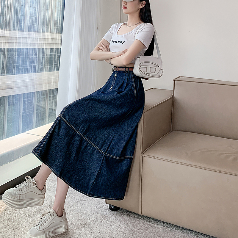 실사 빅 사이즈 여성 의류 2026 새로운 레트로 데님 롱 스커트 마이크로 지방 mm A라인 스커트 슬림해 보이는 반신 스커트