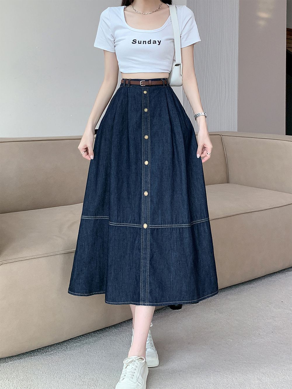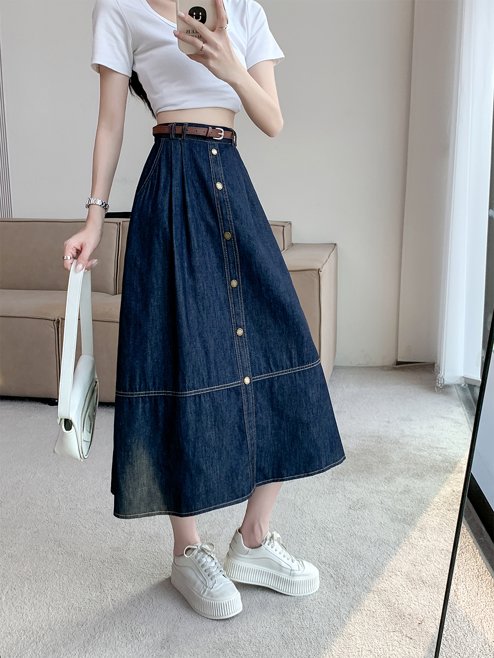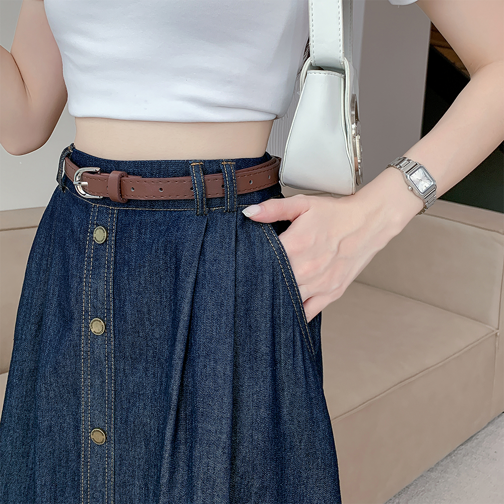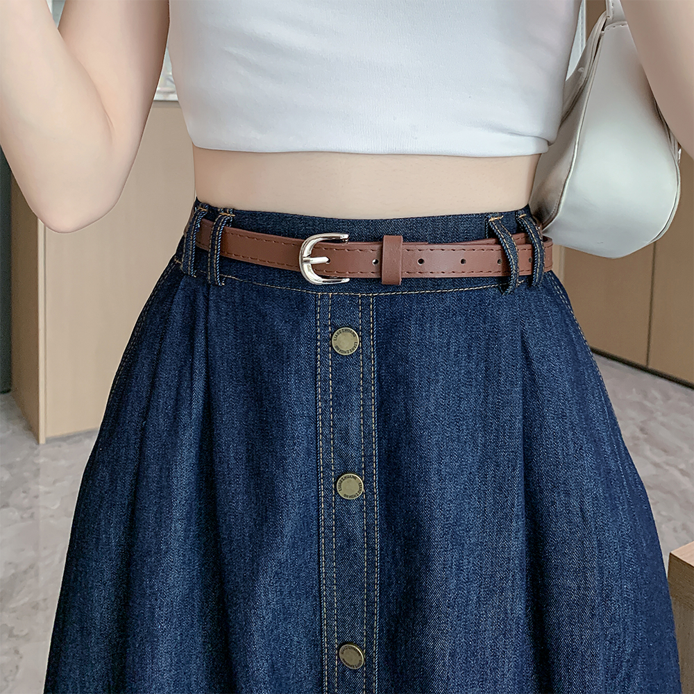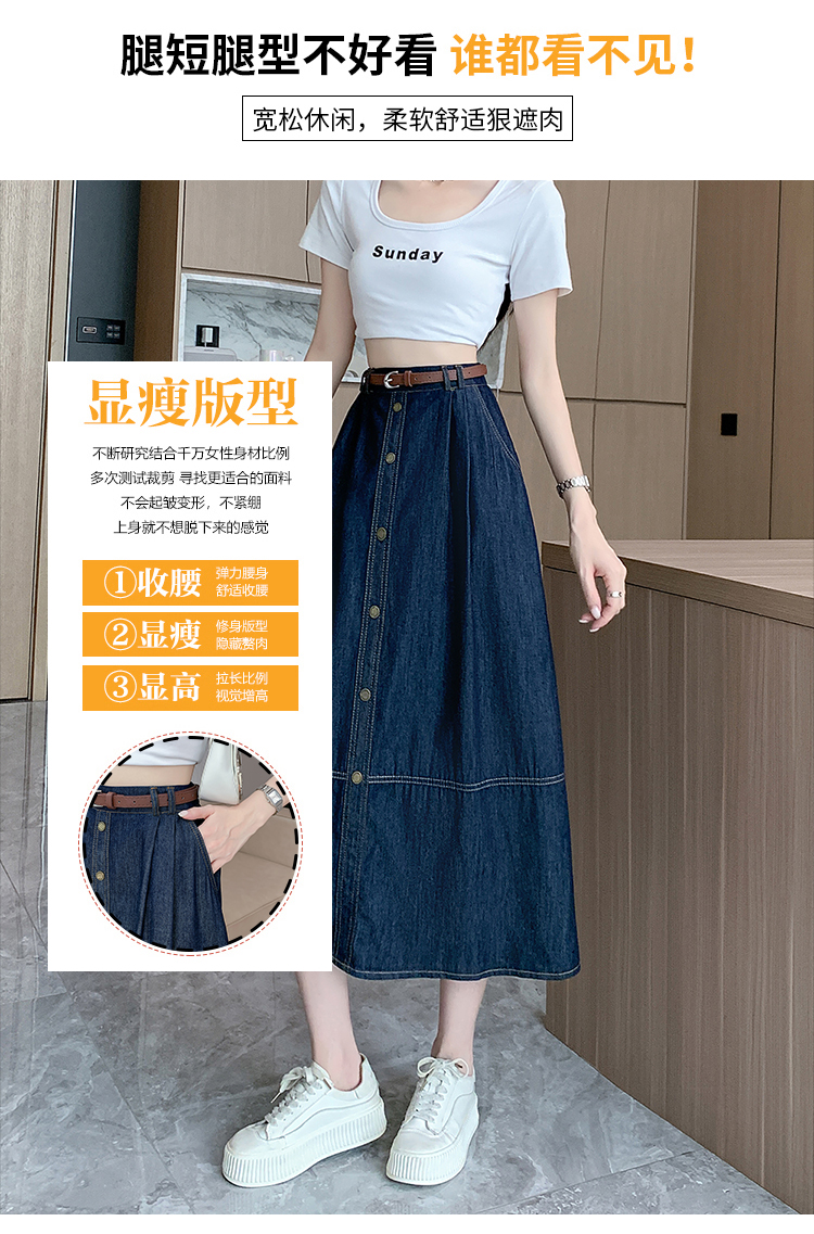 실사 빅 사이즈 여성 의류 2026 레트로 한 마디 데님 반신 스커트 하이웨이스트 슬림해 보이는 다용도 중간 길이 치마